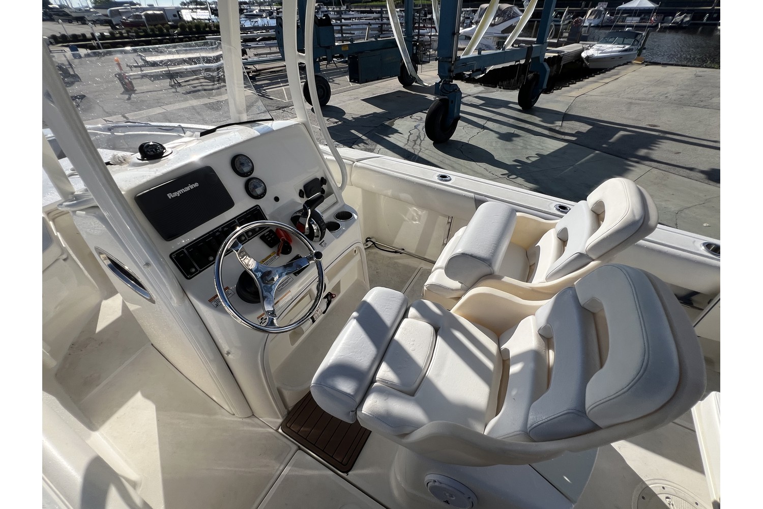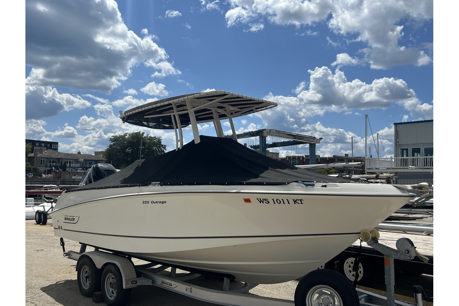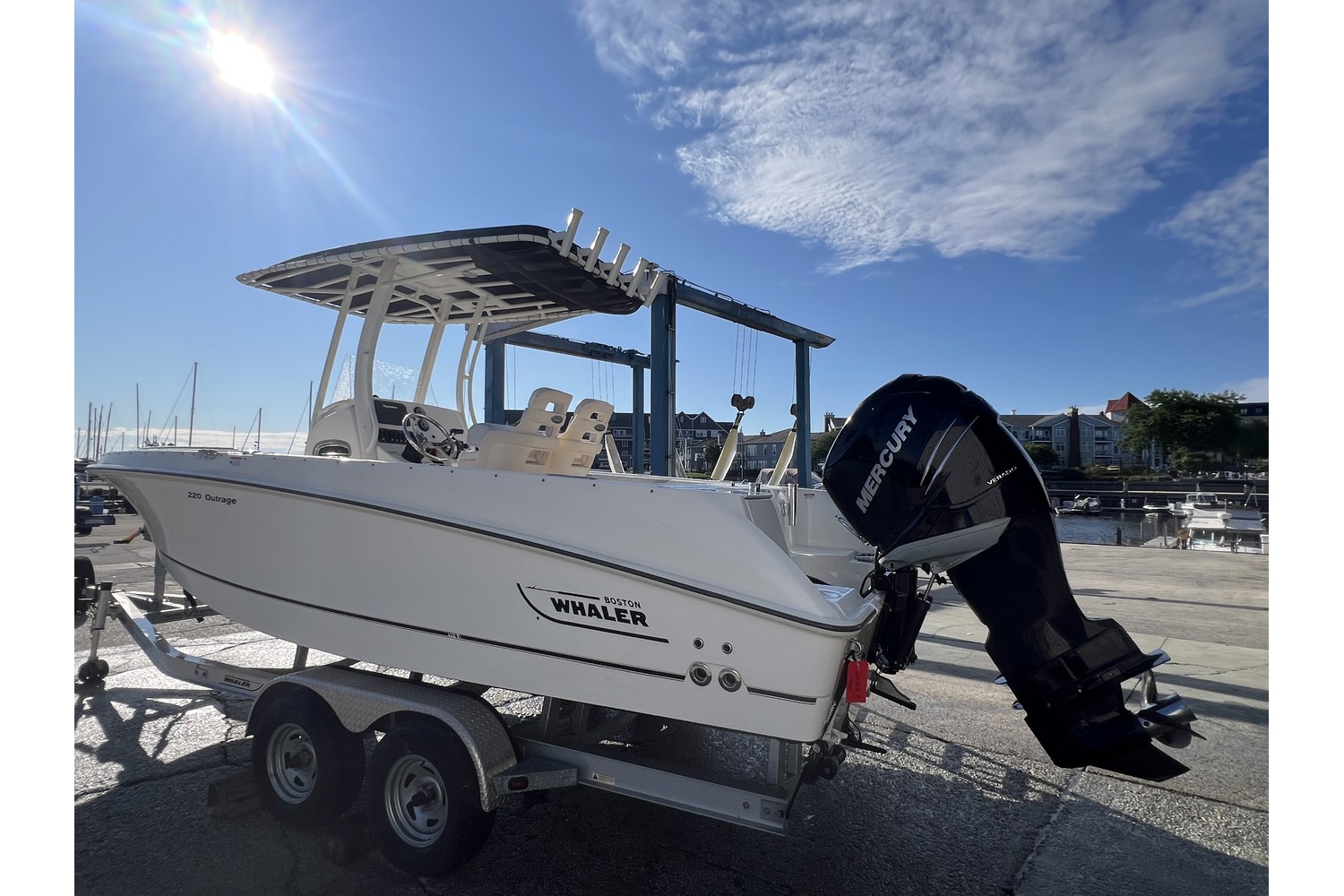 Introducing the 2015 Boston Whaler 220 Outrage, a remarkable center console boat designed for both adventure and comfort. With an overall length of approximately 22.4 feet, this vessel showcases a robust fiberglass hull with a deep Vee shape, ensuring excellent performance and stability on the water. Powered by a Mercury Verado outboard engine delivering 225 horsepower, it promises exhilarating speed and responsiveness. The boat accommodates up to 10 passengers, making it perfect for family outings or fishing trips with friends. Equipped with essential features, the 220 Outrage is ready for any adventure. Its thoughtful design and durable construction reflect Boston Whaler's commitment to quality and safety. Whether you're cruising along the coast or navigating through choppy waters, this boat offers a blend of performance and comfort that is sure to impress. Experience the thrill of the open water with the Boston Whaler 220 Outrage.