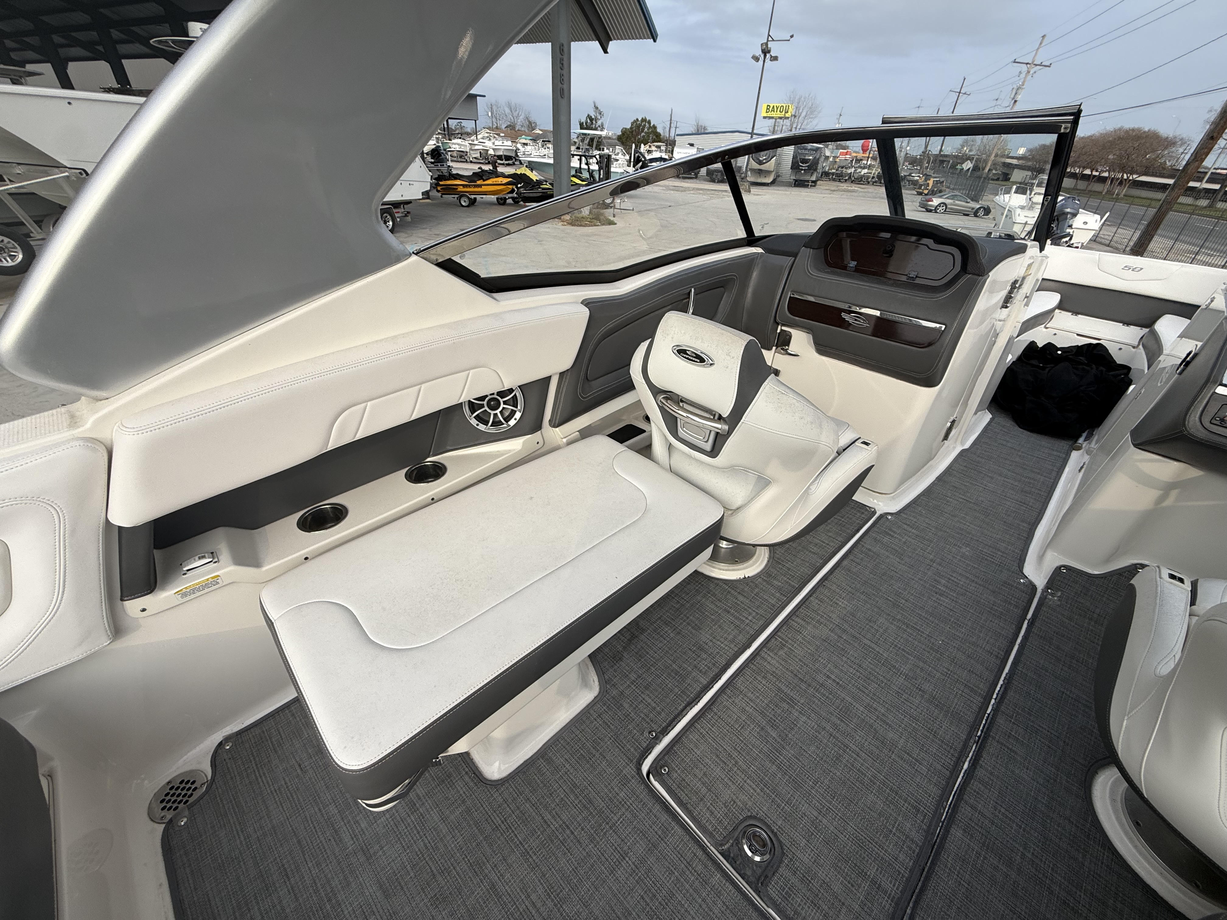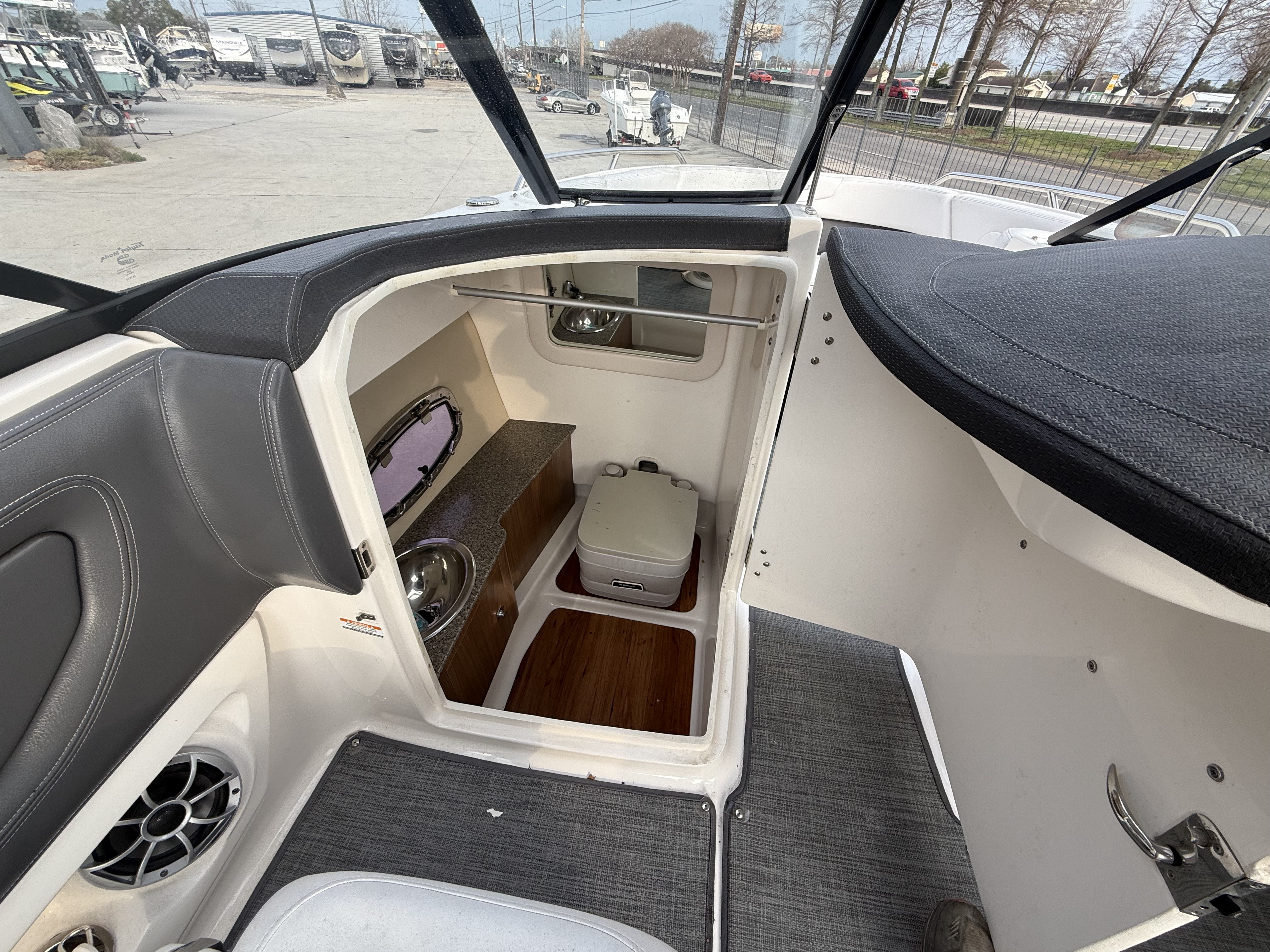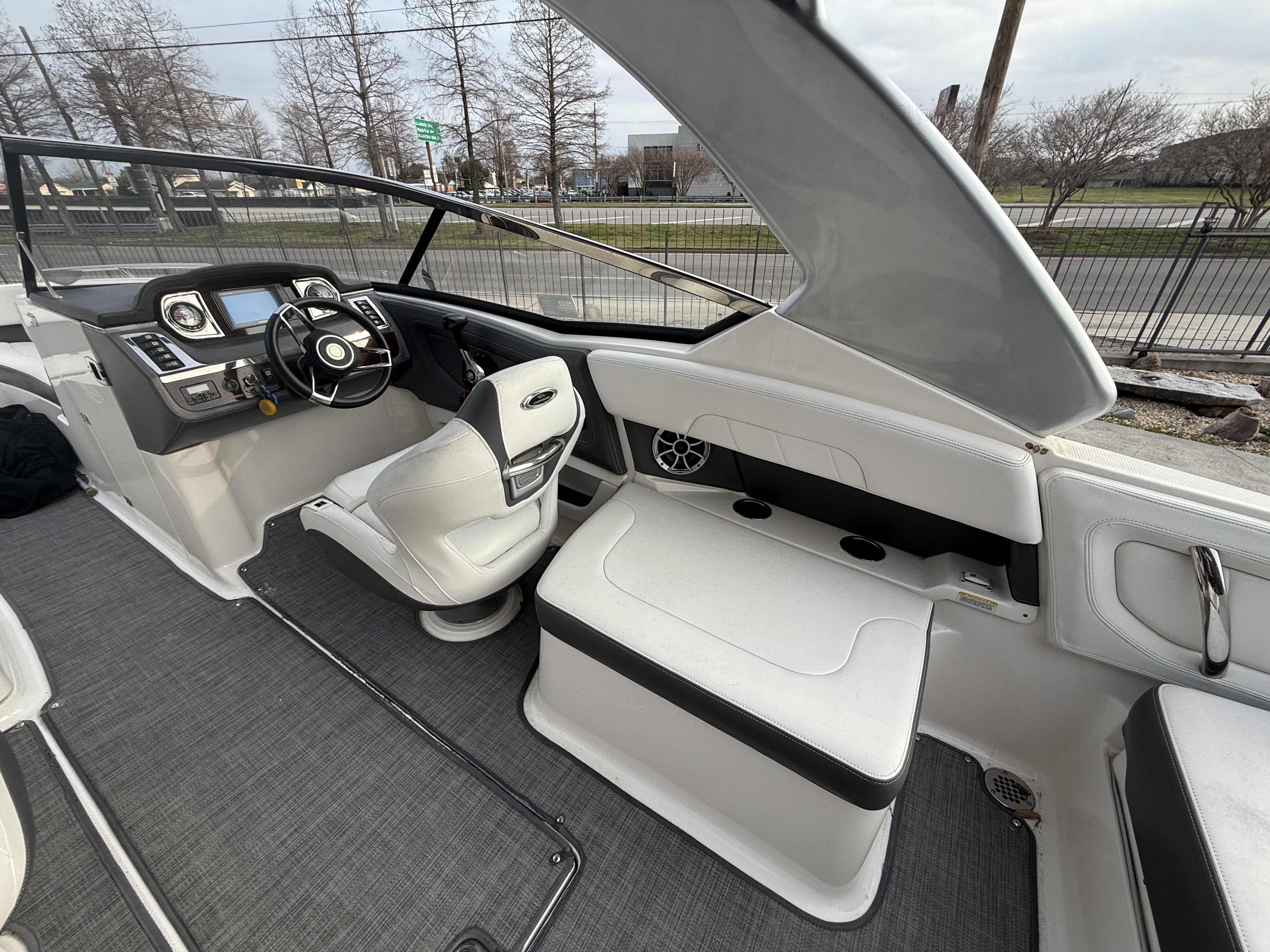 All new for 2015, the 257 SE offers the same award-winning performance, styling and quality as our runaway best-selling 257 SSX with a completely redesigned "side-entry" cockpit layout. More affordable than its 257 sistership, the new SE layout features modified L-shaped cockpit seating with an adjacent bench. The cockpit feels big, wide and roomy. Aft, the 257's dual lounge seats are replaced in the SE by a more conventional full-width sun pad that converts to a chaise. Under the cushion there's storage space for equipment and towels that is easily accessible from the platform.