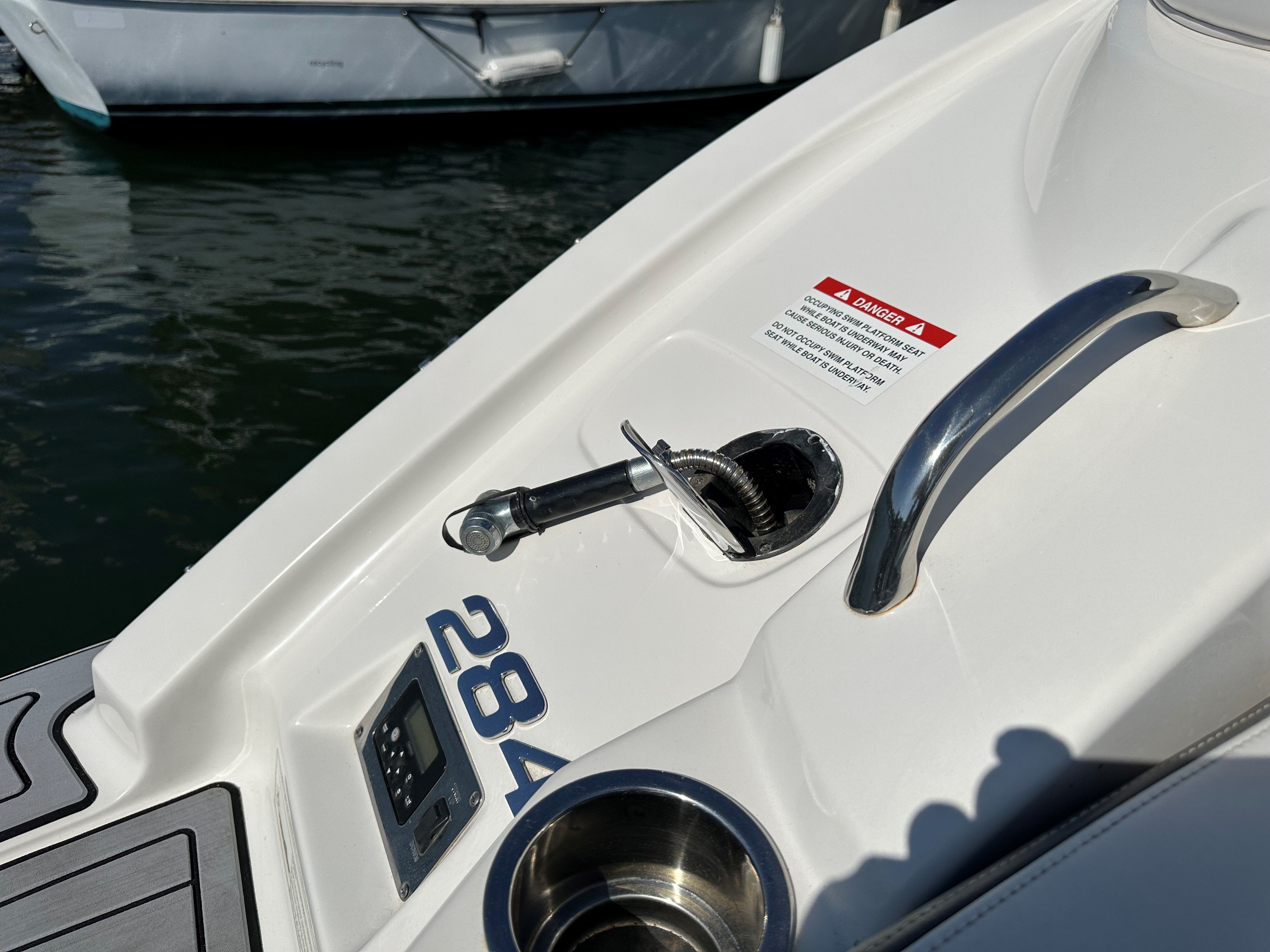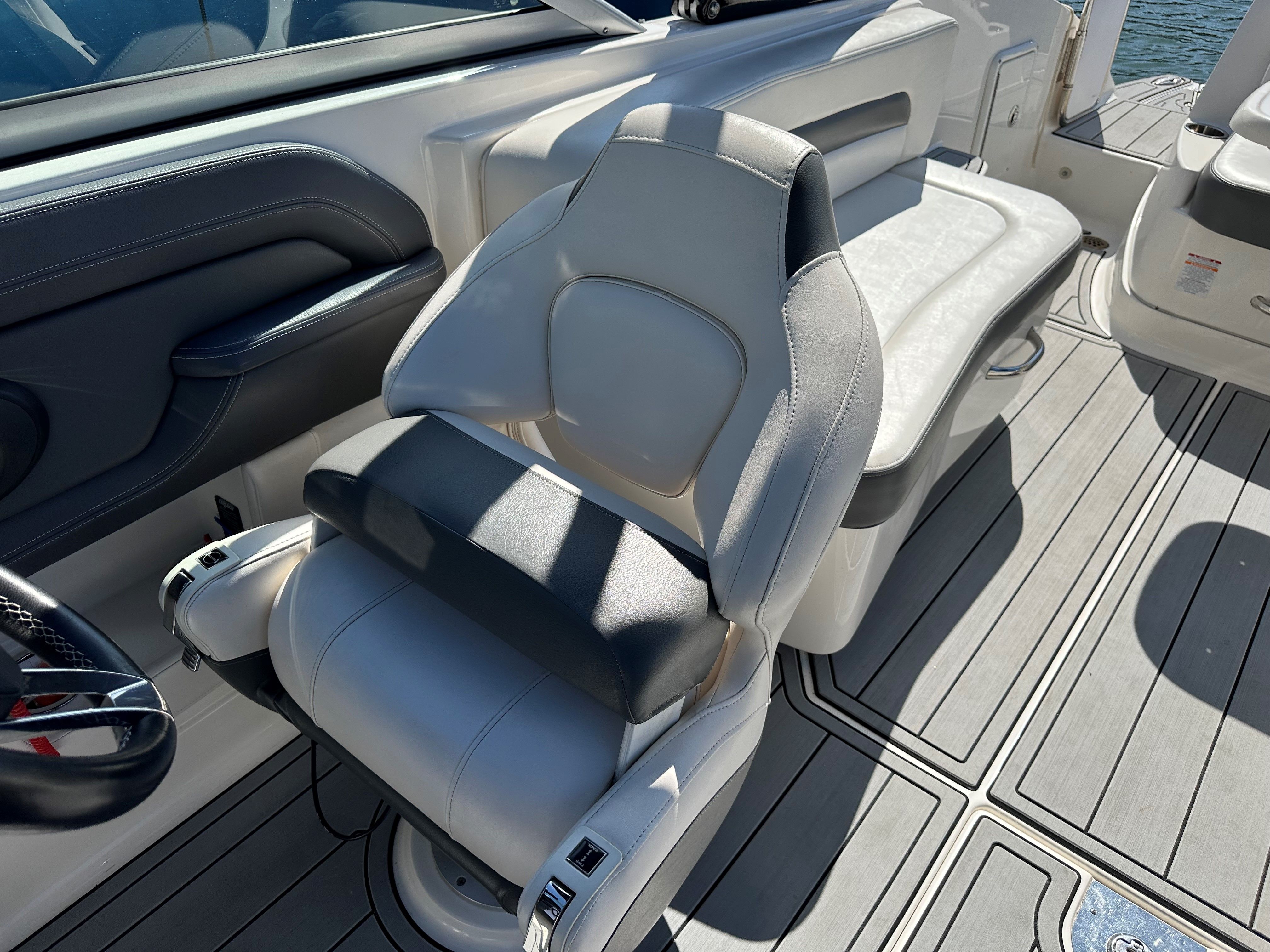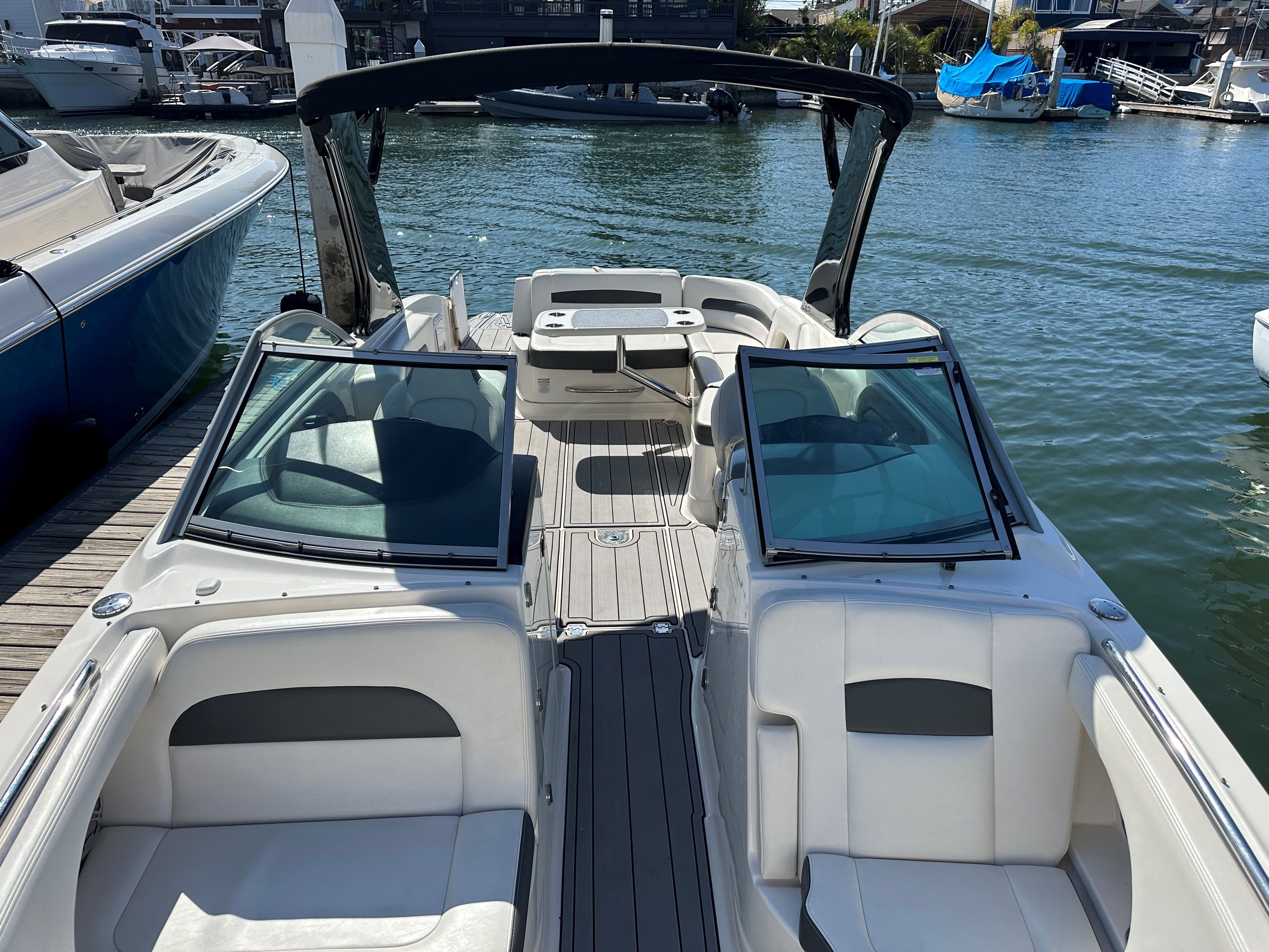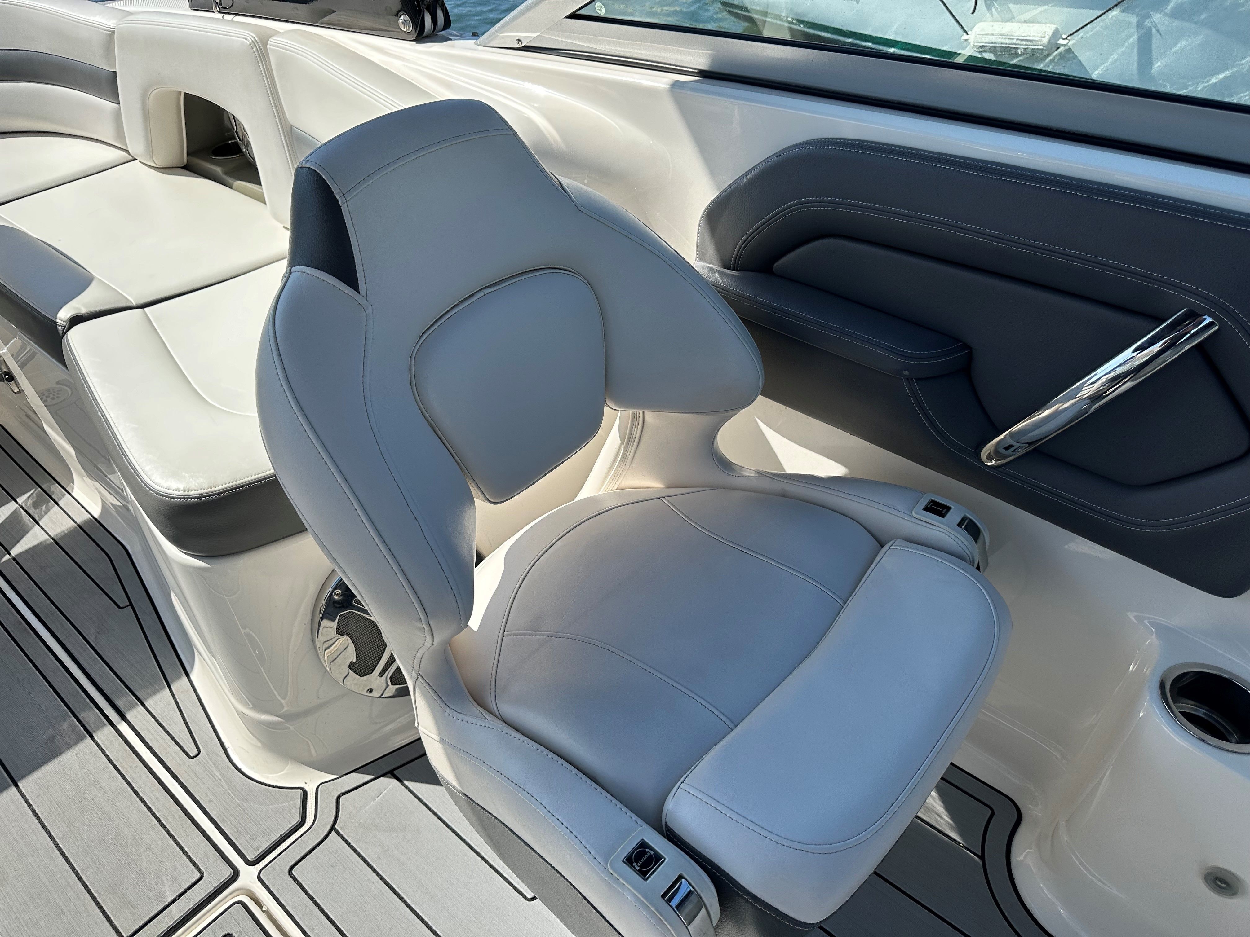 2015 Chaparral 284 Sunesta. Imagine a sport deck so advanced nothing on its class can match its features, style and quality. From its huge multi-purpose bow area, to the entertainment minded cockpit everything that goes in to the Sunesta lifestyle gets bigger and better on the 284 Sunesta. Enjoy stand up headroom under the black wakeboard arch tower. Targeted for any waterway your adventuresome spirit takes you, the high freeboard and dry riding 284 can also has trim tabs to level out the shifting weight loads. Has the Garmin GPS and the cockpit table for entertaining, and has the bathroom port side compartment with sink and head. Captains bucket seat with flip up bolster and forward and backward and swivel adjustment. With matching bucket seat on the passenger side. 8.2L Mercruiser Mag 380HP.