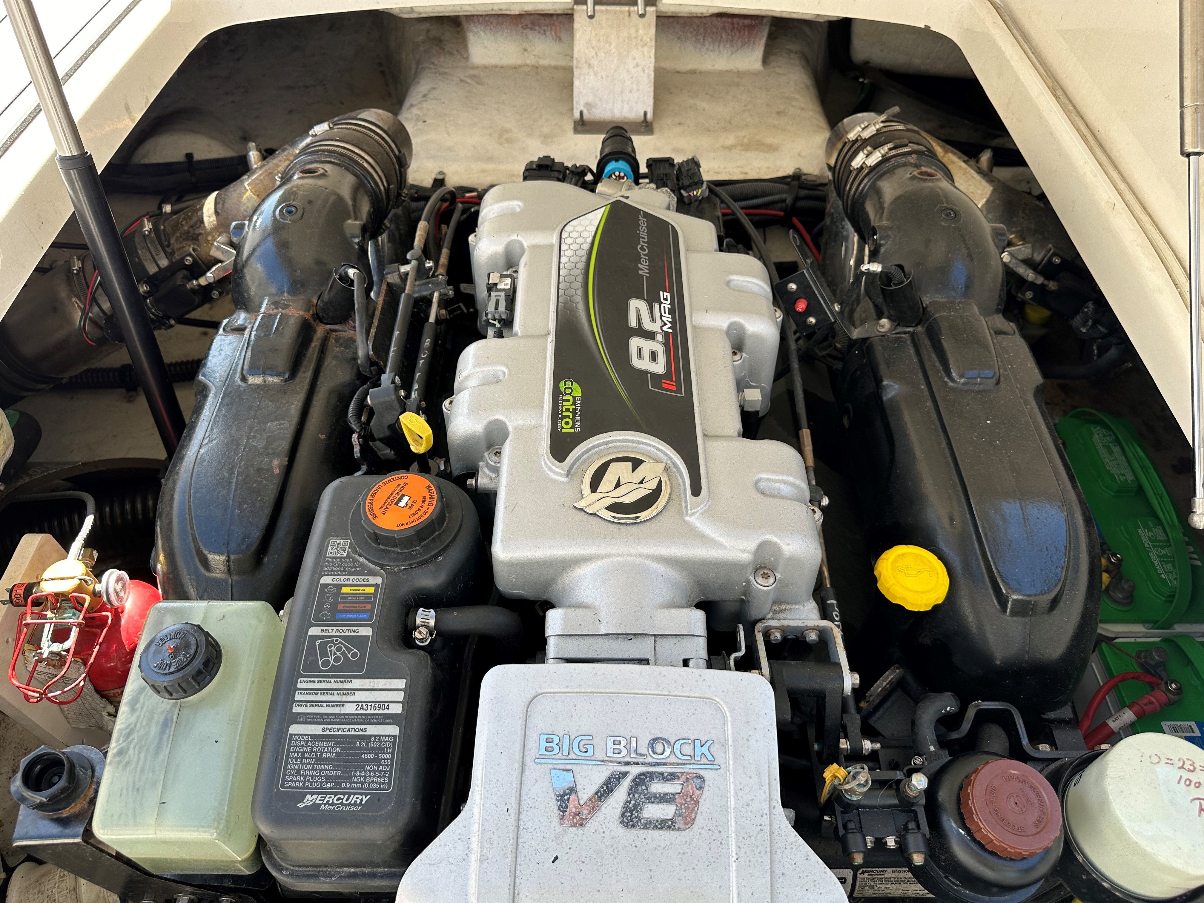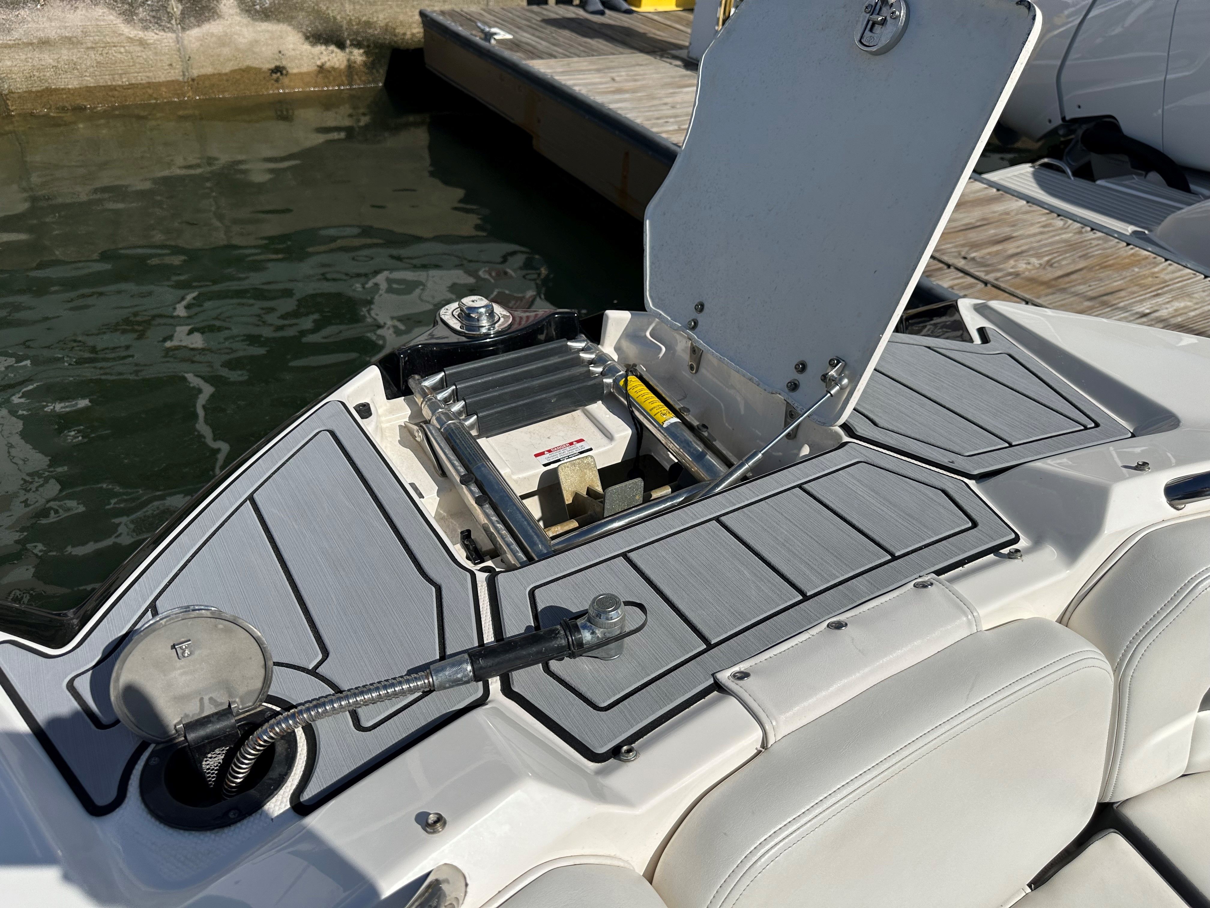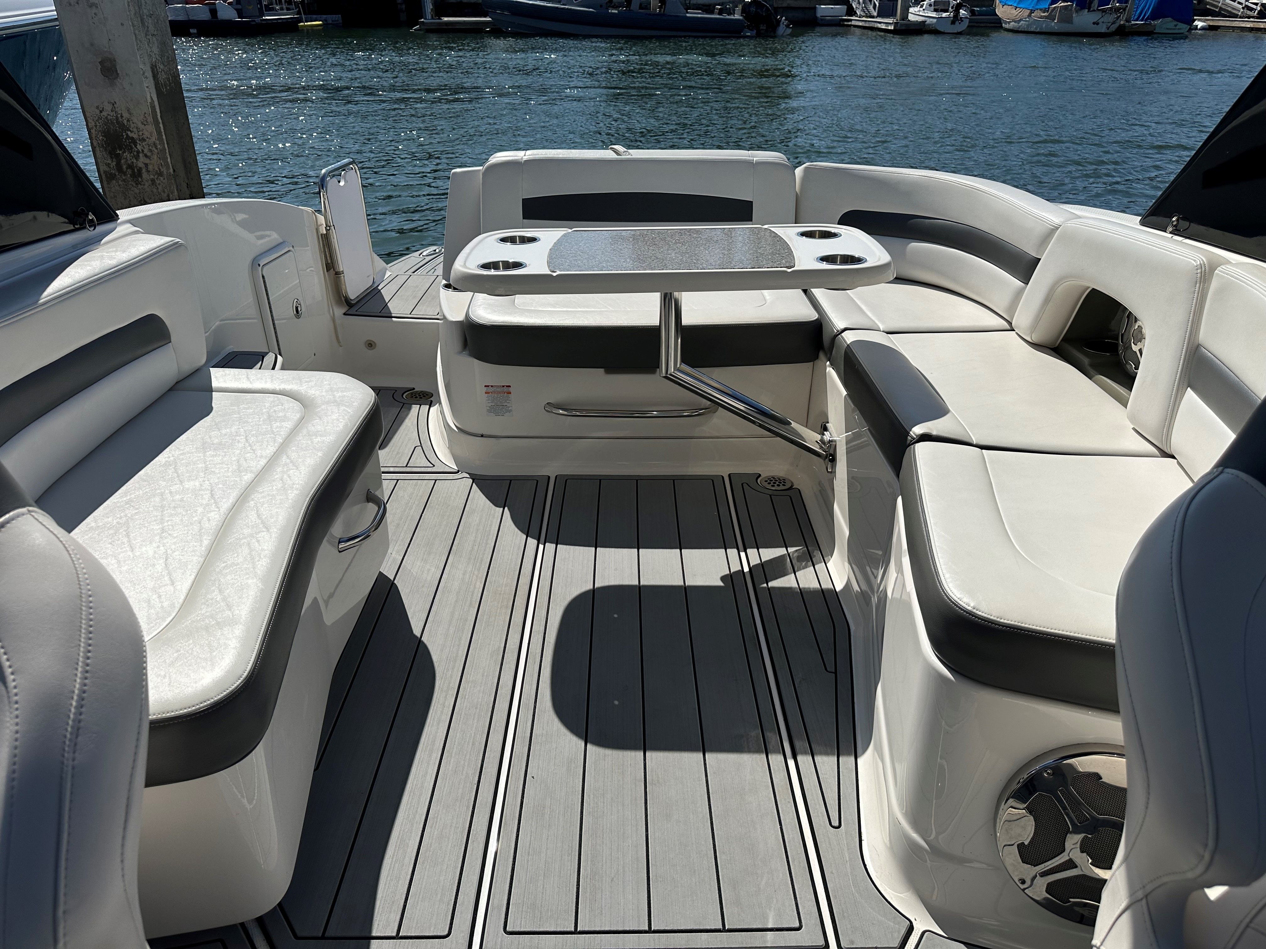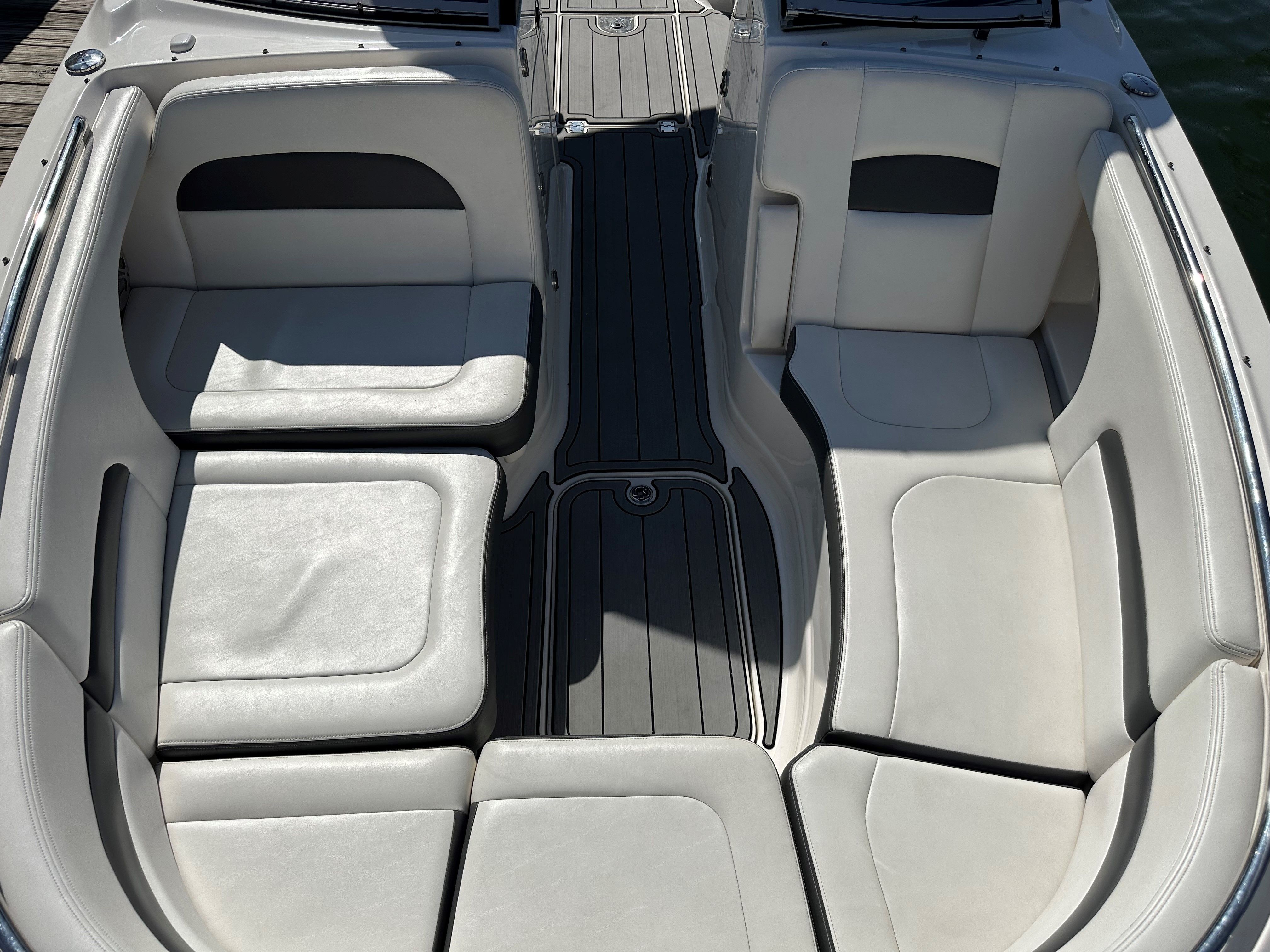 2015 Chaparral 284 Sunesta. Imagine a sport deck so advanced nothing on its class can match its features, style and quality. From its huge multi-purpose bow area, to the entertainment minded cockpit everything that goes in to the Sunesta lifestyle gets bigger and better on the 284 Sunesta. Enjoy stand up headroom under the black wakeboard arch tower. Targeted for any waterway your adventuresome spirit takes you, the high freeboard and dry riding 284 can also has trim tabs to level out the shifting weight loads. Has the Garmin GPS and the cockpit table for entertaining, and has the bathroom port side compartment with sink and head. Captains bucket seat with flip up bolster and forward and backward and swivel adjustment. With matching bucket seat on the passenger side. 8.2L Mercruiser Mag 380HP.