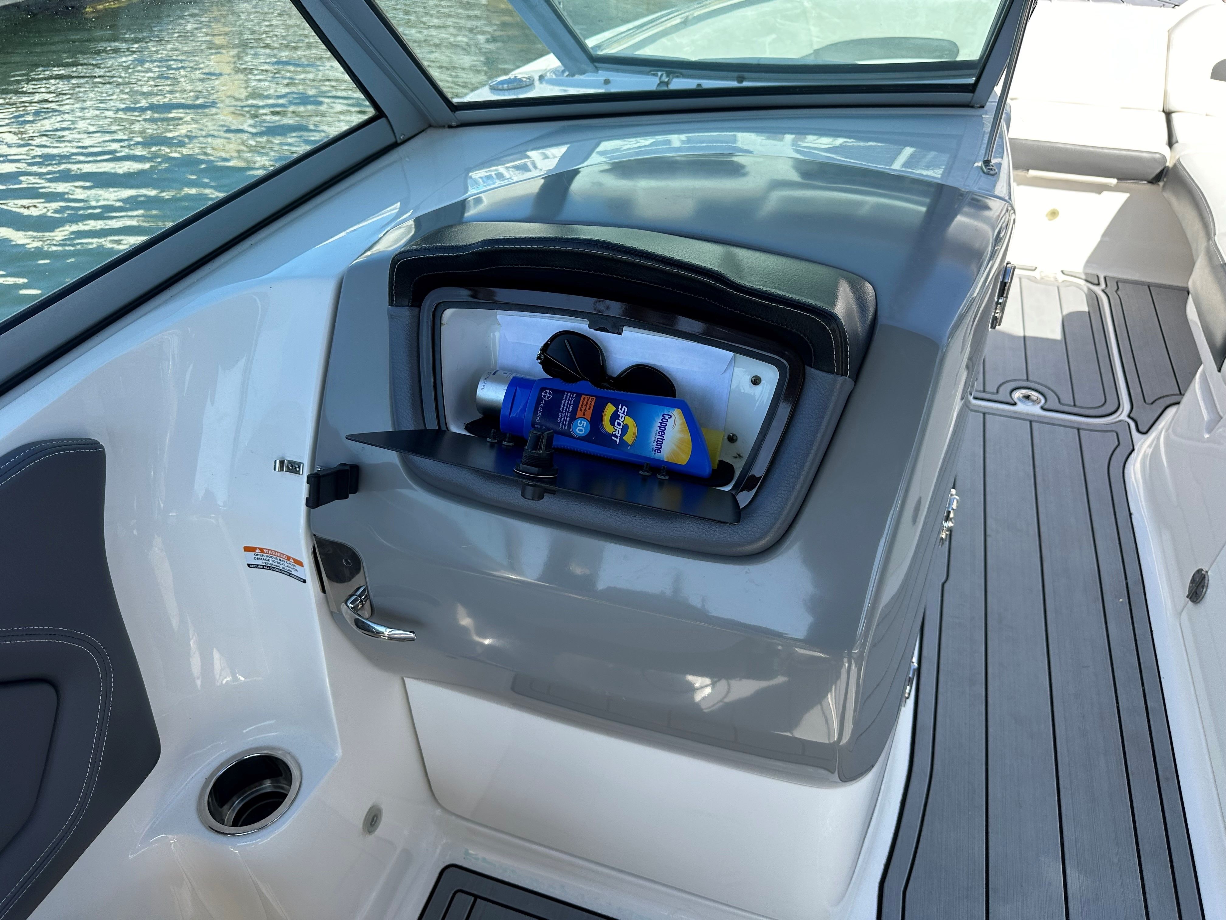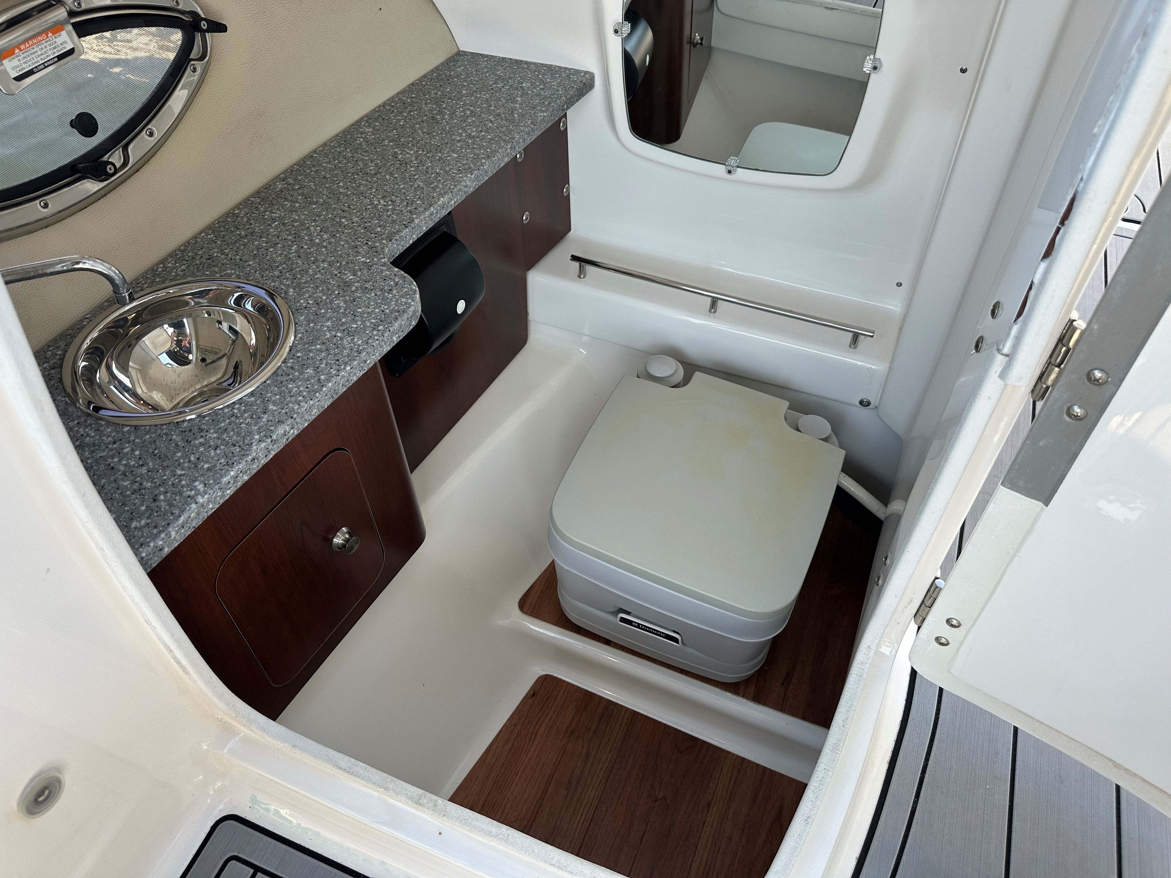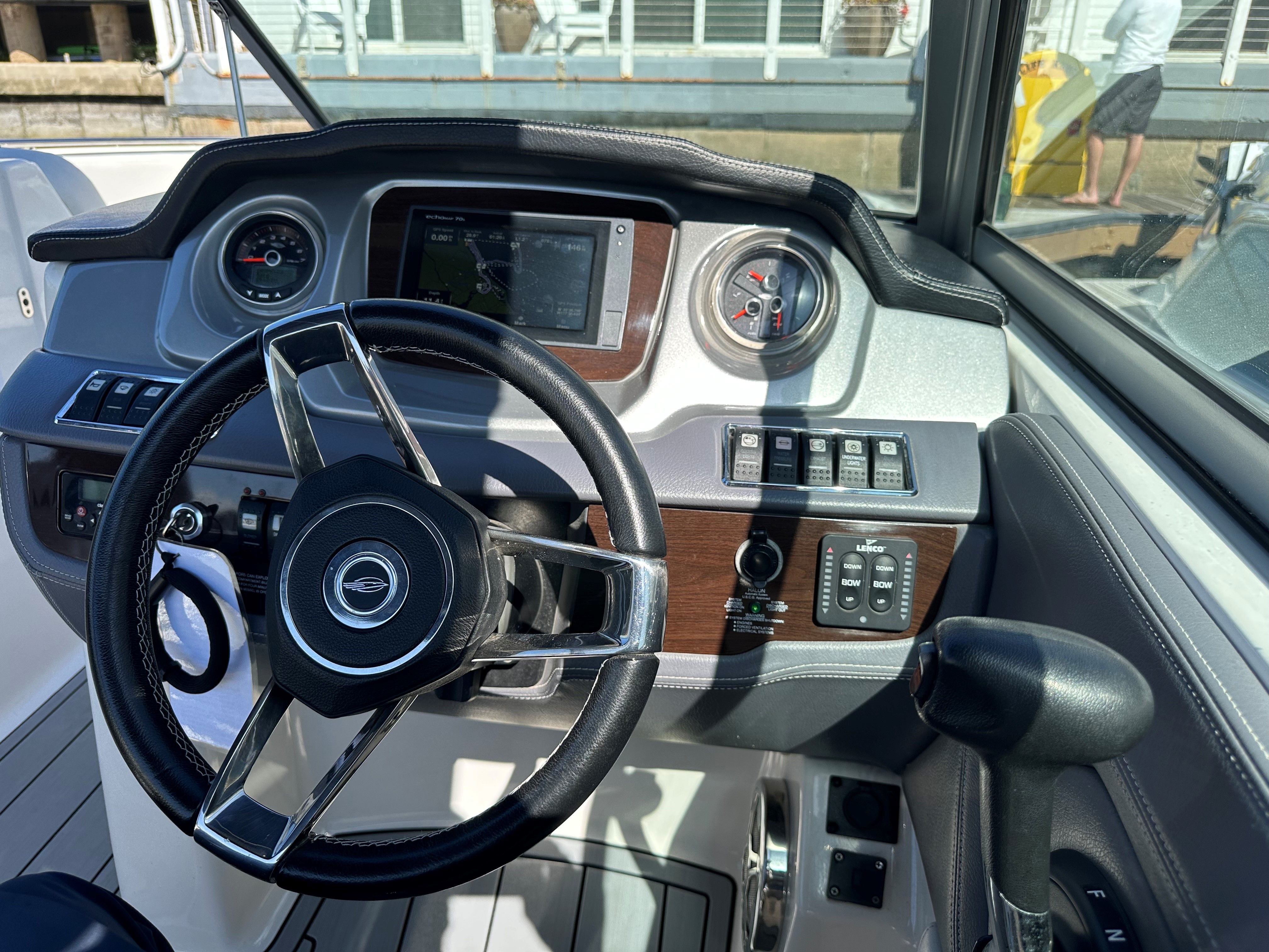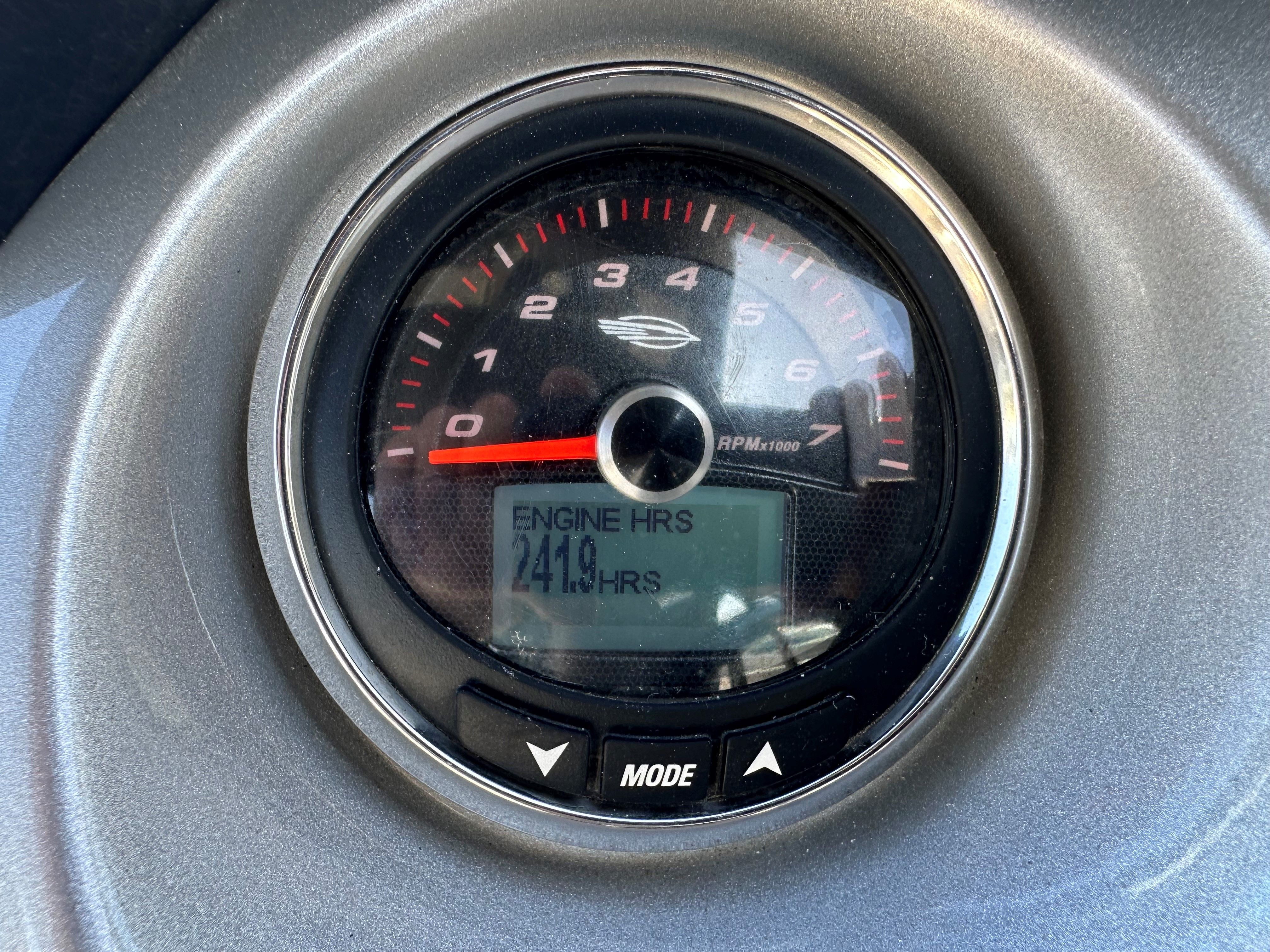 2015 Chaparral 284 Sunesta. Imagine a sport deck so advanced nothing on its class can match its features, style and quality. From its huge multi-purpose bow area, to the entertainment minded cockpit everything that goes in to the Sunesta lifestyle gets bigger and better on the 284 Sunesta. Enjoy stand up headroom under the black wakeboard arch tower. Targeted for any waterway your adventuresome spirit takes you, the high freeboard and dry riding 284 can also has trim tabs to level out the shifting weight loads. Has the Garmin GPS and the cockpit table for entertaining, and has the bathroom port side compartment with sink and head. Captains bucket seat with flip up bolster and forward and backward and swivel adjustment. With matching bucket seat on the passenger side. 8.2L Mercruiser Mag 380HP.