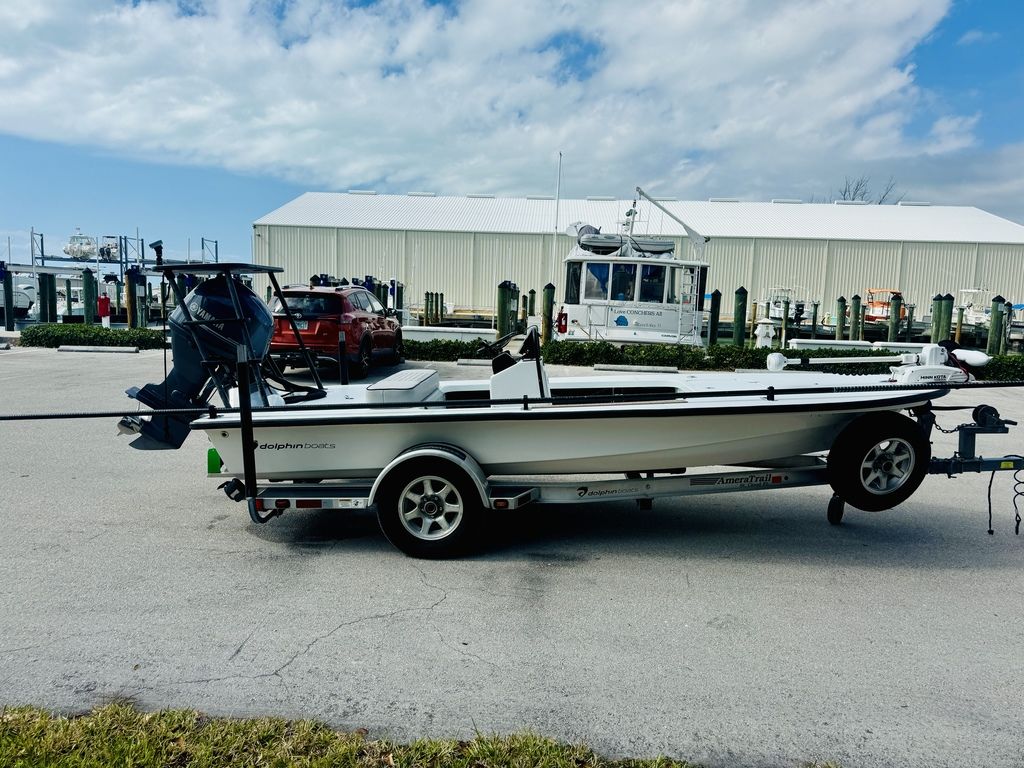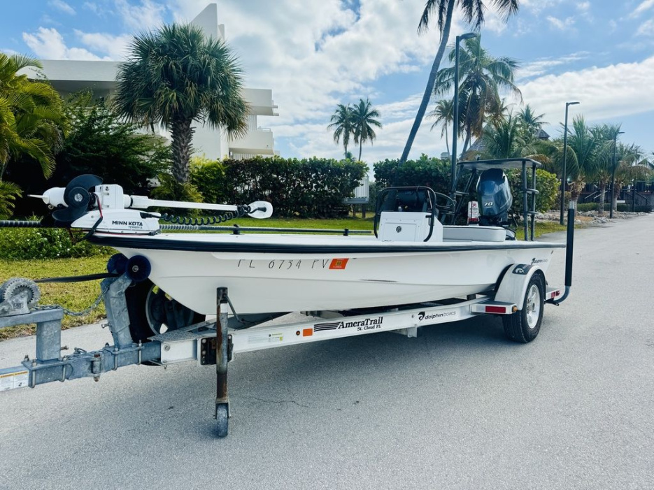 With a hull length of approximately 18 feet, the Dolphin 18 is easy to trailer, launch, and store, while still providing a stable platform for casting and sight fishing. The tunnel hull design allows the boat to run in minimal water, feed clean water to the prop, and improve hole shot and overall efficiency. Built with durability in mind, the hand-laid fiberglass construction, quality hardware, and clean layout make it a practical choice for both serious anglers and first-time skiff owners.