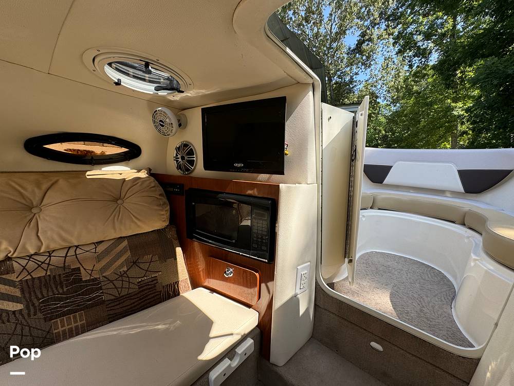 This has a really UNIQUE layout that combines a mid-cuddy cabin that is accessible from the cockpit or the bow with a bow rider. You can comfortably seat four people in each area, and the middle converts to a large sleeping area with under seat storage. There is also a porta-potty that goes under the seat and slides out and a built-in microwave.