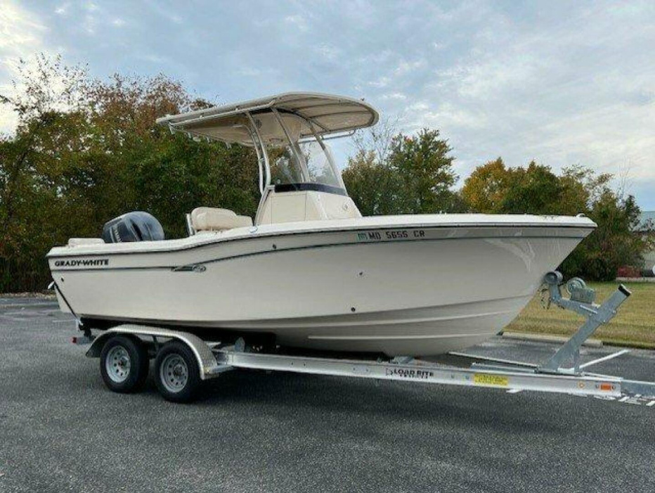 This Grady-White 209 fits all your fishing and pleasure boating needs. It is powered by a 200 HP Yamaha Four Stroke with 110 hours. She has a T-Top with rod-holders built in. Comes with full electronics GPS, VHF radio, and a Fusion Stereo System. Also included in the package is a Load Rite Trailer.PLEASE SEE FULL SPECS. FOR FULL DETAILS ON THIS BOAT........Deck EquipmentT-Top w/Rod and life Jacket StorageFront Canvas With Side WingsCustom Winter CoverHelm Seat CoverMotor CoverElectronics Box under T-TopNavigation LightsCockpit Lights8 Rocket Launchers4 Built-in Rod Holders2 Extra Rod Holders ForwardDanforth Anchor w/LockerTrim Tabs (Bennett)10 Stainless Steel Cup HoldersStainless Steel Steering WheelRaw Water Wash DownHelm Seat w/BolsterBow and Rear Seat CushionsFish WellBow RailsHand RailsDeck Cleats (6)ElectronicsGarmin radioGarmin 12-inch GPSTralierTandem StyleFendersSurge BrakesTwo Speed WinchSpare TireLightsBrake WashAdditional InformationFuel Tank 86 GallonBeam 8'1"Clearance 6'4"Cockpit 58 Sq. Ft.Cockpit Depth 25"Persons 8Hull Draft 15"Outboard Shaft 25"
