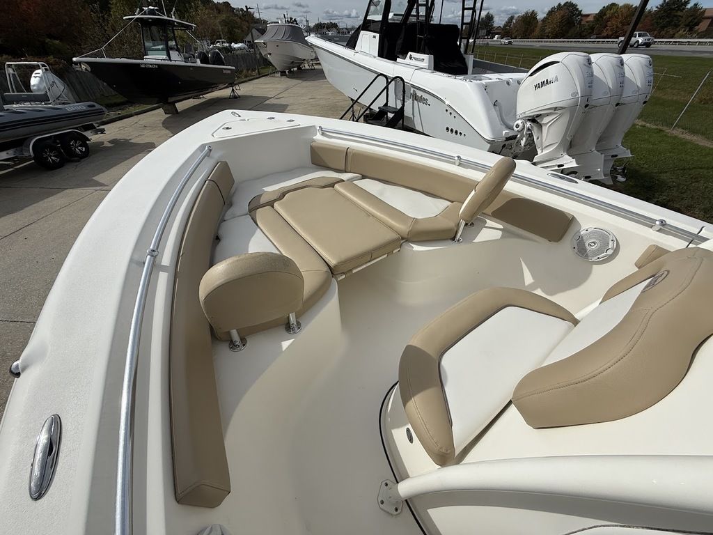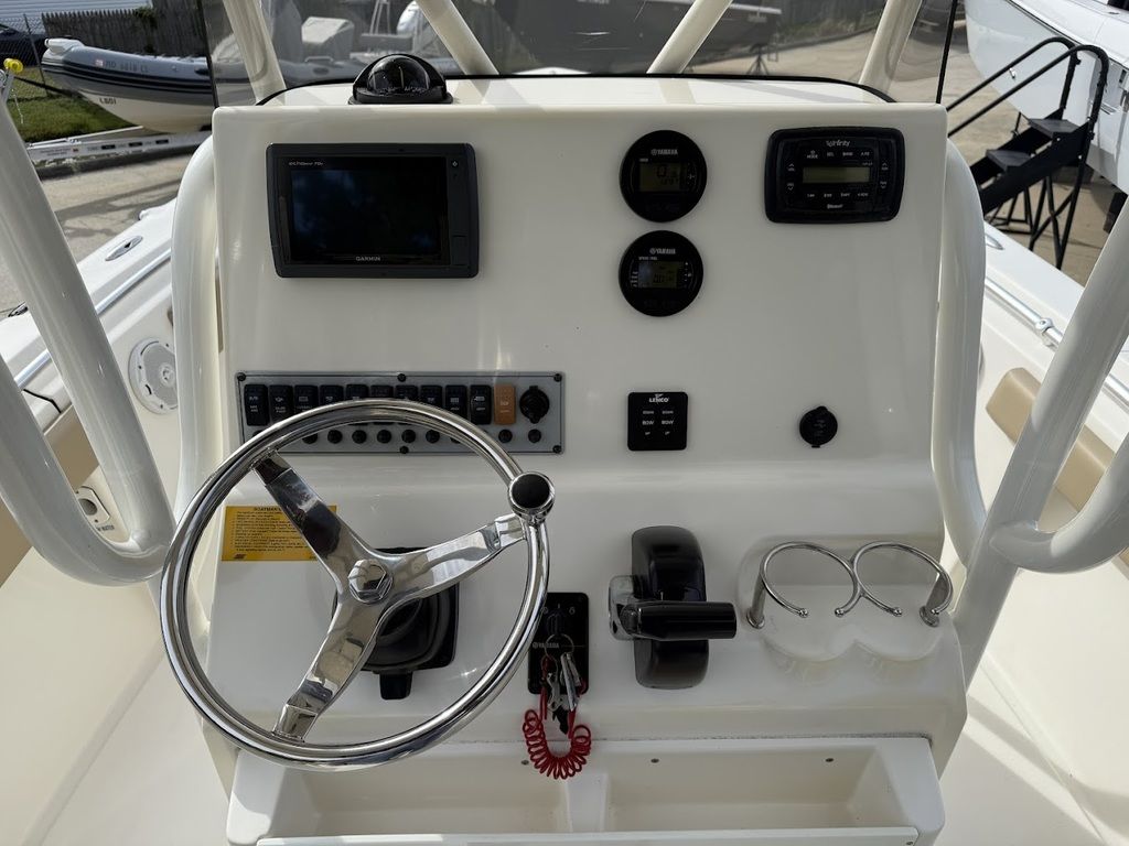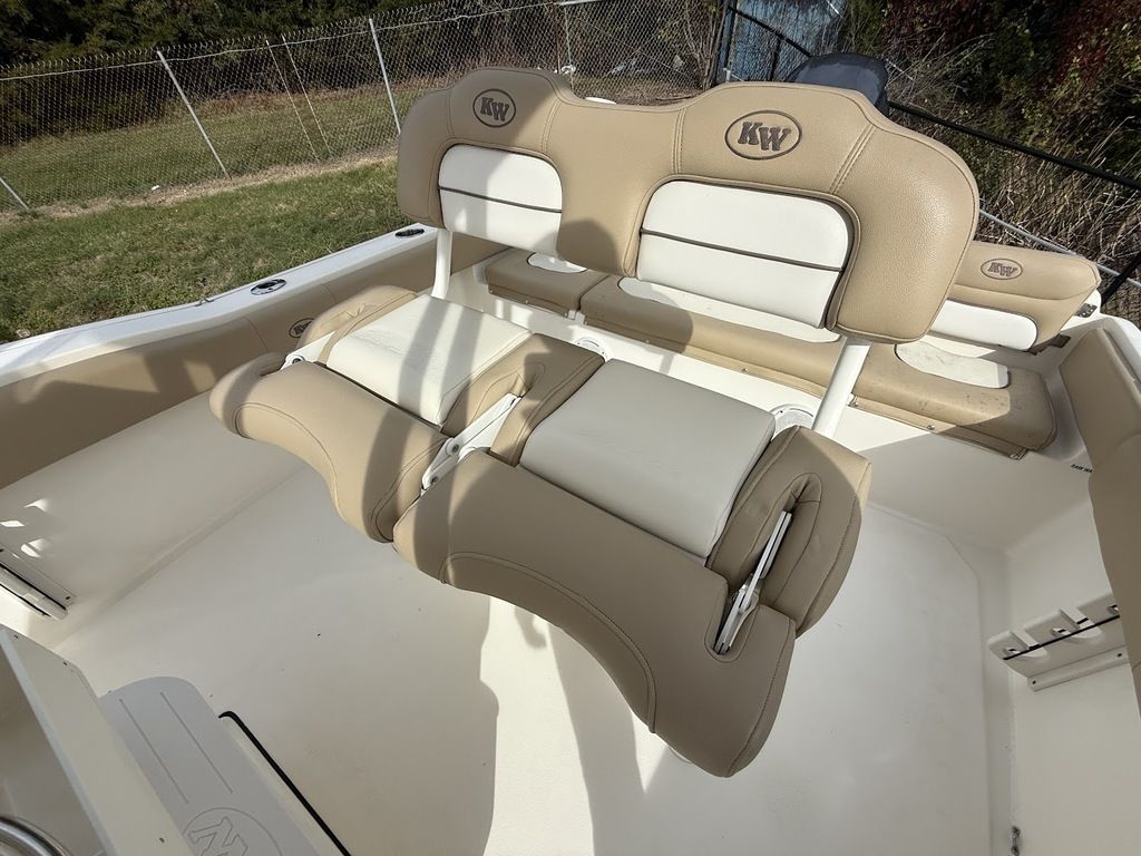 Our latest and largest addition to the expanding line up of Family Sportsman center consoles, the 219FS expands the creature comforts of the rest of the line up into a boat that can take on some serious open water on occasion. The spacious front deck converts from comfortable forward faced seating with back rests to twin dry storage or fish boxes as you desire and need. The console houses the largest of the Key West changing rooms to date, and of course doubles as tremendous storage. The dash panel will flush mount up to 12" screens, and most radios, gauges, and controls. The rear bench seat has fully lined storage areas underneath the comfortable seating, and the swinging transom door offers easy entry for the swimmers. Check one out at a dealer near you soon.