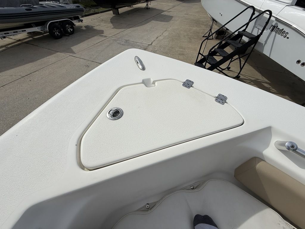 Closed cell positive foam flotationBuilt in fuel tankLED live well lightsLED bow navigation lightsStorage under console.Compass.Electric horn.12 volt power outlet on dash.Stainless Steel Hardware.Molded non-skid inner liner.Folding stern light.Courtesy lights.Black accents.4 SS trolling rod holders with integrated drains.Pull up cleats.Recessed horizontal gunwale rod racks.Generous bow casting deck.Bench seat with snap on cushion.Sea Star hydraulic steering.Cockpit bolsters.Molded in swim platform with telescoping 3 step ladder.Changing room under console can accommodate a potty.Storage box under leaning post seat.Recessed low profile bow rail.9' X 12" trim tabs.Cup holder on console.20 gallon live well.Tinted windshield with SS grab railEngine builder matched analog gauge package.Bench seat cushion and backrest with cushion.Deluxe Leaning Post with 94 Qr. Cooler and BackrestMolded Anchor Storage with AncohorLarge Fish Box in BowTwo Large Storage Boxes in BowBilge Pump with Automatic SwitchBuilt-In Fuel TankFoam Injected Fiberglass Stringer SystemHigh Speed Pick-Up LivewellSelf-Bailing CockpitTen (10) Year Hull WarrantyNo Wood-No Rot Construction