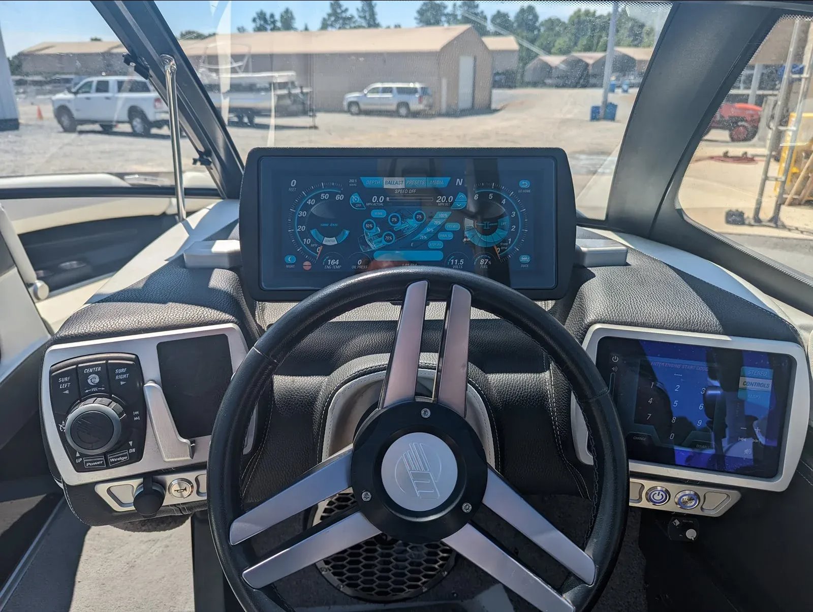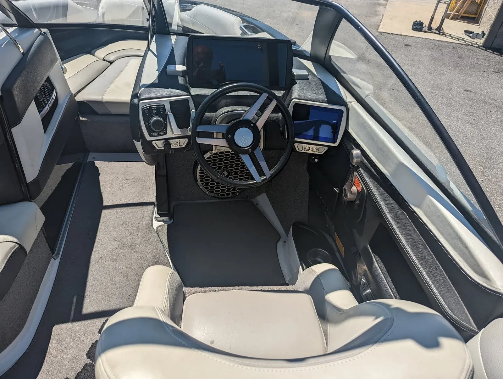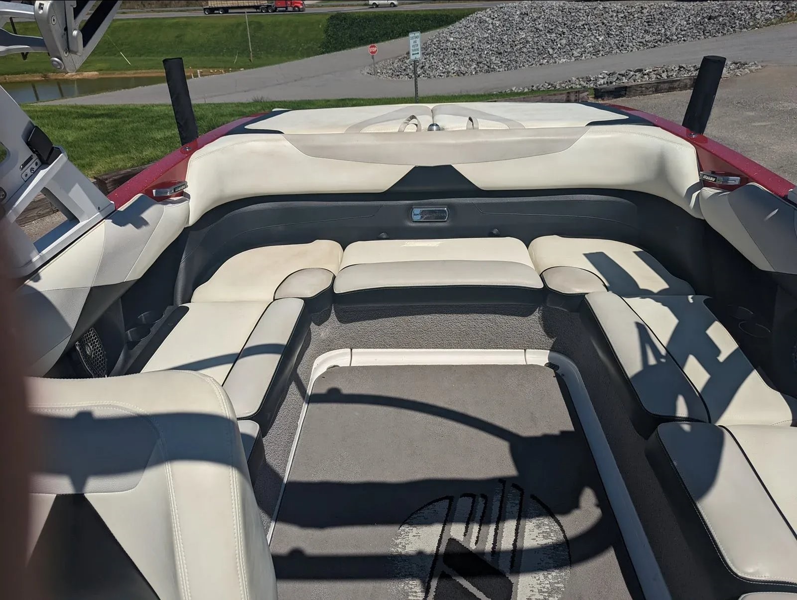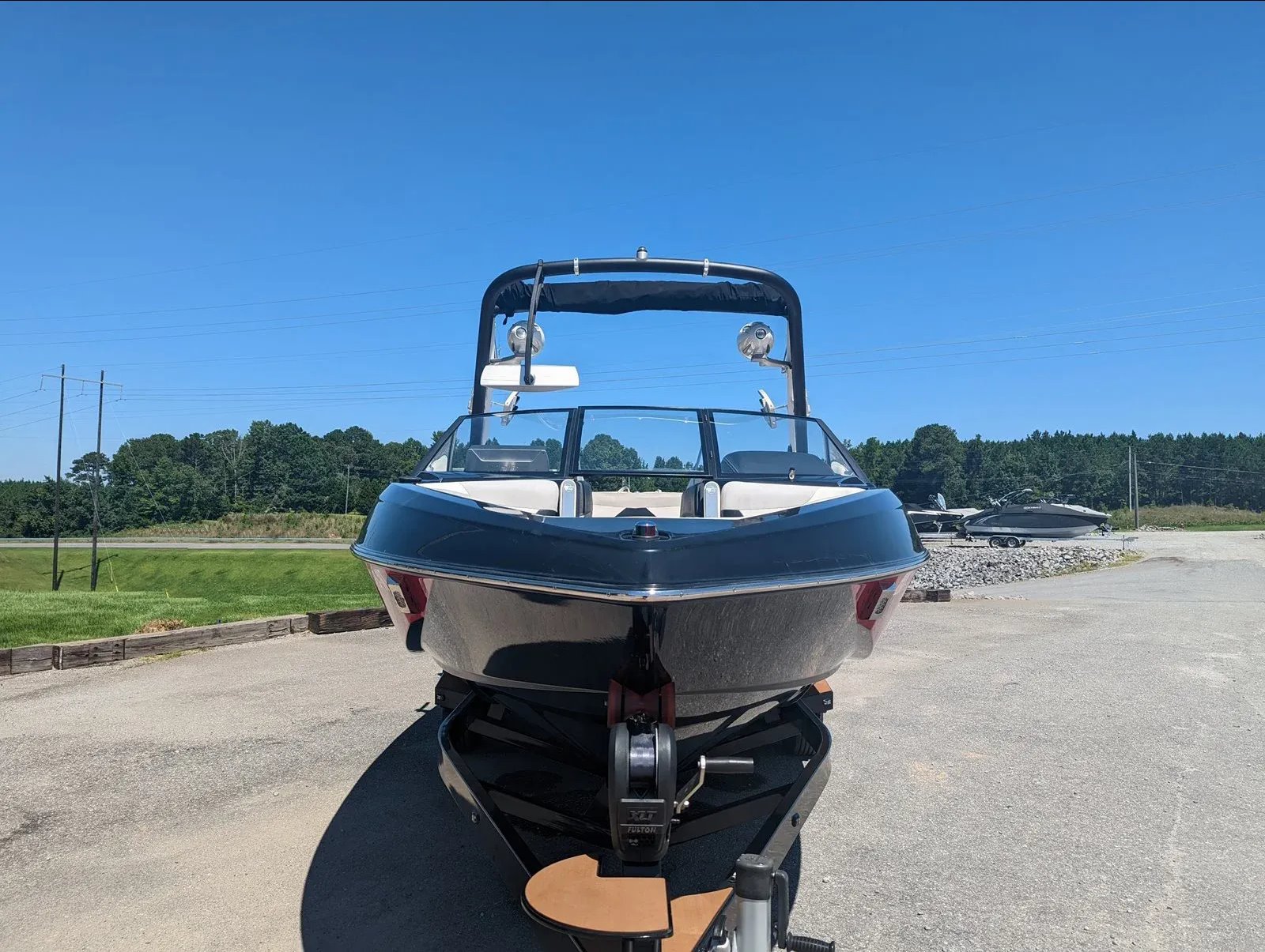 It comes with a full mooring cover, bimini top, stereo with dual tower speakers and subwoofer, dual board racks, mirror, and more.