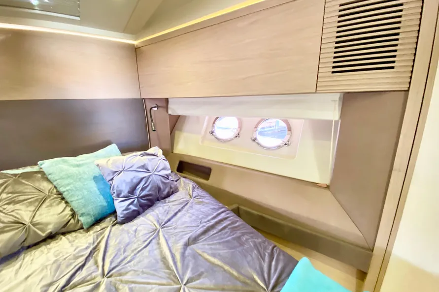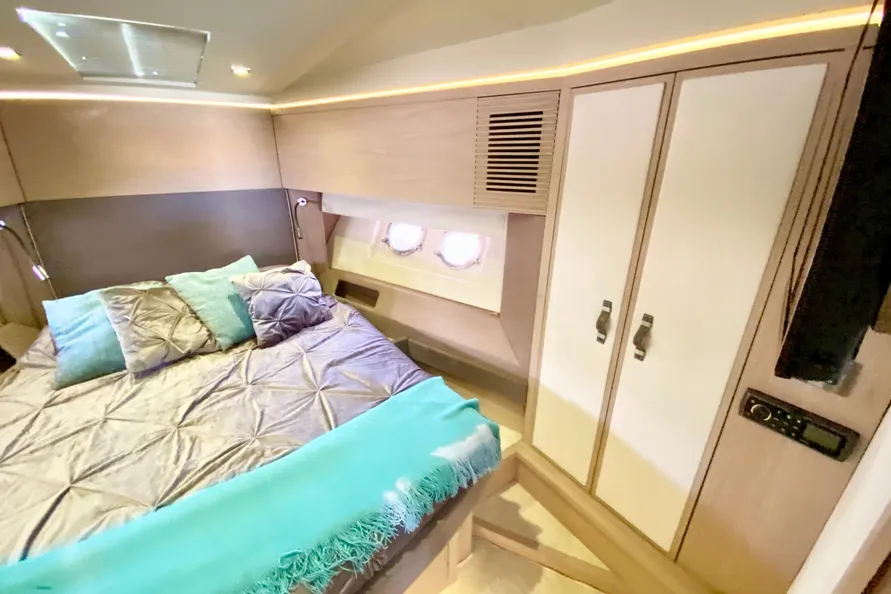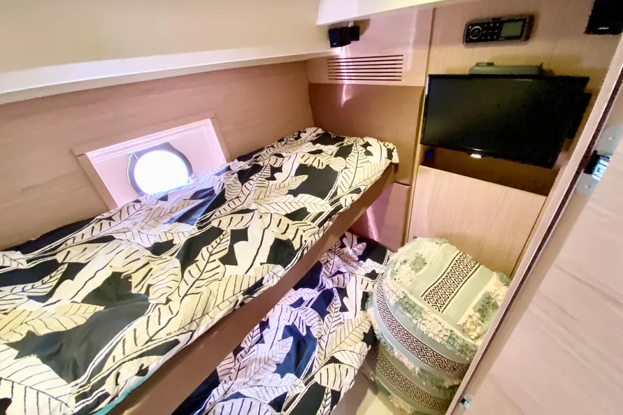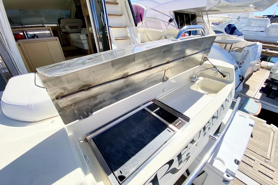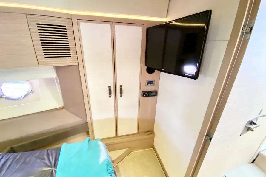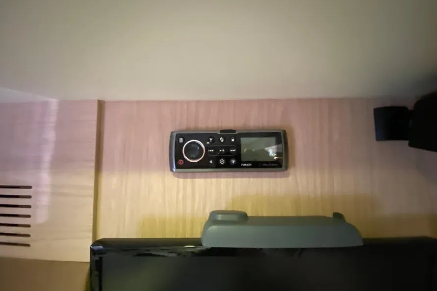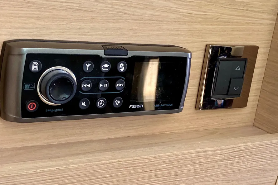32" LED TV pre-cabling + Bose 2.1 Hi-fi system + Fusion 700 Audio/ DVD player + Dock iPod + Bluetooth connection + 2 Remote controls (Cockpit and flybridge) + Outside speakers