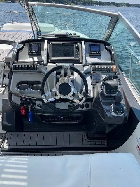 2015 Monterey 335 SY - Powered with Volvo Sterndrives Description of Boat: Presenting the luxurious 2015 Monterey 335 SY, equipped with powerful Volvo Sterndrives. This boat has been meticulously maintained and is in pristine shape, guaranteeing performance, durability, and sleek aesthetics. Engine and Performance: It packs the reliable Volvo Sterndrives which deliver industry-leading performance and a smooth ride even in challenging conditions. The combination of excellent handling and robust power makes your voyages exhilarating and enjoyable. Comfort and Design: The Monterey 335 SY is known for its stylish design and comfortable interior layout. The sophisticated and smart design, combined with high-end materials, spells out luxury while the spacious, versatile interior can comfortably accommodate your guests for an unforgettable time on the water. Key Features: The boat comes loaded with premium features like GPS Navigation, an upgraded audio system, a full galley kitchen, and a spacious cockpit offering ample comfortable seating. It also benefits from a well-equipped head with a shower and an elegant, roomy cabin featuring a queen-sized berth for relaxing after a day on the water. Safety Measures: Safety features are paramount in the Monterey 335 SY. Life jackets and first aid kits are included, along with state-of-the-art navigational tools to ensure you have a safe and secure journey. Summary: In short, the 2015 Monterey 335 SY powered with Volvo Sterndrives offers you an opportunity to experience the perfect fusion of power, comfort, and luxury. This is an ideal boat for those who demand the very best in boating. Don't miss this chance to explore the waters in style and comfort.