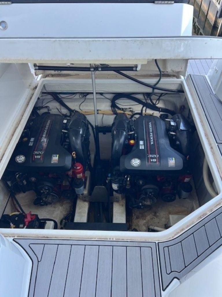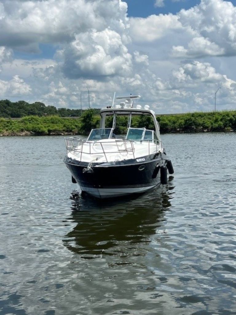 Leave the turmoil of civilization behind aboard the 335 Sport Yacht. A perfect weekend getaway, the 335SY is equipped with many of the features of its larger sisters. The helm on the 335SY is unique featuring twin forward facing helm seats and chart storage on the power side. Built in steps in the cabin door allow safe access to the bow where a large sun pad awaits.