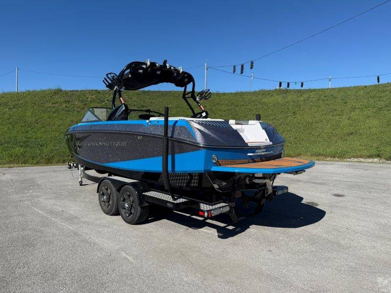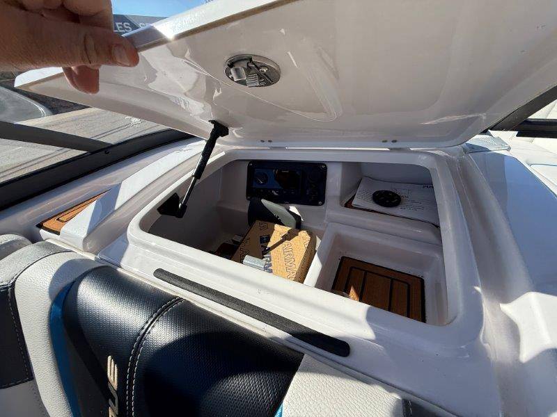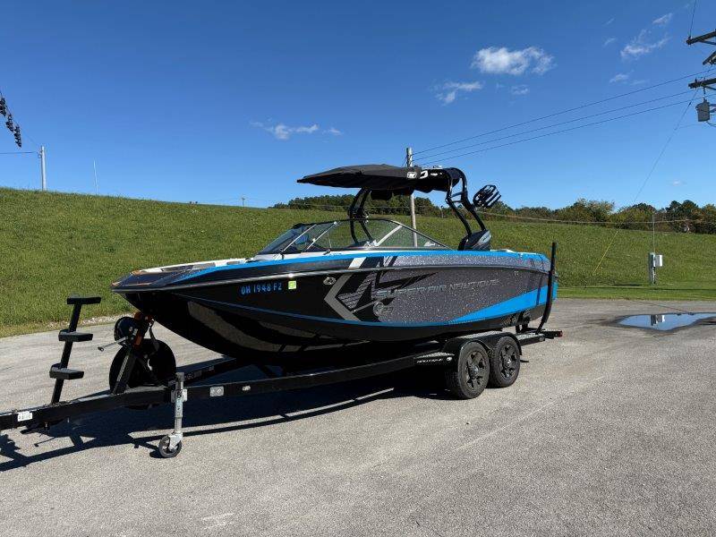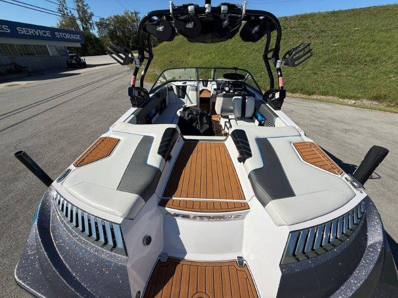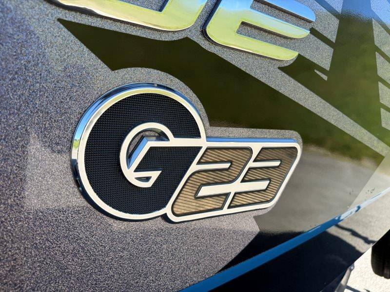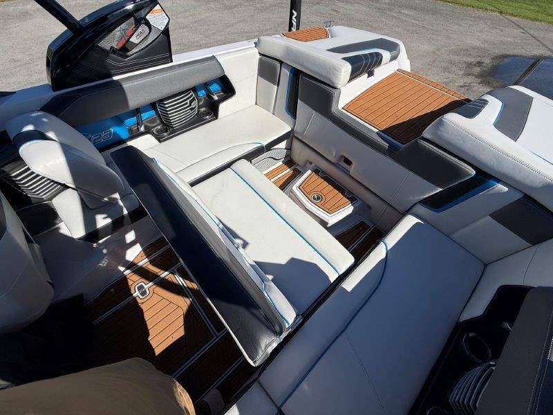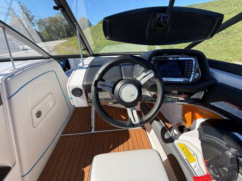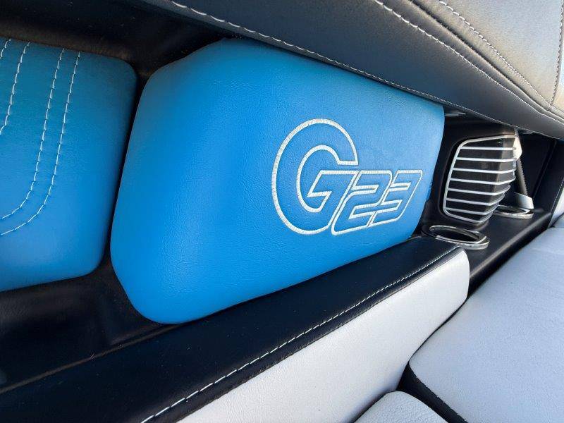 2015 Nautique G23 •Length: 23 ft Beam: 102 in Dry Weight: 5,400 lbs Seating Capacity: 16 Performance and engine Engine: PCM 6.0L ZR450 (409 HP) Ballast: Integrated system with approximately 2,980 lbs capacity Cruise Control: Zero Off GPS Cruise Control Hull: Nautique G-Series Wake Hull Features Helm: LINC Digital Helm Command Center with a premium touchscreen Surf System: Nautique Surf System (NSS) with wave-shaping plates Stereo: JL Audio system with tower speakers, subwoofer, and zone control Lighting: LED courtesy and underwater lights Flooring: SeaDek non-skid decking Comfort: Heater package, heated seats, and a reversible rear-facing seat Storage: In-floor cooler, transom cooler, and numerous storage compartments