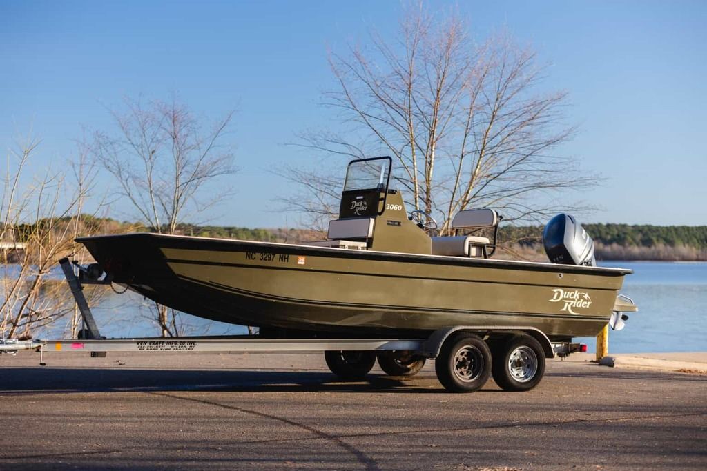 This is the 2015 Bay Rider 2060 Duck Rider Edition. A flat-bottom skiff engineered for stealth, speed, and shallow-water performance, decked out in a package that’s nearly impossible to find.