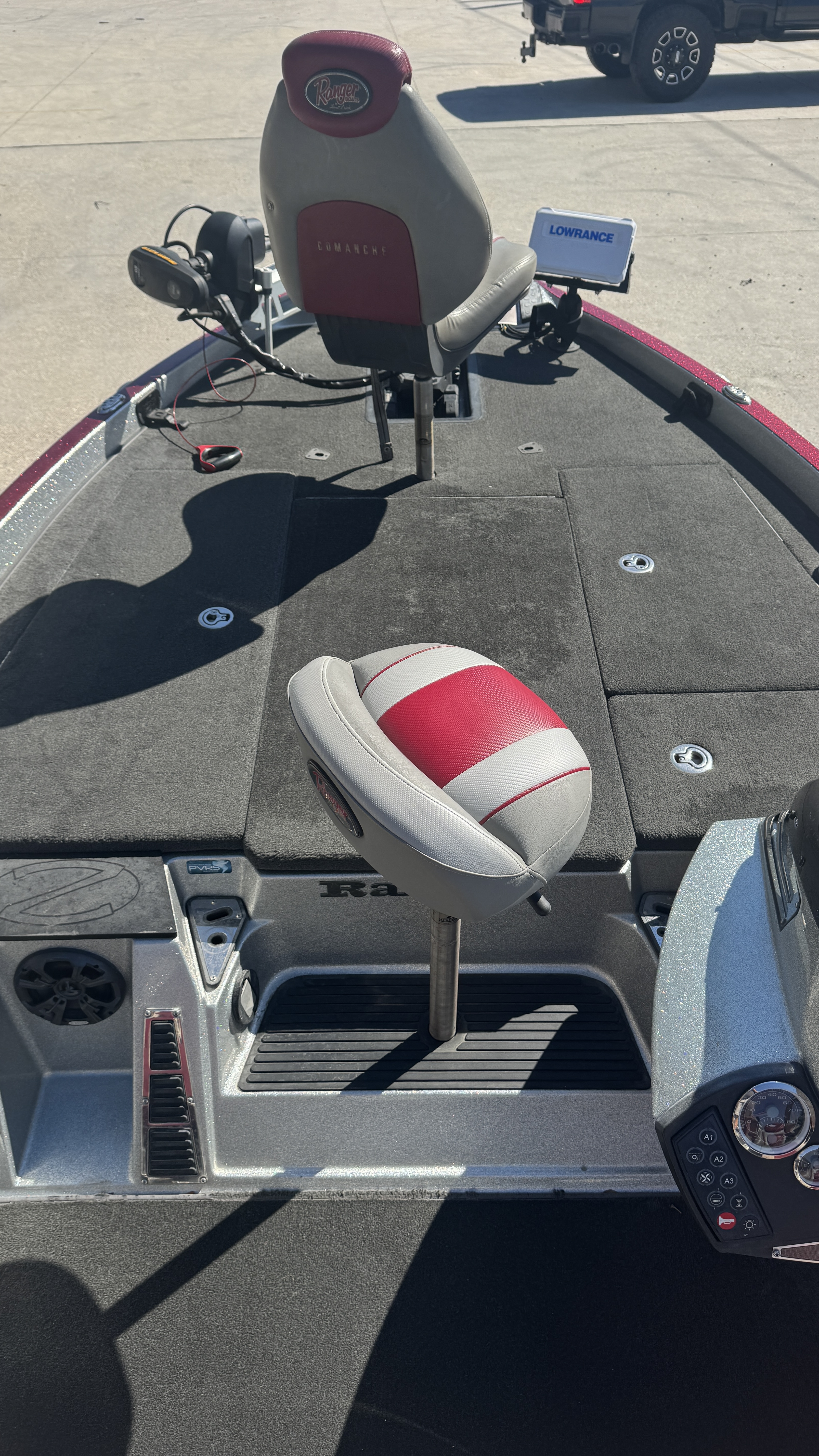 •Lowrance Fish Finders at console and bow with ActiveTarget live sonar system