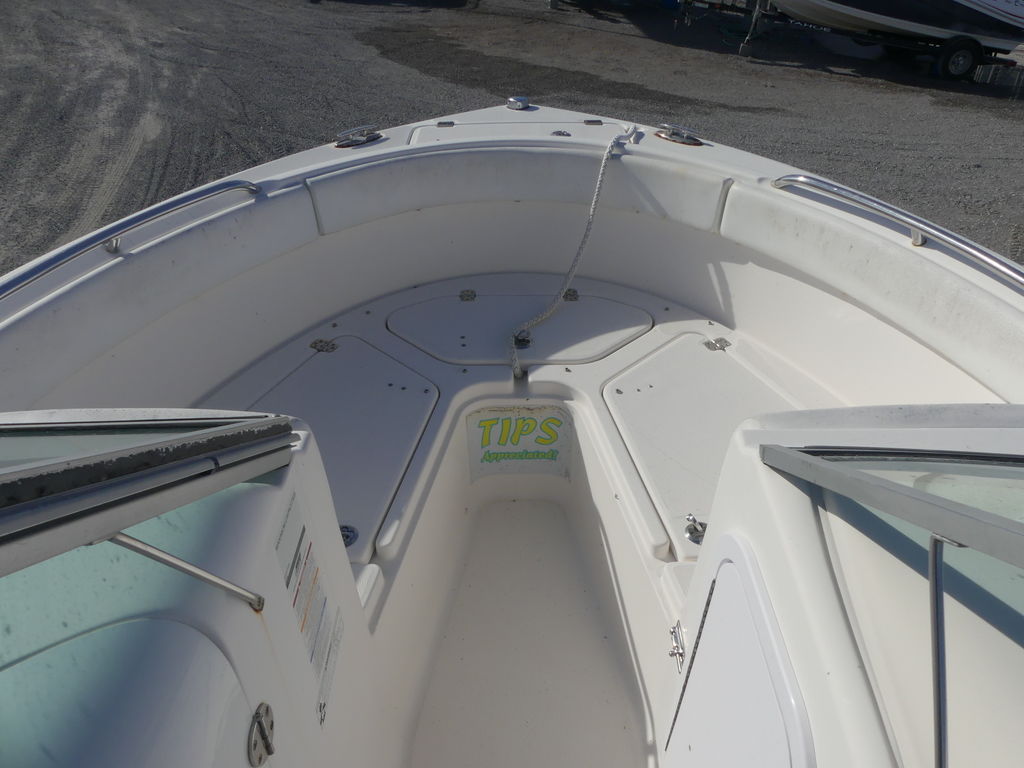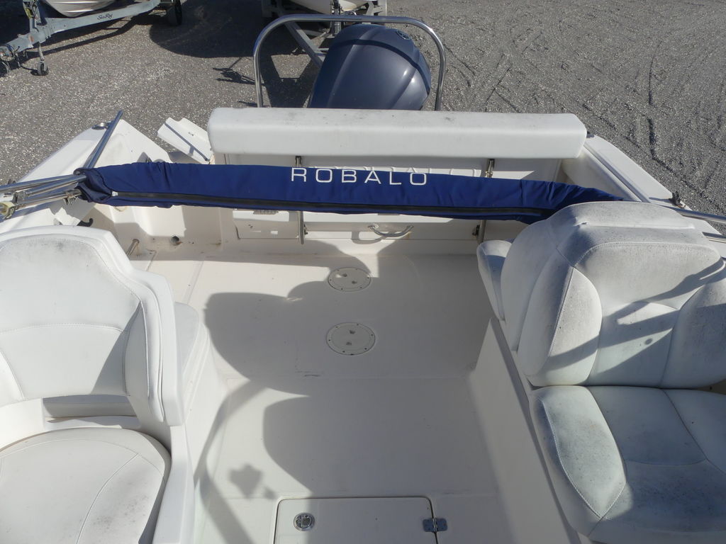 Boats like the R227 are the reason why dual console outboards are one of the hottest sellers on the water today. In what other 22-footer can you fish at sunrise, wakeboard all day and cruise under the moonlight? As a fishing machine, the R227 includes secure rod storage, a raw water wash down, a self bailing cockpit and a 20-gallon livewell. Up front, the bow area easily converts from a casting platform to wraparound seating. In the cockpit, the R227 features a large enclosed head and a deep infloor ski locker with lockable rod storage. Stainless steel hardware including flush pull latches and electro-plated thru hull fittings are what you'd expect from Robalo. Key options include a must have Bimini Top with windscreen, ski tow bar, snap-in carpet and a freshwater shower.