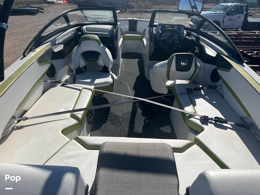 The interior of the Scarab 215HO Impulse is designed for comfort and functionality. It has a seating capacity for 10 passengers, allowing for enjoyable experiences with friends and family.