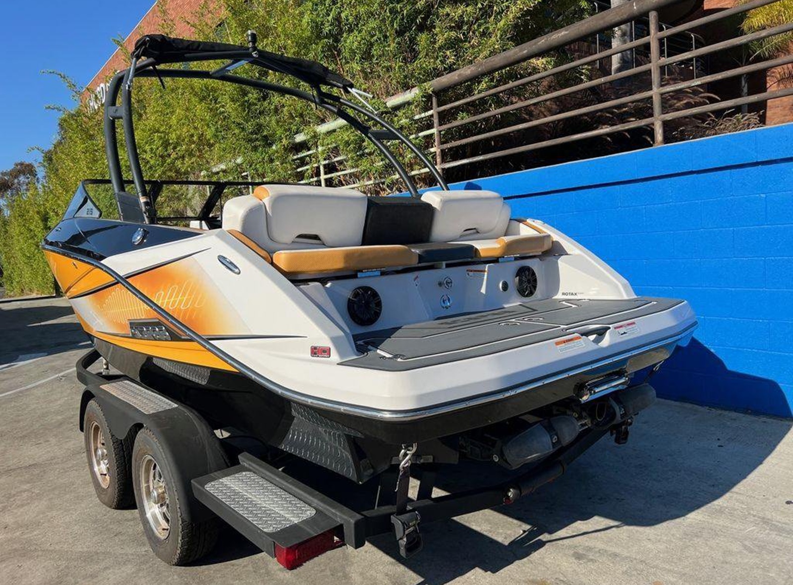 The 215 H.O. is the ultimate jet boat dream, offering all the features you'd expect for tow sports and powered by twin 250-hp Rotax engines that deliver more power than you'd believe.
