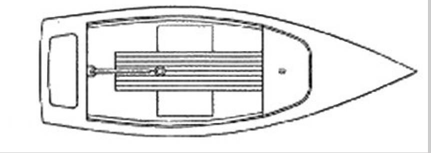 The motor is stored in the aft compartment. Open the hatch and swing the motor off the starboard quarter-aft. The drive shaft and propeller are mounted on a swinging frame integrated into the boat structure. Throttle controls are neatly positioned in a cubby on the starboard gunnel.