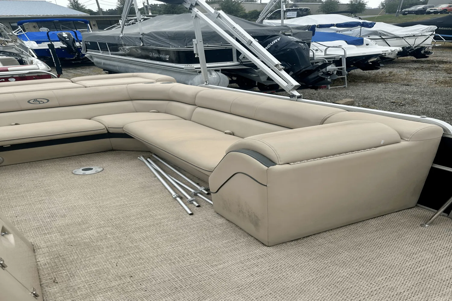 This pontoon blends relaxation with functionality-perfect for sunset cruises, family outings, or weekends on the lake. With upgraded audio, durable flooring, multiple entry points, and a thoughtful layout, it's built for worry-free enjoyment season after season. Call us TODAY!