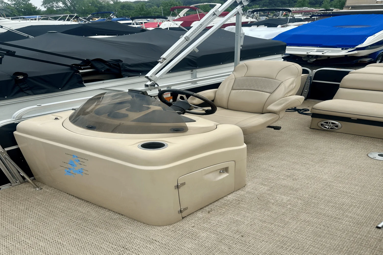 This pontoon blends relaxation with functionality-perfect for sunset cruises, family outings, or weekends on the lake. With upgraded audio, durable flooring, multiple entry points, and a thoughtful layout, it's built for worry-free enjoyment season after season. Call us TODAY!