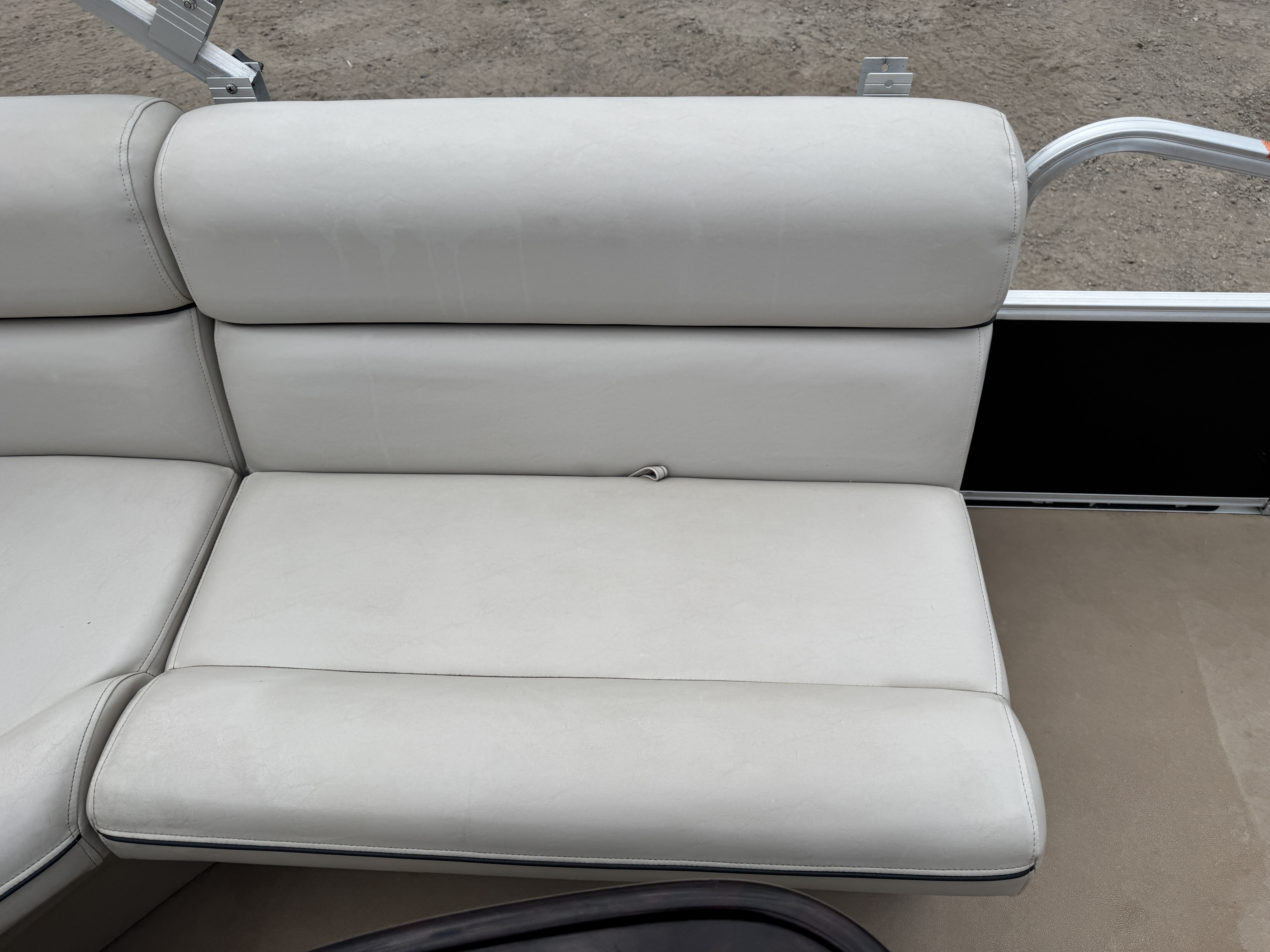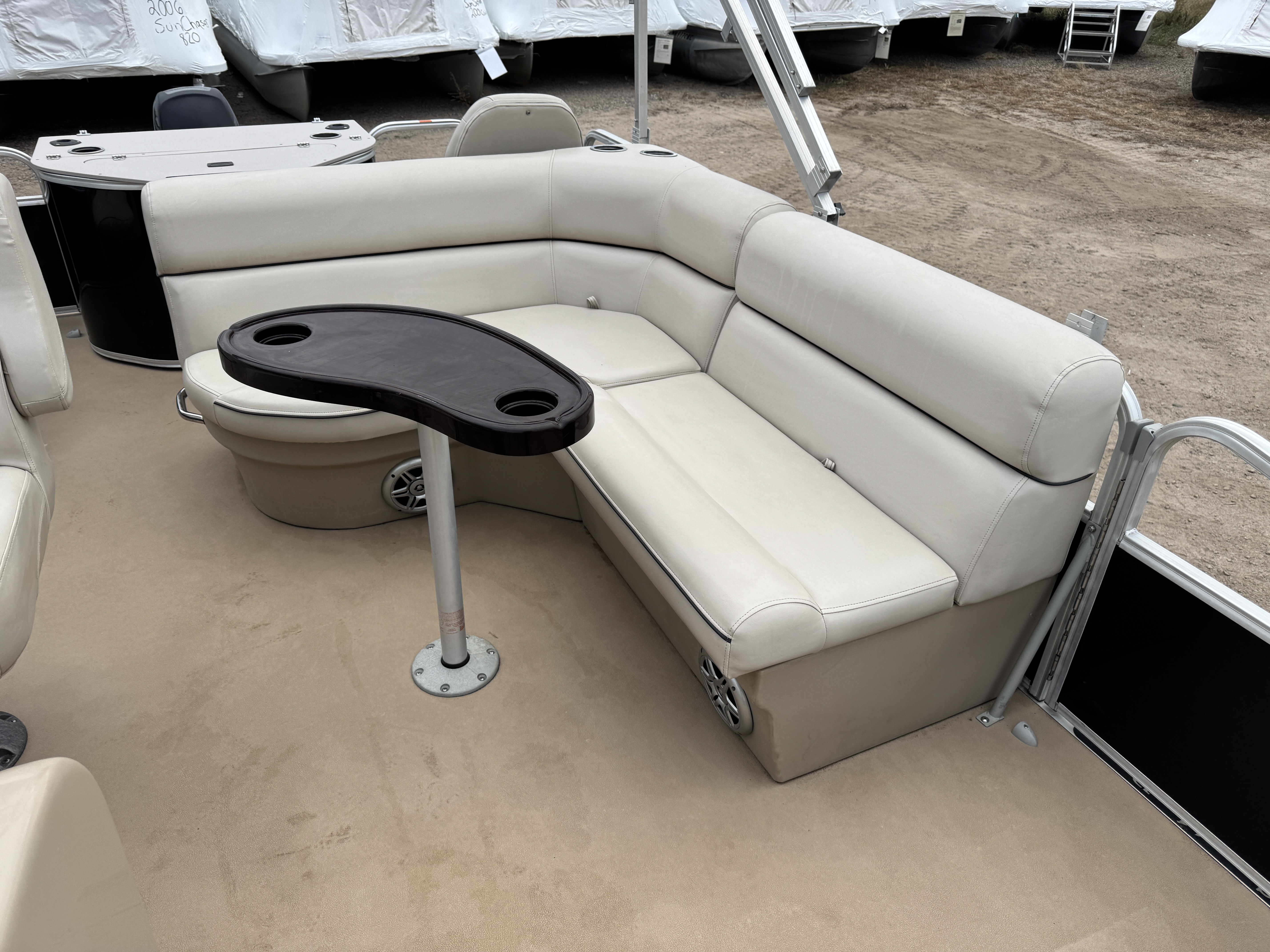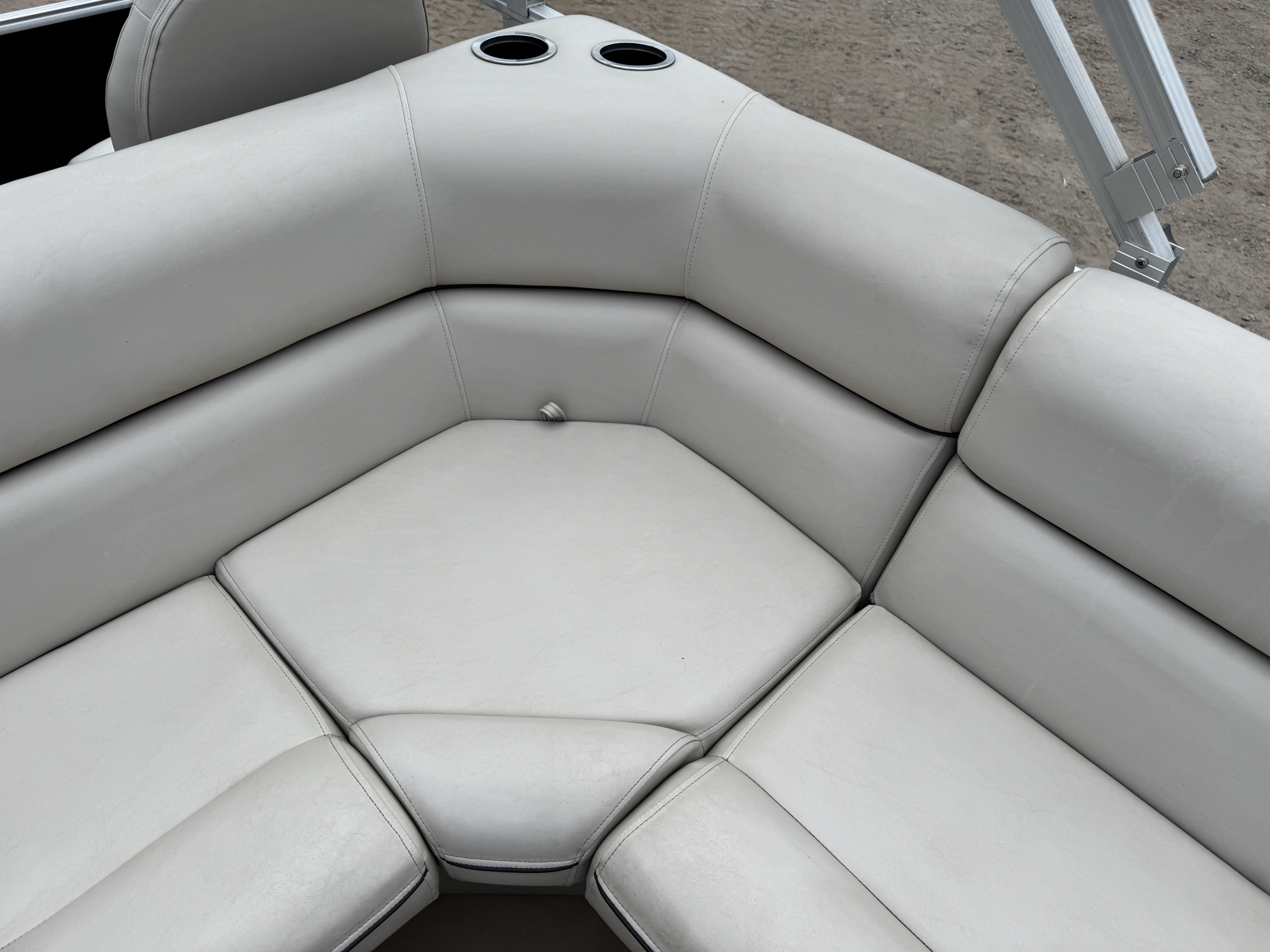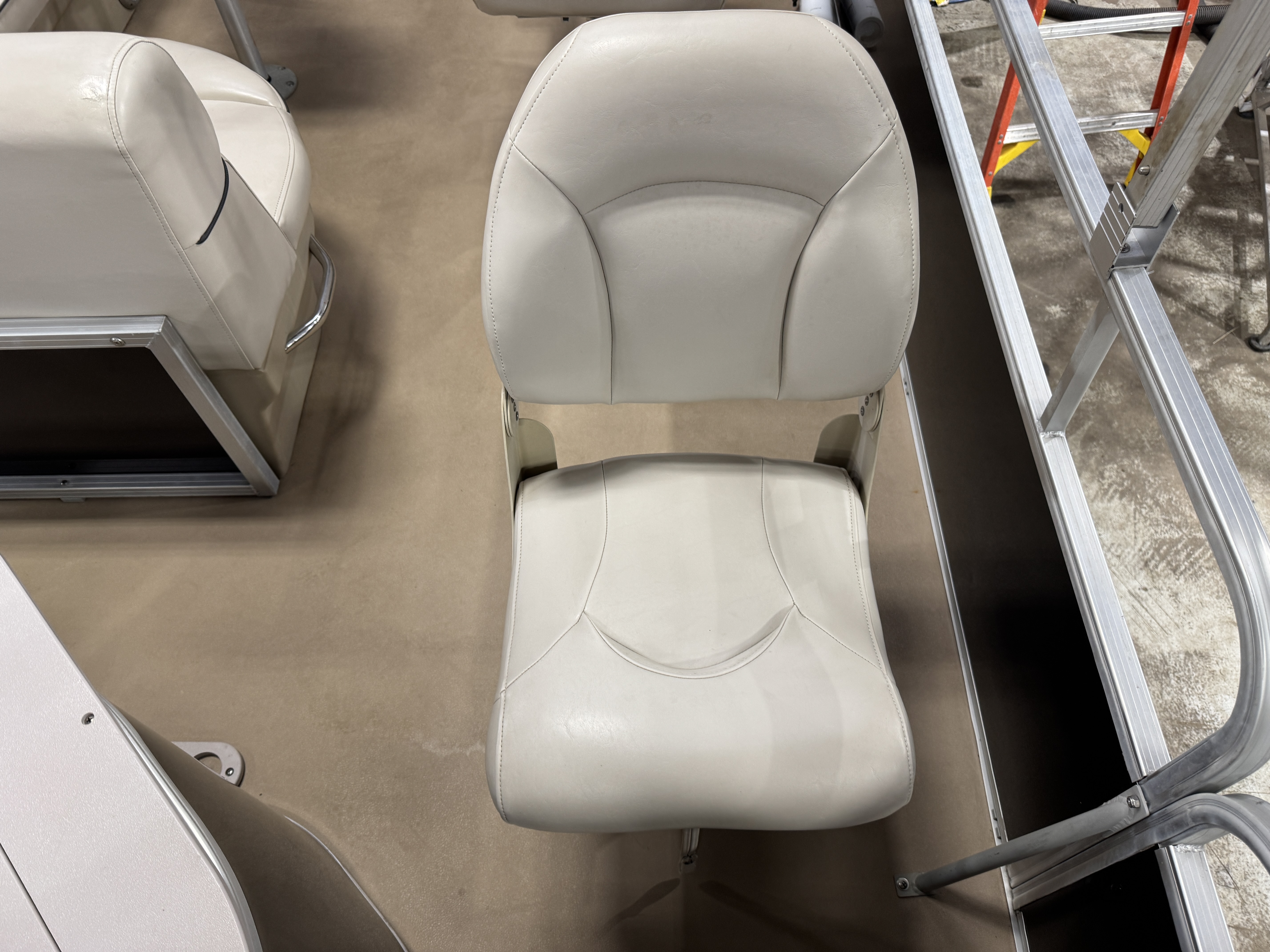 each corner of the pontoon. The front fishing seats have a mini console in the