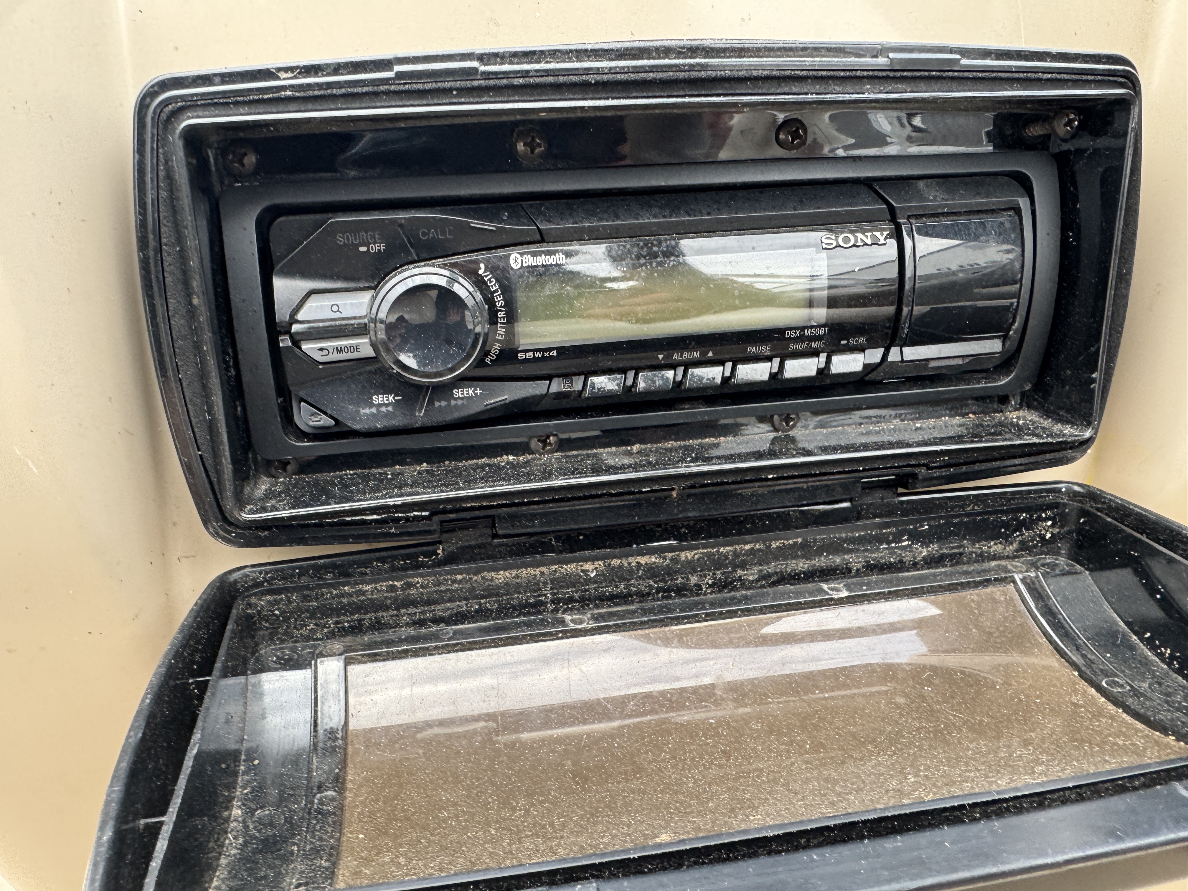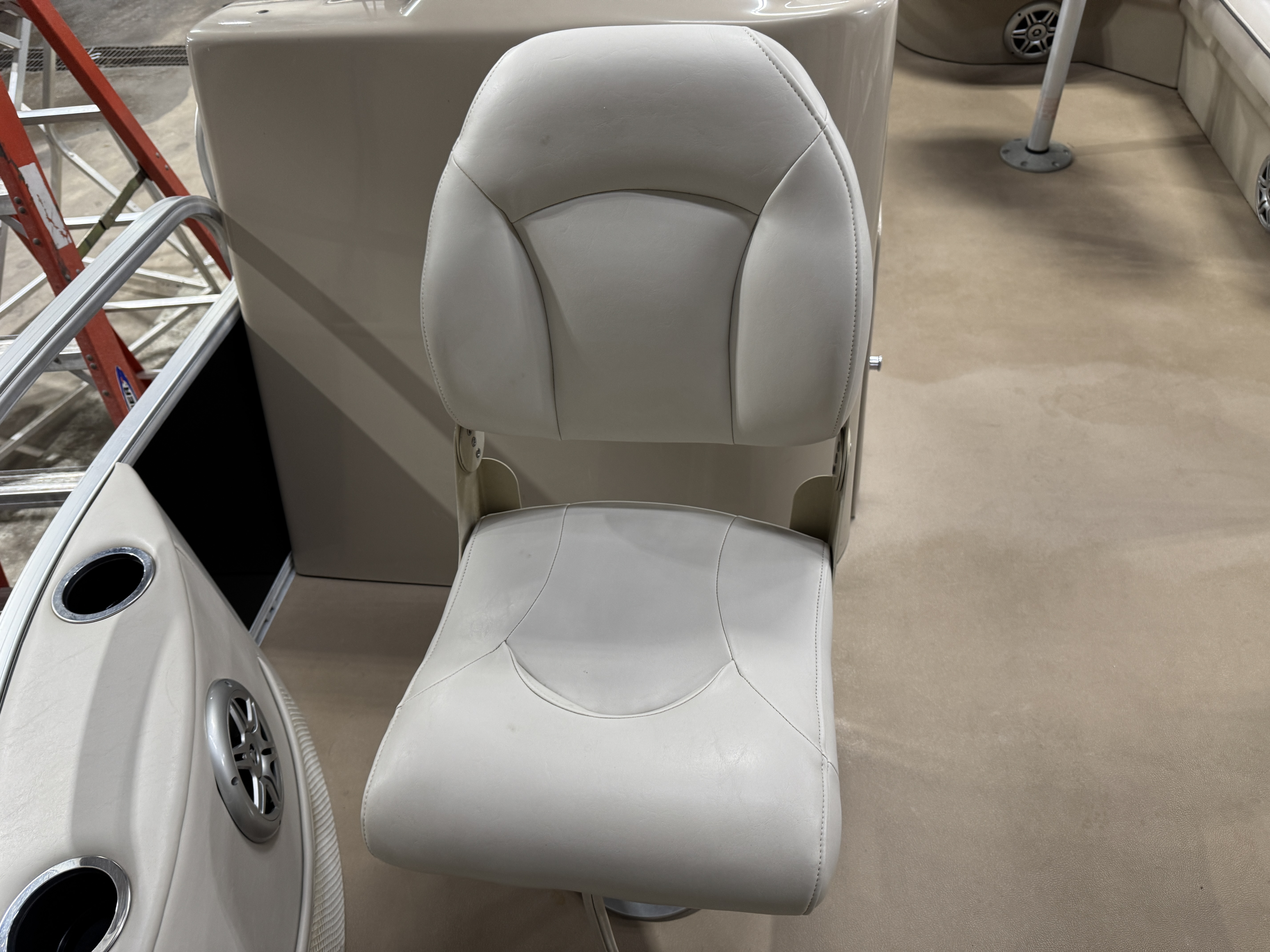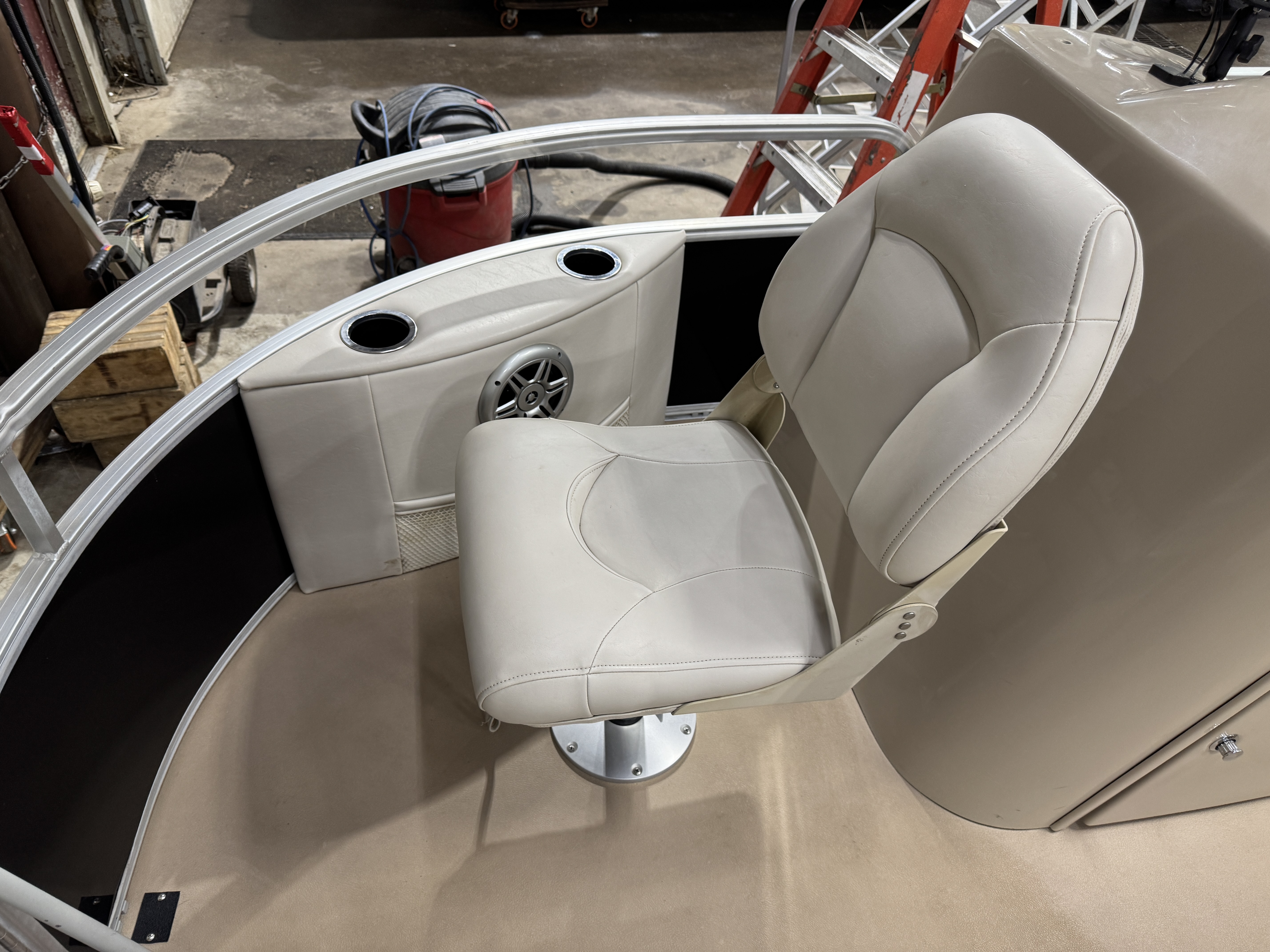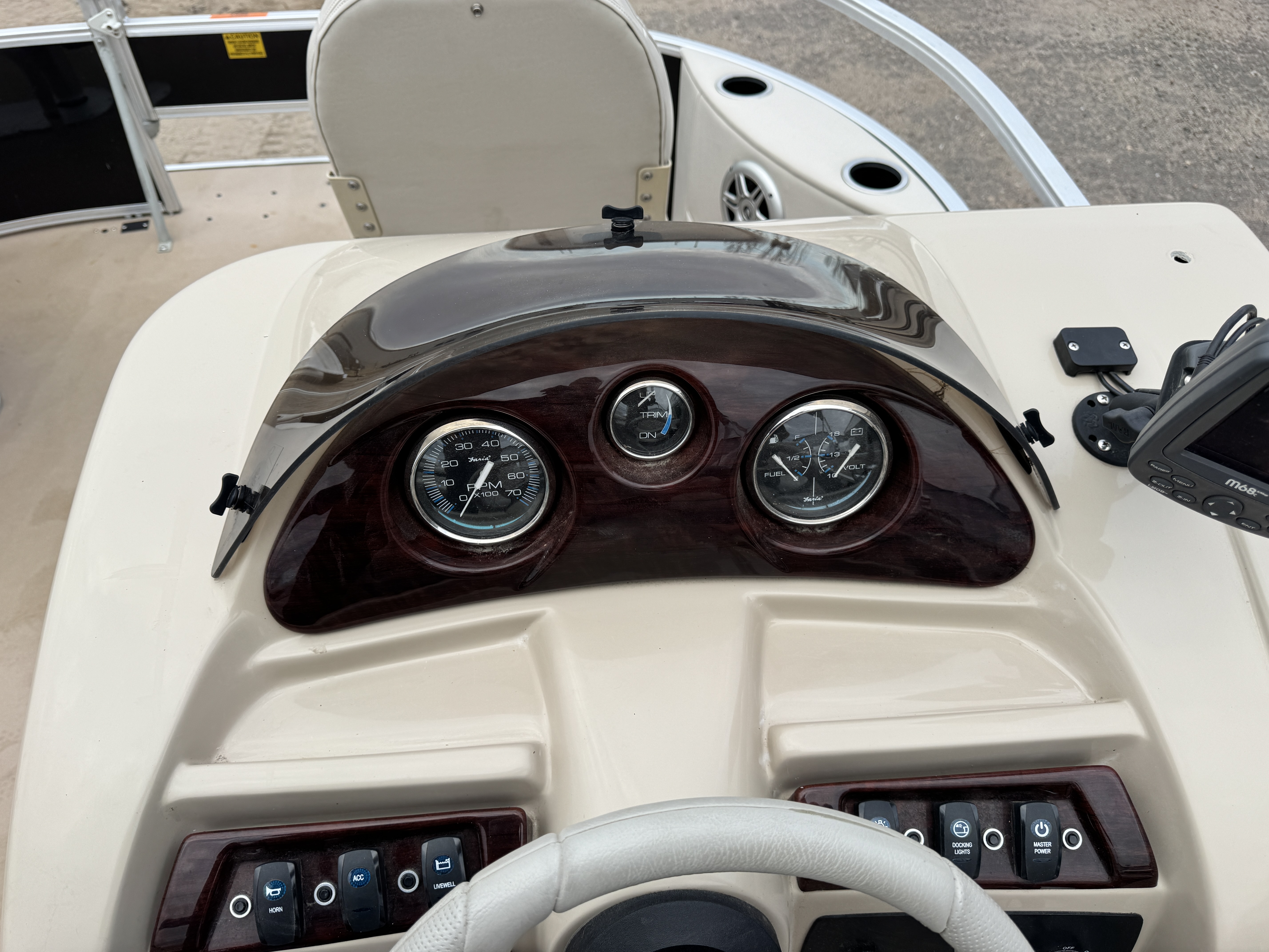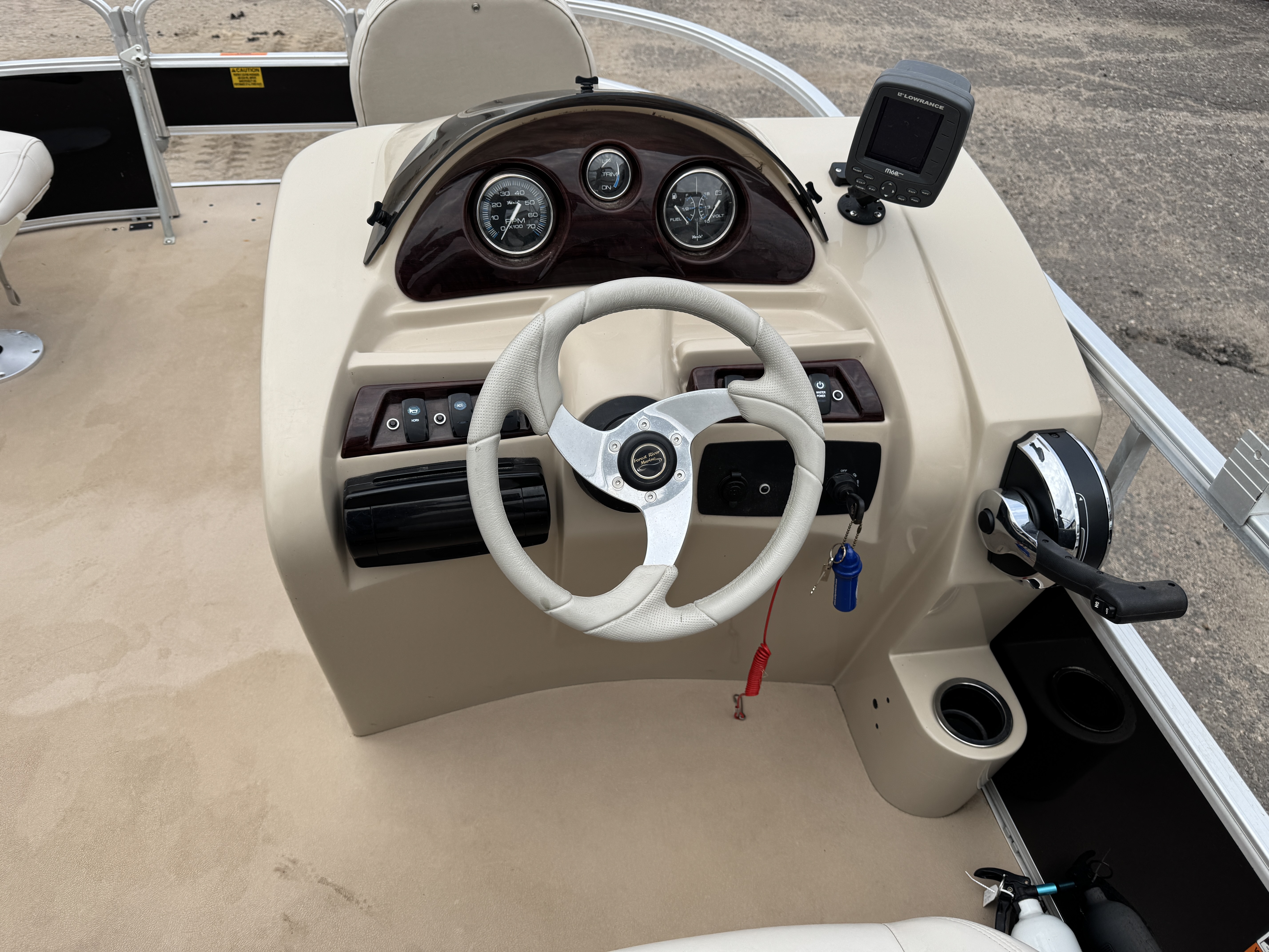helm features a Tachometer, Fuel, Volt and Trim gauge. There is a Sony Bluetooth