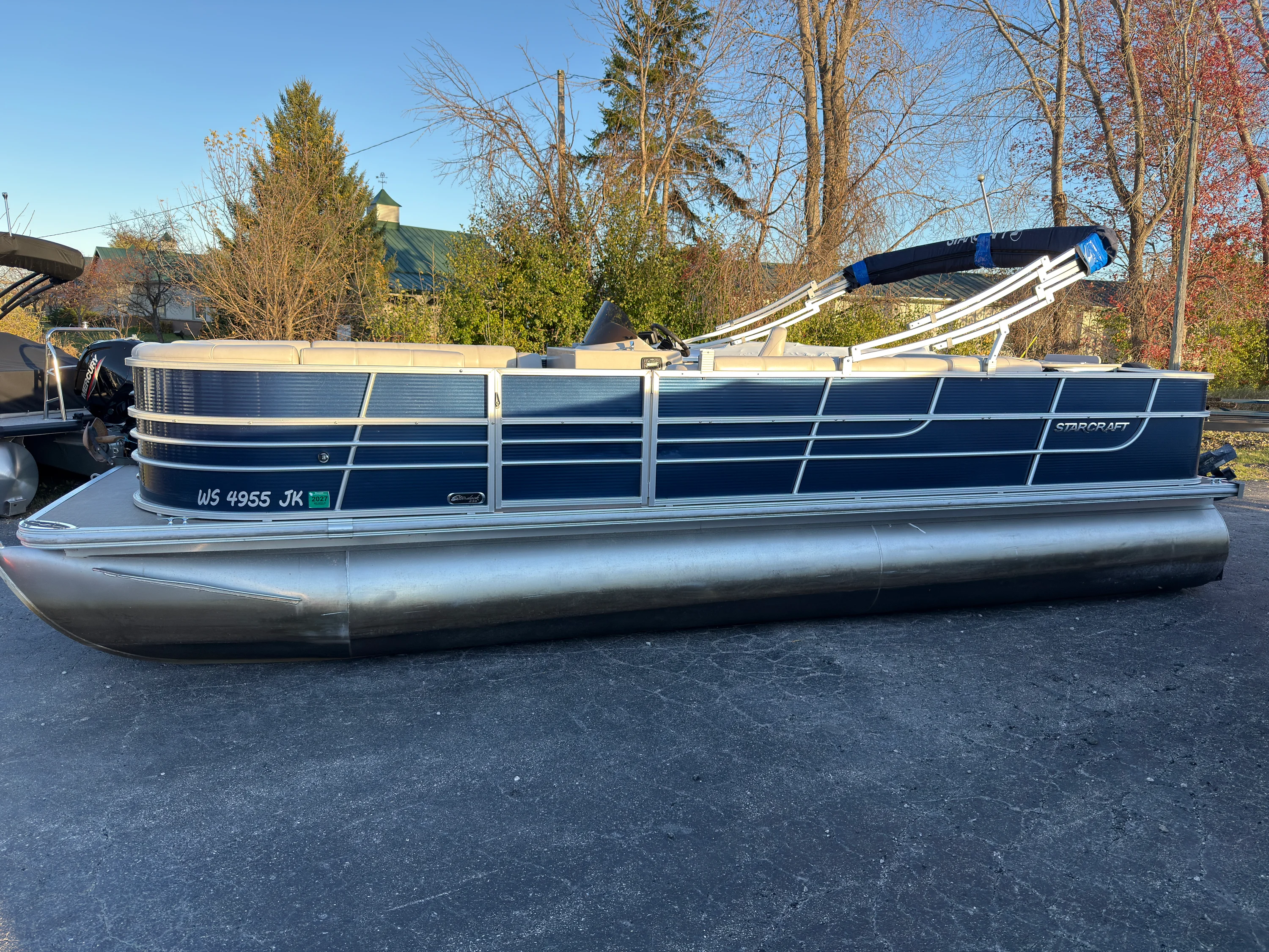 The 2015 StarCraft StarDeck 236 offers the perfect combination of comfort, stability, and fishing-ready design. With its open layout this model provides a smooth, confident ride and plenty of space for anglers to move freely. The StarDeck 236 is known for its versatility, making it an excellent platform for casting, trolling, or spending a relaxed day on the water. This fishing setup features ample room for gear, multiple storage compartments, and dedicated spaces for tackle and equipment. The roomy bow and stern areas offer easy casting access, while the integrated swim platform and boarding ladder provide convenience without sacrificing deck space. Comfortable seating wraps around the deck, giving passengers a smooth ride between spots while still leaving plenty of open fishing room. Whether you’re chasing your favorite freshwater species, scouting the shoreline, or enjoying a peaceful day on the lake, the 2015 StarCraft StarDeck 236 delivers reliability, comfort, and functionality in a well-appointed fishing package.