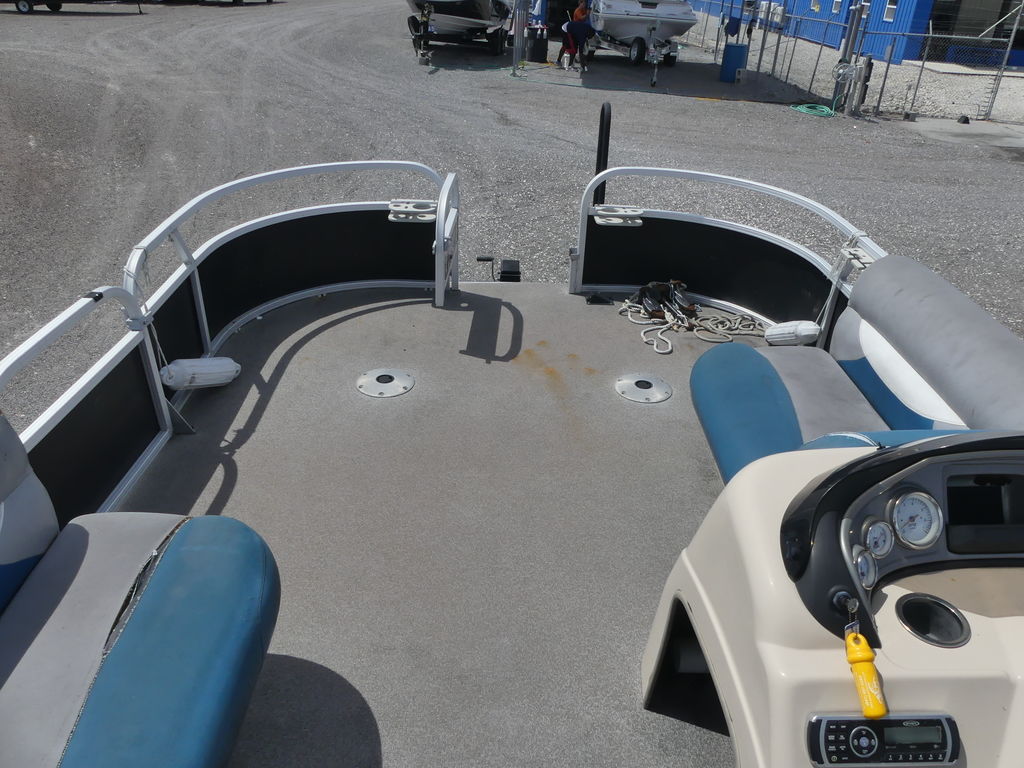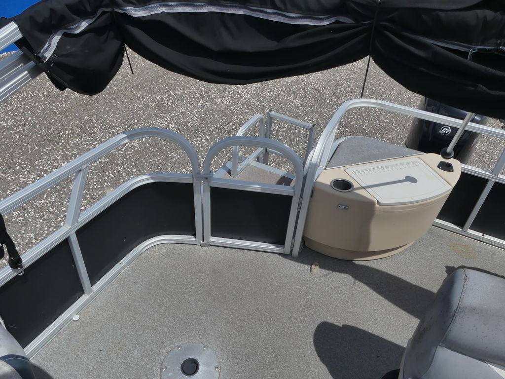 With room for a crew of up to 10, the FISHIN' BARGE 20 DLX is fully equipped to make your time on the water a pure joy for everyone in the family.At the helm, the captain will find a redesigned console with every convenience you can imagine, including a re-positioned binnacle throttle control and a new wraparound sport shroud with removable hood.Anglers will love the 3 fishing chairs (2 fore and 1 aft), the multiple rod holders, and the two aerated livewells. Parents will appreciate the safety of the inward-opening, dual-latching gates. And everyone will notice the smooth ride provided by the multichambered 24" pontoon logs with wave deflectors and internal bracing.Bottom line: the FISHIN' BARGE 20 DLX offers a huge amount of fun-packed features and the quality construction that SUN TRACKER is known for. It's a smart investment in the outdoors that will bring family and friends closer for years to come!