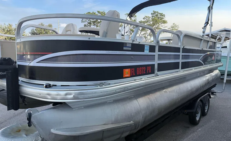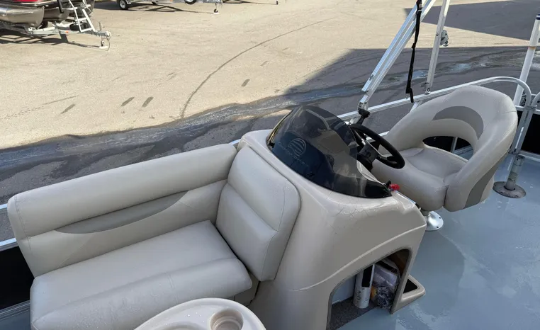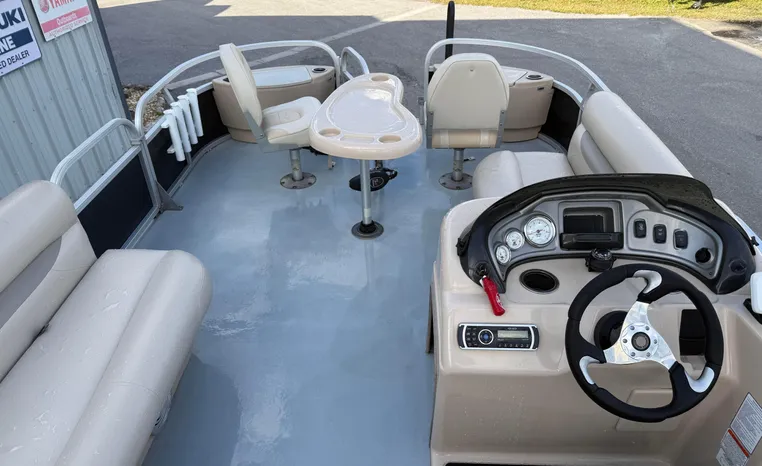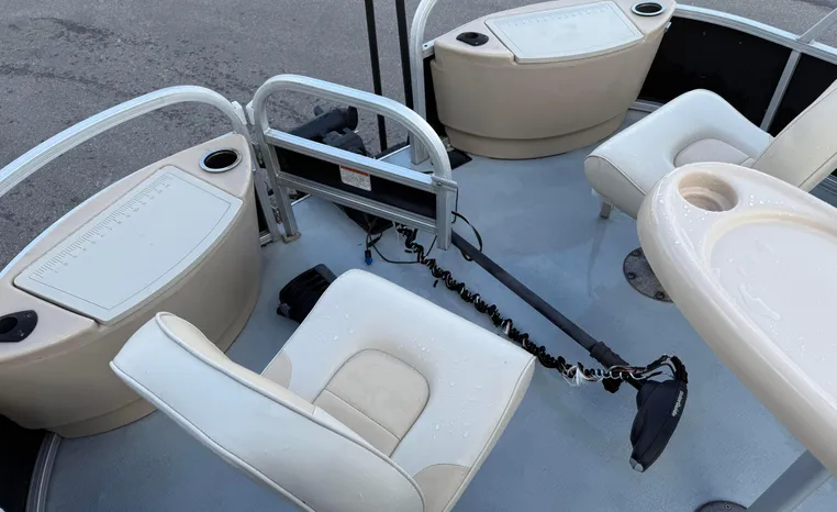 Enjoy the water in comfort with this 2015 Sun Tracker Fishin’ Barge 20 DLX, a spacious and versatile 22-foot pontoon designed for both relaxing cruises and productive fishing trips. Built with a durable aluminum pontoon hull, this boat offers excellent stability, smooth handling, and plenty of room for family and friends.