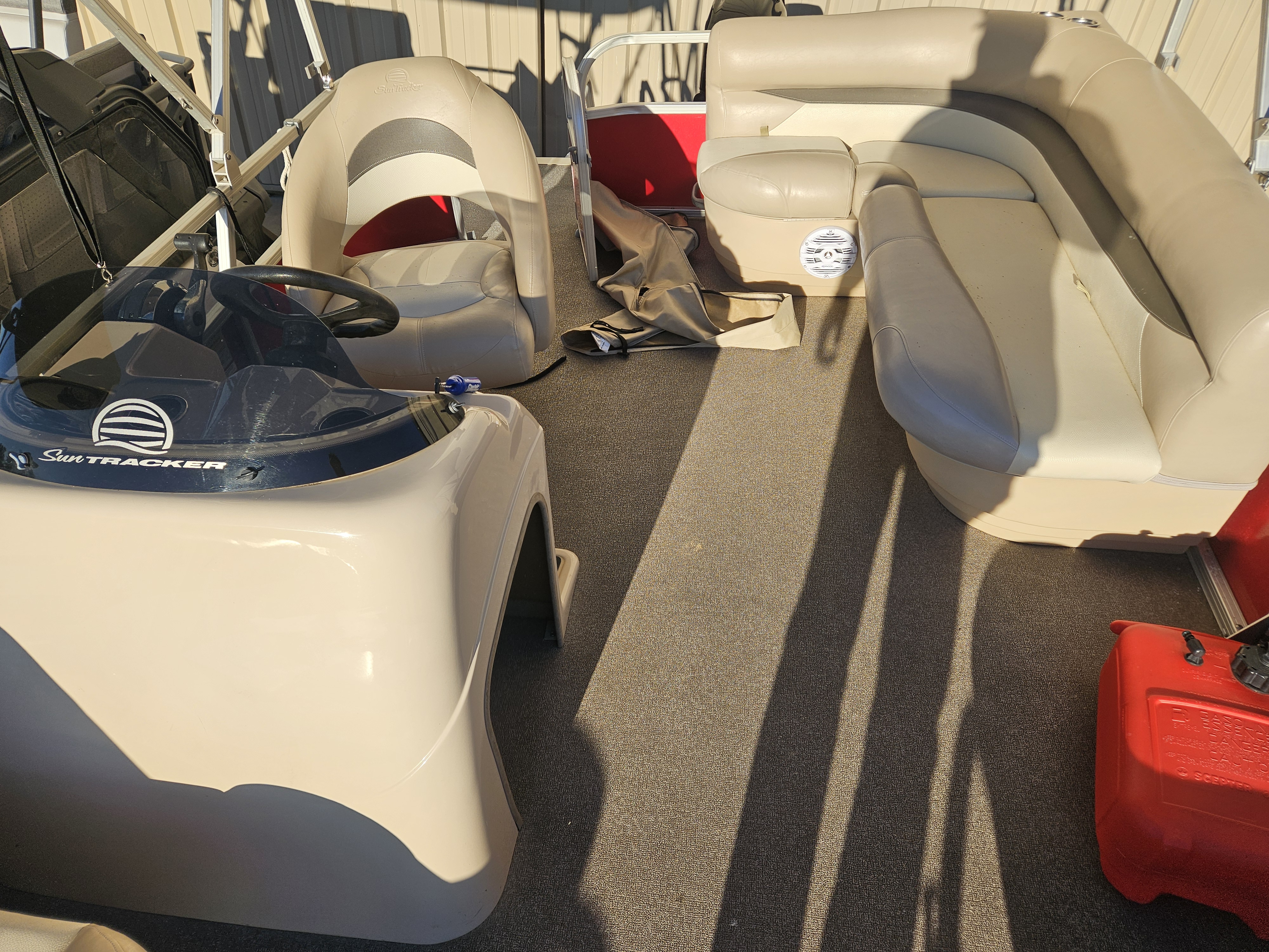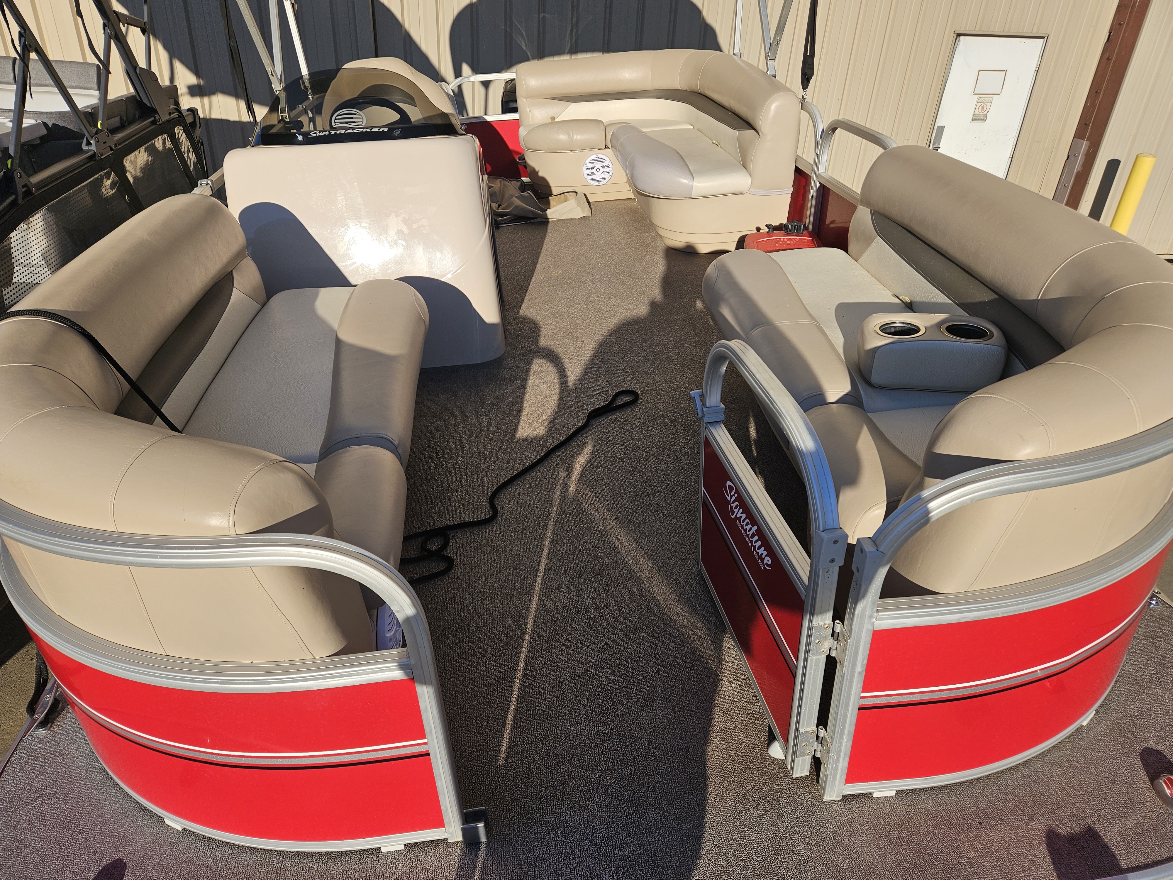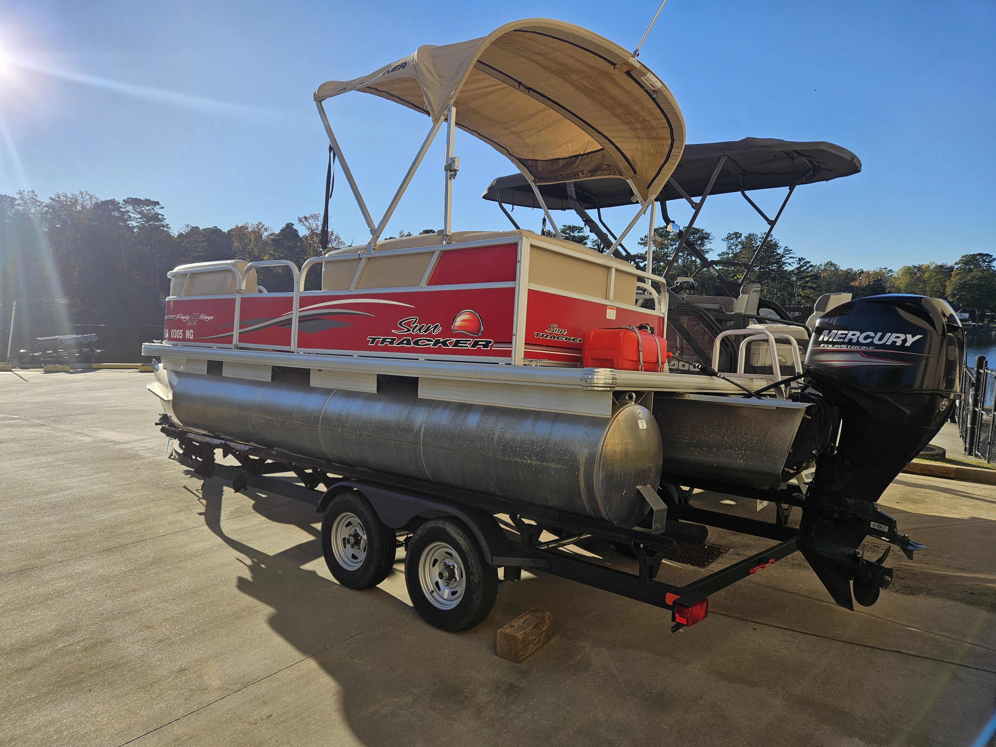 New arrival on consignment! Listing is for a 2015 Sun Tracker Party Barge 18 DLX powered by a 60hp ELPT 4-stroke outboard engine. The engine currently has 279 hours on it. This is a one owner boat and the owners purchased it new from us at Sinclair Marina. Boat has been through our standard service evaluation and is in great condition. There is one thing to note, the factory fuel tank failed a couple years ago, and the customer had it converted to use two 6 gallon portable tanks (total of 12 gallons.) This makes it easier to fill up with fuel if you are on a lake. You are able to remove the tanks and take them to fill up rather than having to tow the boat to a fuel station. The combined 12 gallons provides plenty of range for this 60hp 4-stroke engine. Boat arrived to us super clean, and will be cleaned again prior to customer taking possession after purchase. This listing is for a boat & motor package only, it does not have a trailer with it. We do have trailer options available at an additional price if needed. Max HP: 75 hp