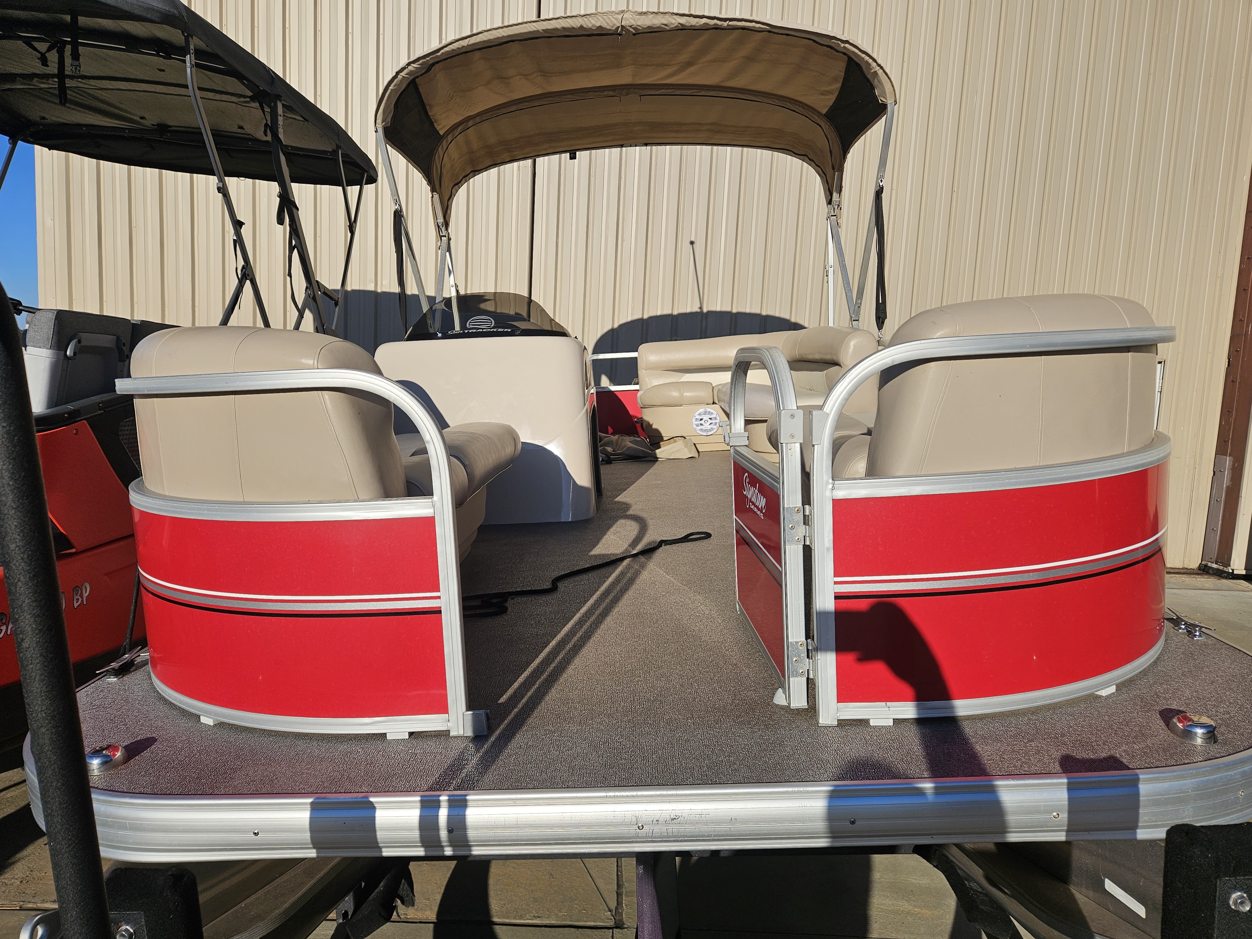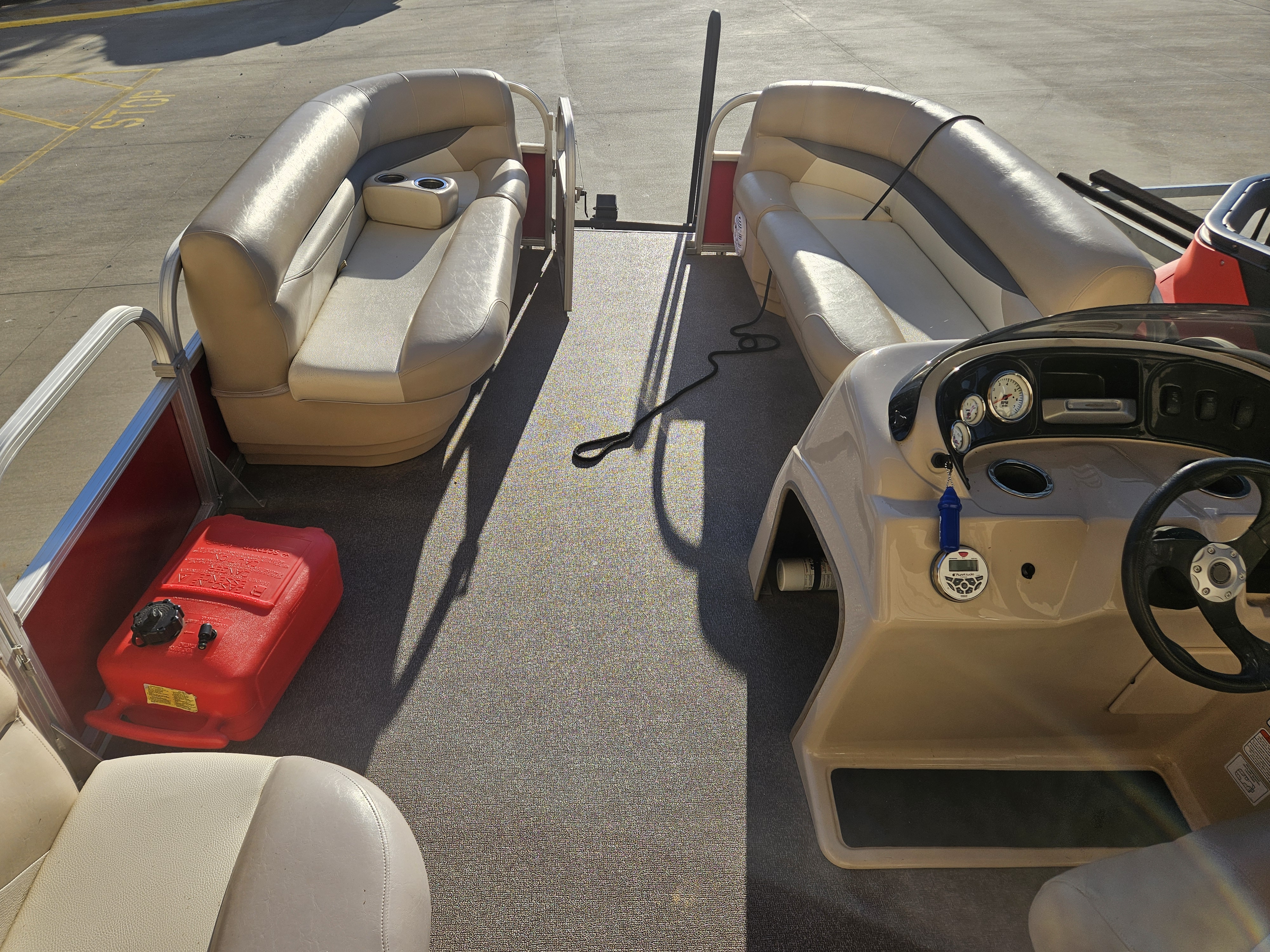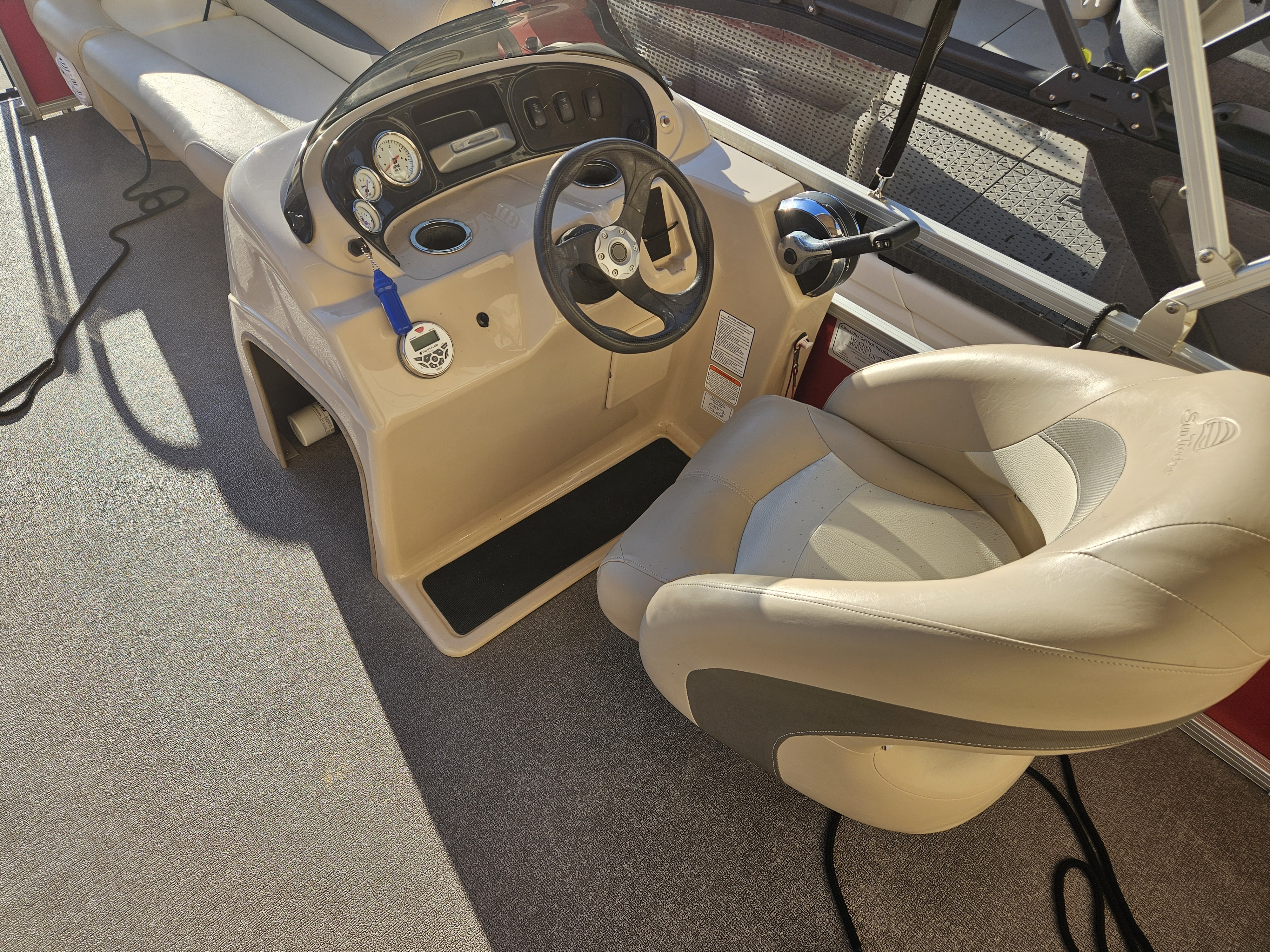 New arrival on consignment! Listing is for a 2015 Sun Tracker Party Barge 18 DLX powered by a 60hp ELPT 4-stroke outboard engine. The engine currently has 279 hours on it. This is a one owner boat and the owners purchased it new from us at Sinclair Marina. Boat has been through our standard service evaluation and is in great condition. There is one thing to note, the factory fuel tank failed a couple years ago, and the customer had it converted to use two 6 gallon portable tanks (total of 12 gallons.) This makes it easier to fill up with fuel if you are on a lake. You are able to remove the tanks and take them to fill up rather than having to tow the boat to a fuel station. The combined 12 gallons provides plenty of range for this 60hp 4-stroke engine. Boat arrived to us super clean, and will be cleaned again prior to customer taking possession after purchase. This listing is for a boat & motor package only, it does not have a trailer with it. We do have trailer options available at an additional price if needed. Max HP: 75 hp