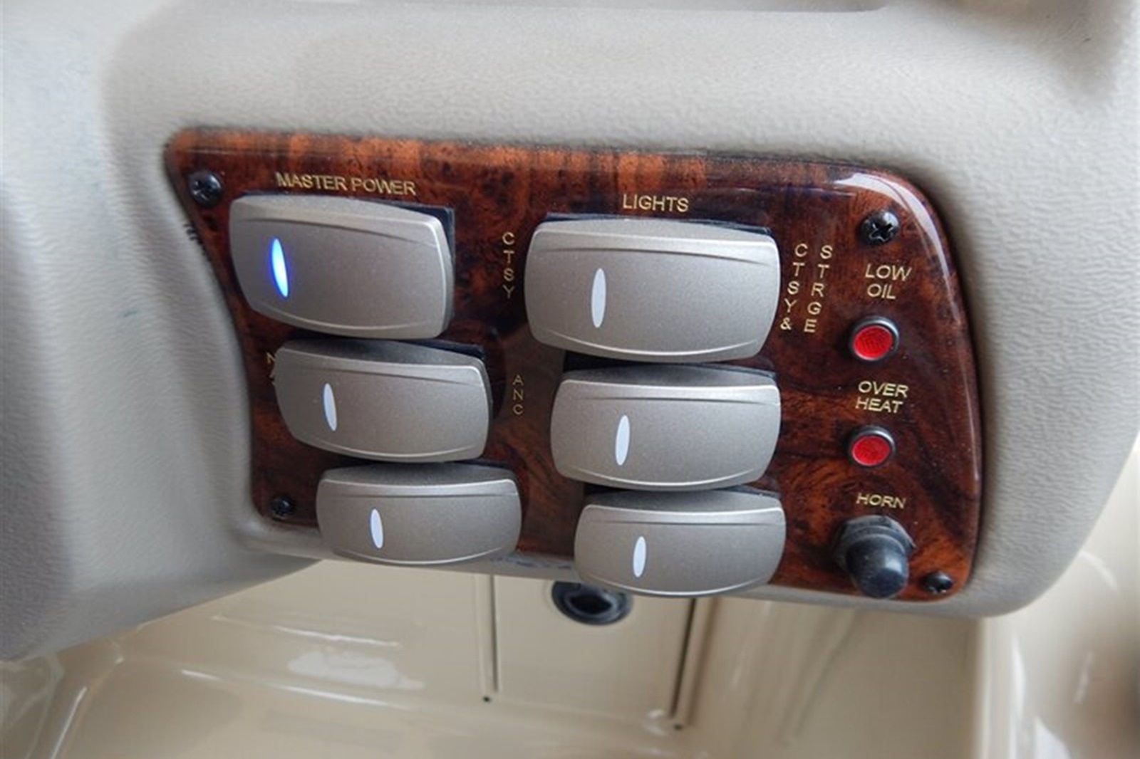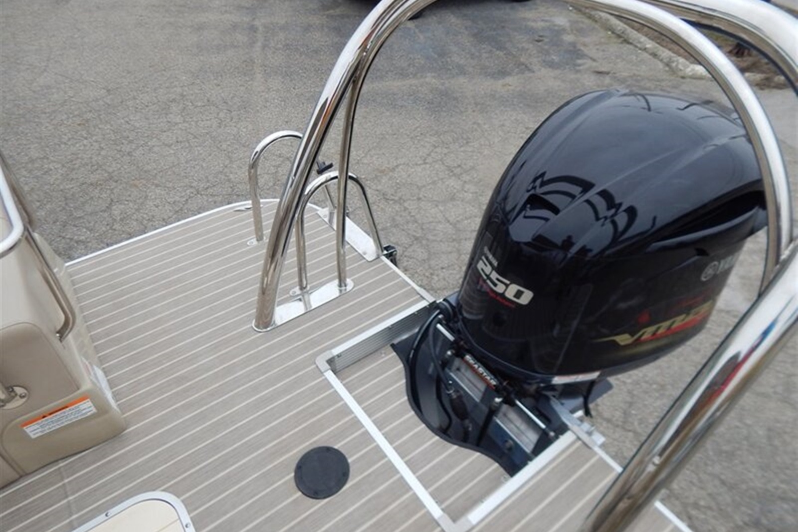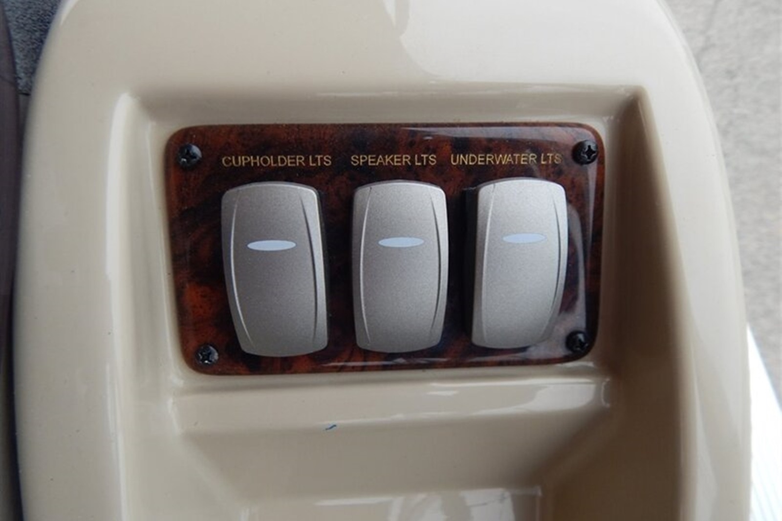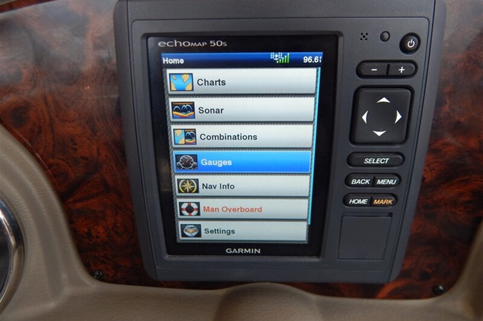 Hydraulic Steering Lifting Strakes Double Bimini Tops with Boot Covers Sub-Floor Storage Locker Ski Tow Bar Sony Stereo System Garmin Echo50s GPS and graphing Underwater lighting Bow Docking Lights Changing Room with Canvas