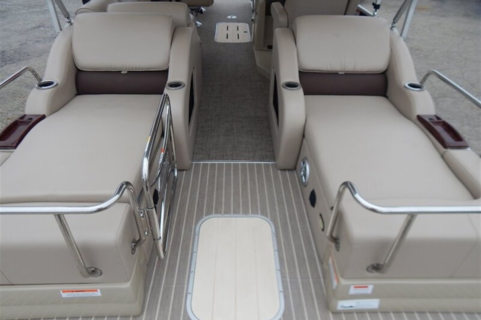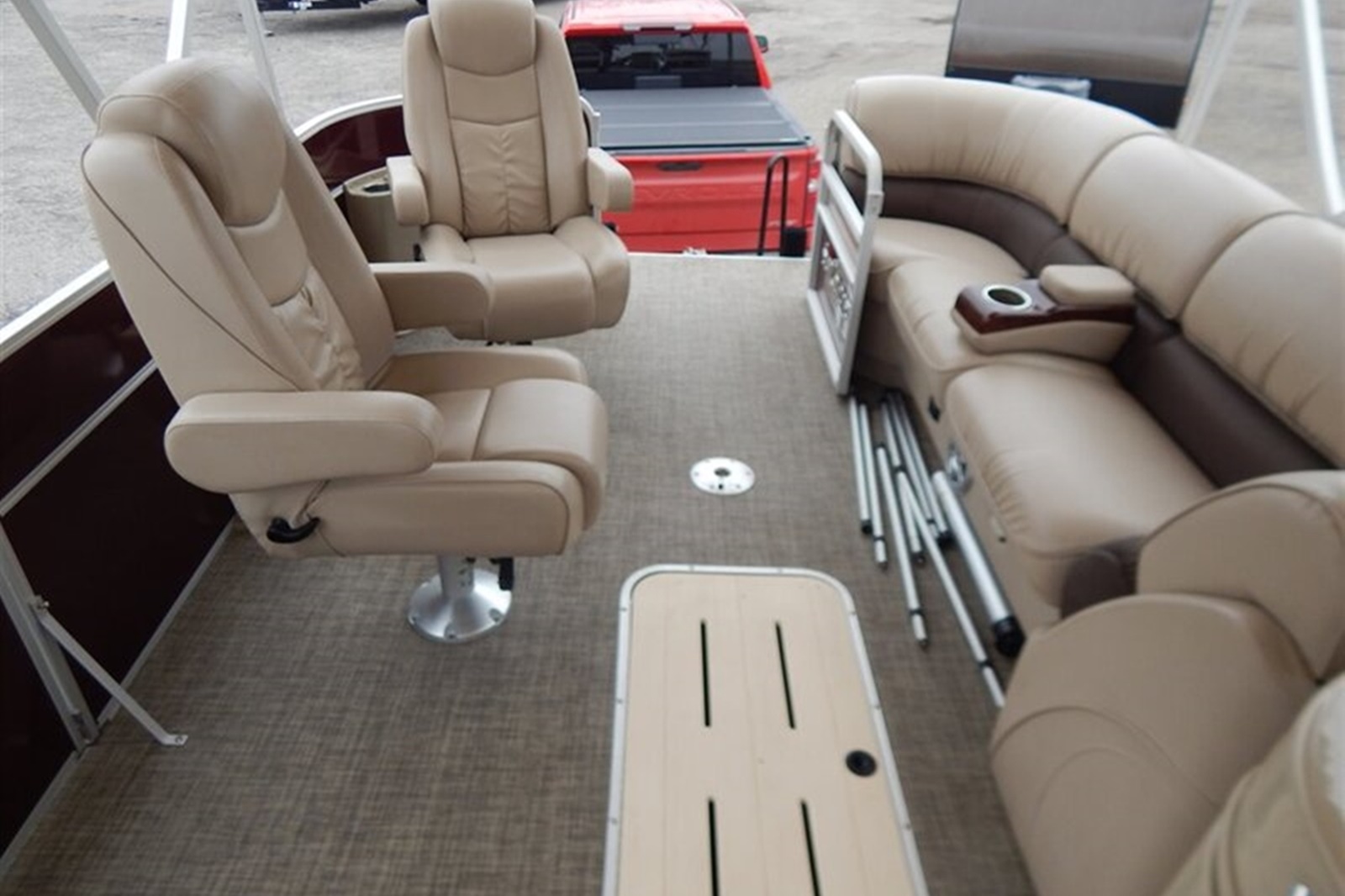 The Elite Series of SunCatcher pontoons feature elegant amenities; soft suede-like furniture, mood-setting blue LED lighting and attention to detail at every turn.