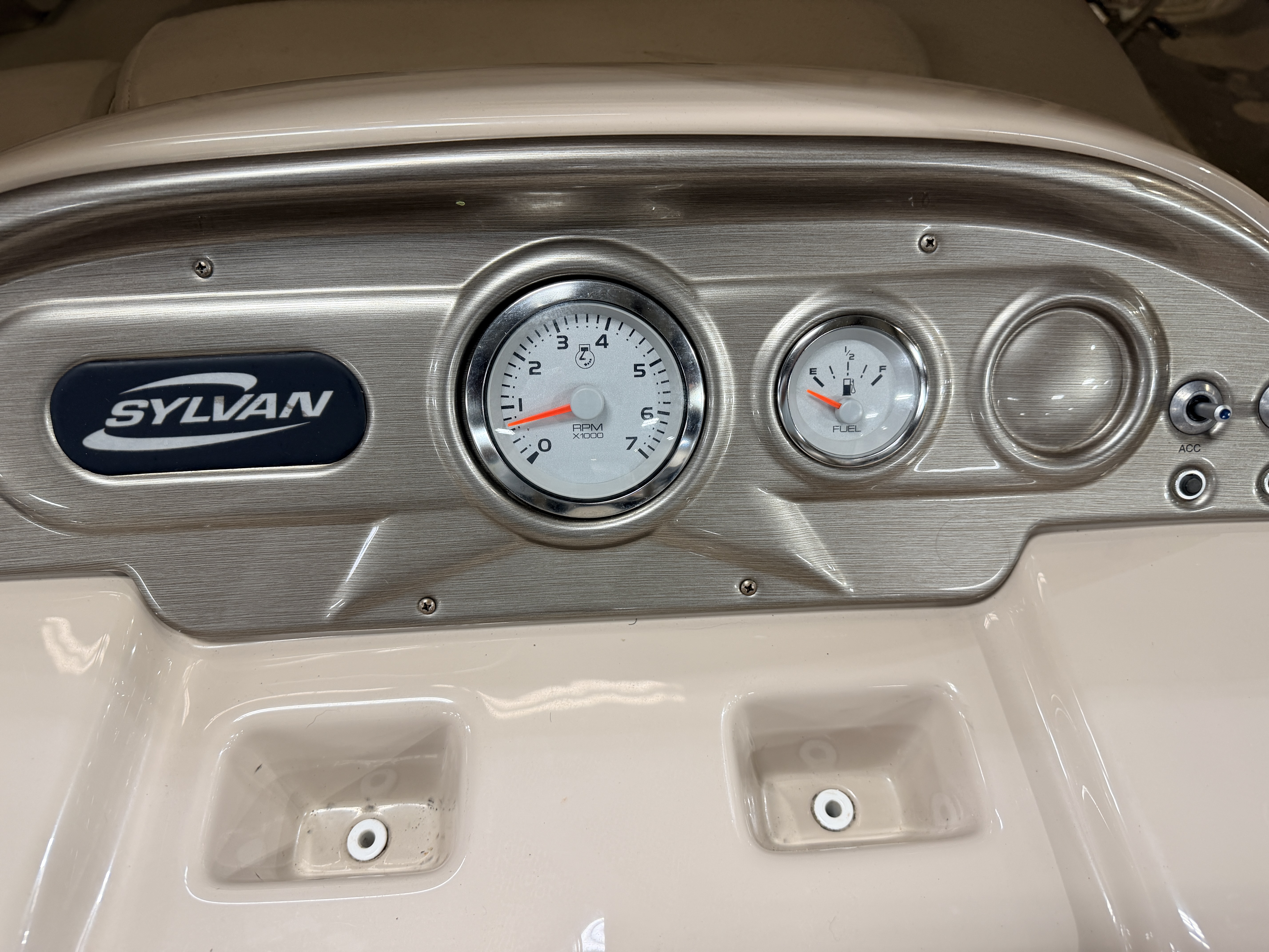2015 Sylvan Mirage 820 RE Pontoon & 90HP Mercury Fourstroke EFI. Interior seating includes 2 wrap around bow couches, L-shaped couch, Captain's Chair, and Sun Deck. Features include Bimini top, table with 2 mounting points, Fiberglass helm with Tachometer and Fuel gauges, Millenia PRV19 Bluetooth Stereo, Courtesy Light, Watertight Storage Pod, Swim Ladder with Platform. Additional features include Privacy/Changing Station, Vinyl Flooring, Mooring Cover, and LED Docking Lights.