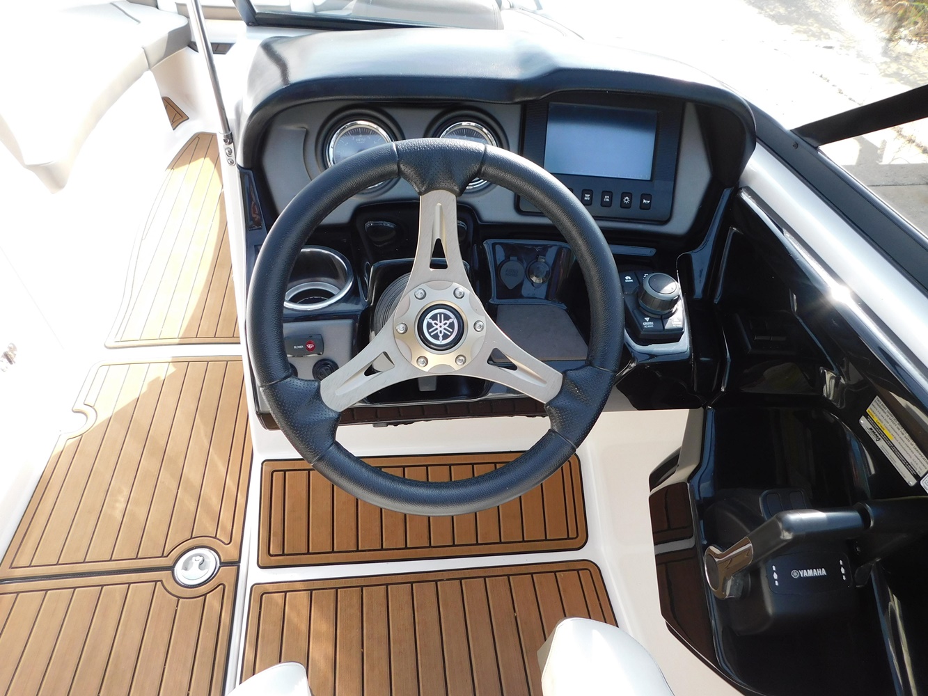 Freshwater / Great Lakes boat since new this vessel features Twin 1.8-litre Yamaha High-Output Engine's w/Jet-Drive with. Notable features include but are not limited to the following: SeaDek Flooring Throughout, Collapsible Wake Board Tower, Power Trim Tabs, Thrust Vectors, Lateral Thruster, Cockpit Table w/Sun-Pad Filler-Cushion, Premium Sound System, Removable Deck Carpeting, Swim Deck w/Boarding-Ladder, and much more.