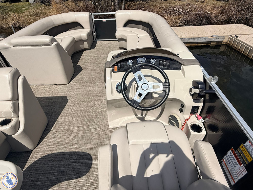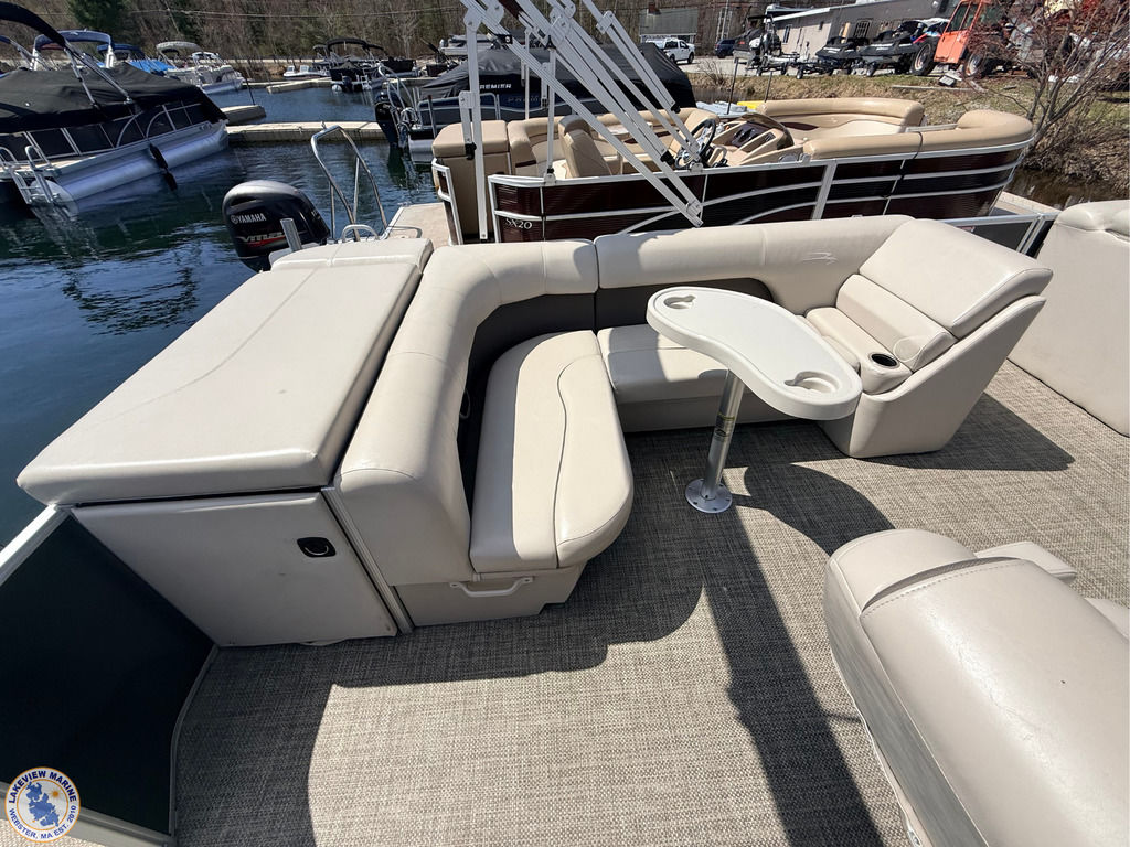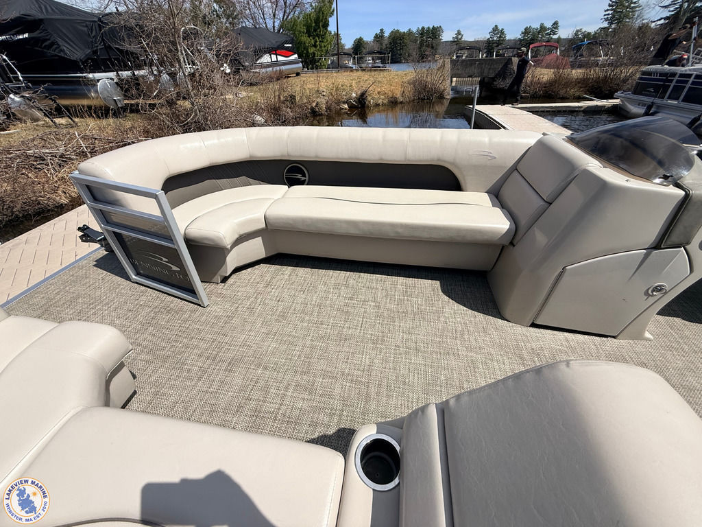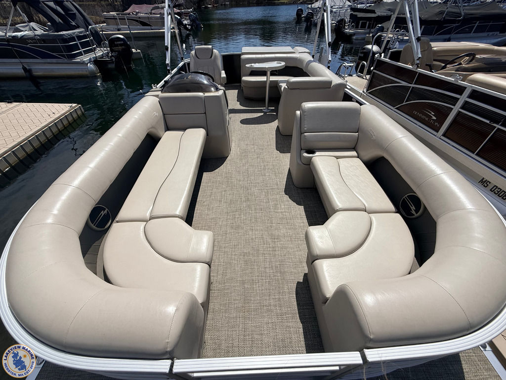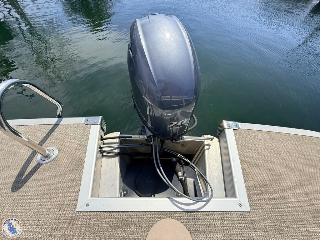This 21 S Series Bennington pontoon is powered by the reliable Yamaha 70hp outboard, offering a smooth and enjoyable ride on the water. Features include sandstone interior vinyl, an extended aft deck, stainless steel docking lights, bow pop-up cleats and a Minn Kota Deckhand anchor system! Boat has individual seat covers only.