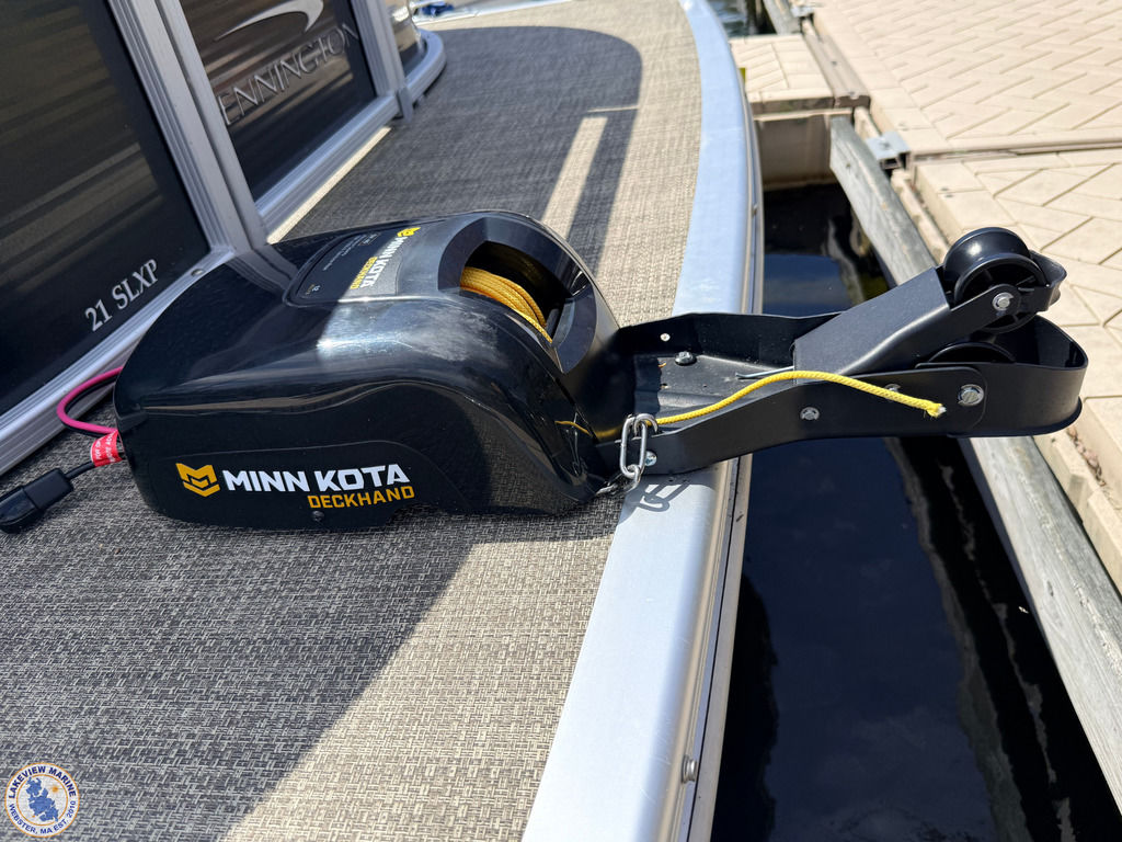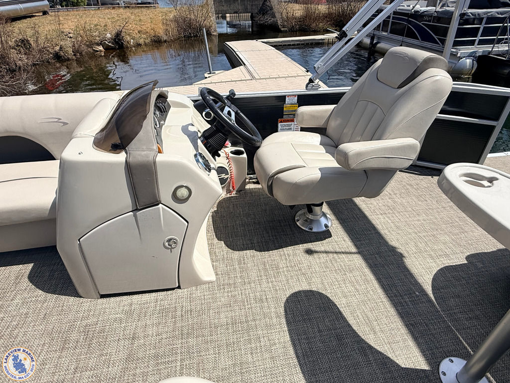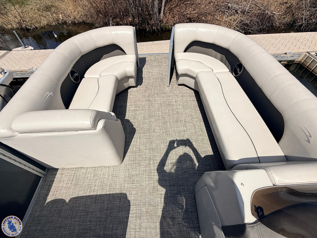 This 21 S Series Bennington pontoon is powered by the reliable Yamaha 70hp outboard, offering a smooth and enjoyable ride on the water. Features include sandstone interior vinyl, an extended aft deck, stainless steel docking lights, bow pop-up cleats and a Minn Kota Deckhand anchor system! Boat has individual seat covers only.