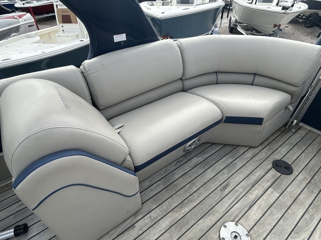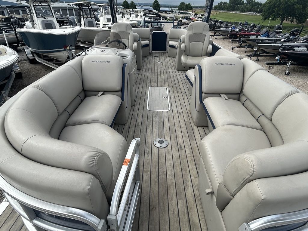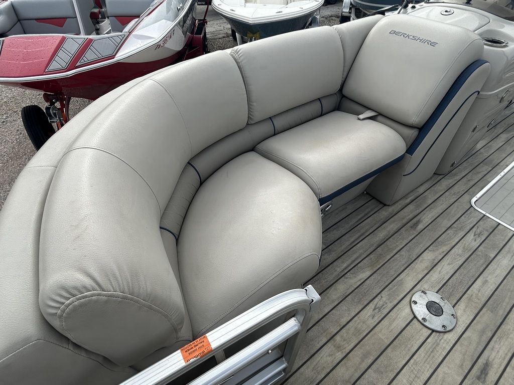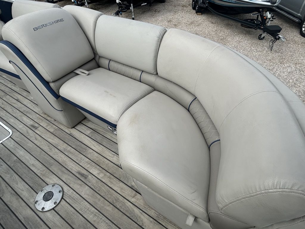 Plush, elegant, uncompromising; all words describing the Berkshire Ultra Series. Soft-touch vinyls wrap tear-drop bench seating with just the right amount of comfort for long summer cruises. Distinctive, flowing rail systems, striking color combinations and all the amenities one desires in a pontoon. This is the Berkshire style. Whether entertaining or just playing on the water; do it in style with your well-equipped Berkshire Ultra Series.