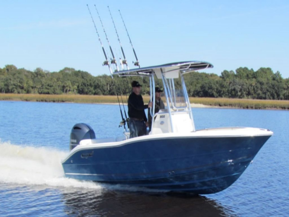 It features plenty of seating and spacious fore and aft casting decks as well as a center console large enough to house an optional porta potty.