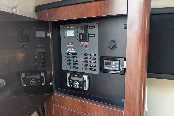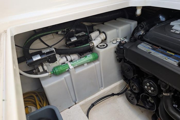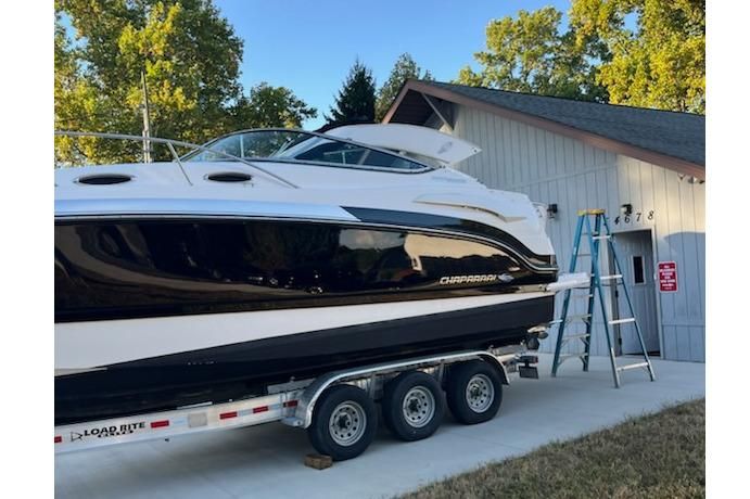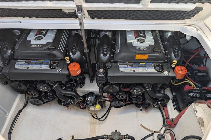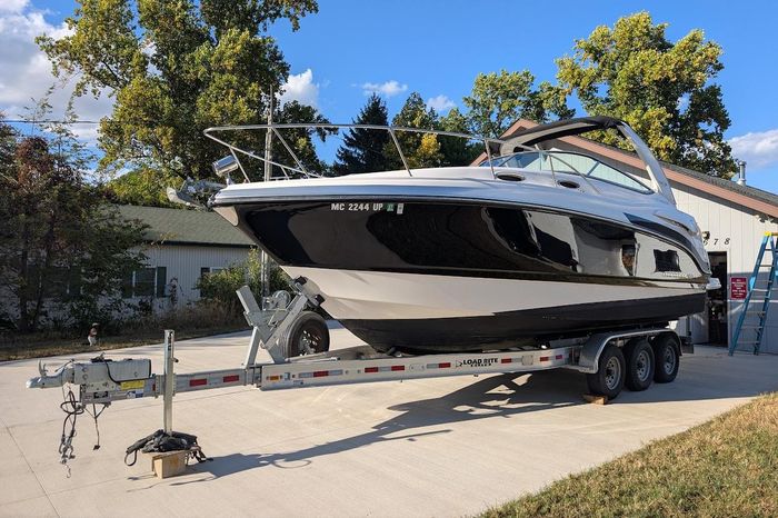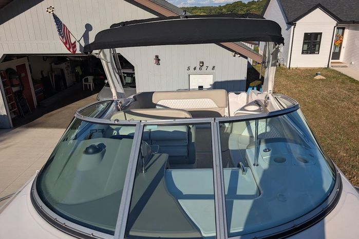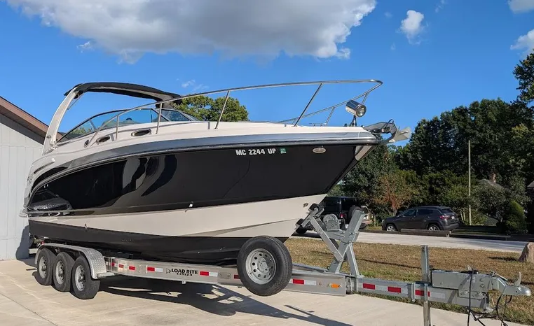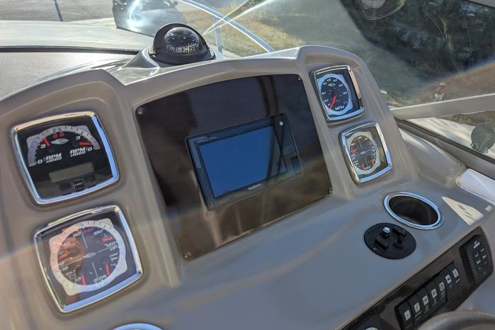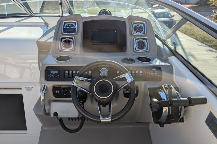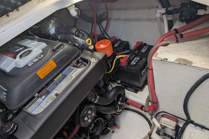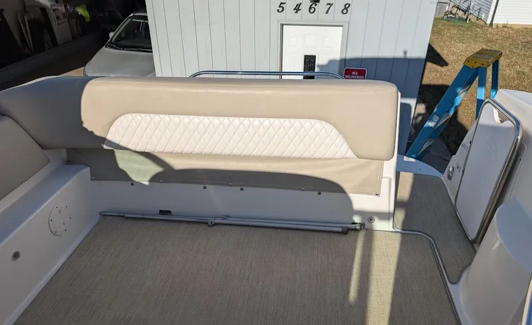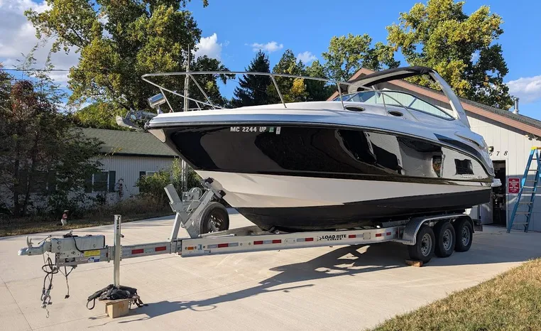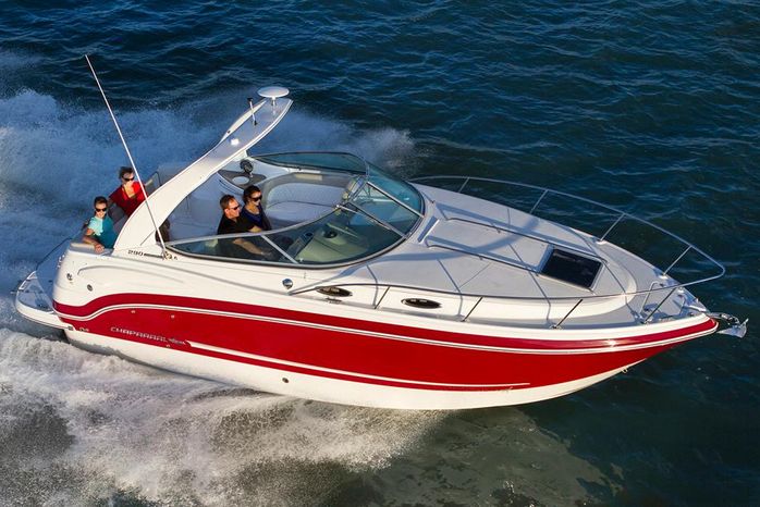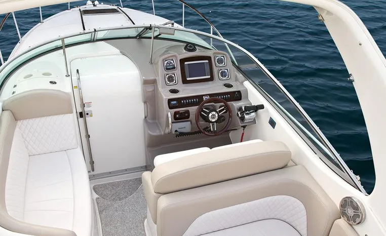 Most cruisers in this size range require you to wake up and disassemble the forward berth if you want to use the dinette for an early morning cup of coffee. Not so on this Chaparral 290 thanks to a huge berth and a separate dinette.The cabin sleeps six comfortably which is remarkable given the boat's under-30-foot centerline length. An oversized square deck hatch with a retractable shade and screen, along with four eye-level screened ports stir an airy, spacious feeling. two cedar lined clothes closets, flat screen entertainment packages and lined privacy drapes are all standard equipment extras that make the 290 one of the roomiest cruisers you'll find under 30-feet.