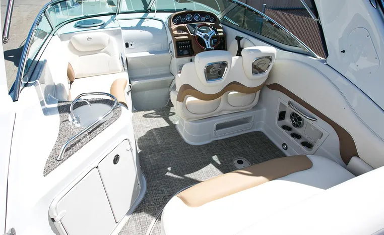 Crownline’s 264 CR delivers a top-of-the-line experience that’ll take you from a day of adventure to a night of comfort. The hull of this Crownline beauty was artfully designed to be both efficient and sleek with a powerful profile that’ll turn heads. Below deck the 264 CR has a stylish, elegant design with a long list of features which continue the distinctly Crownline experience. With a cabin that offers plenty of mobility and headroom, this cruiser is built to entertain in luxurious comfort. The fully equipped galley, perfectly designed dinette and fully appointed head provide the maximum in cabin comfort. Start your Crownline experience today and begin building memories that last a lifetime.