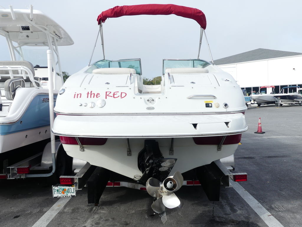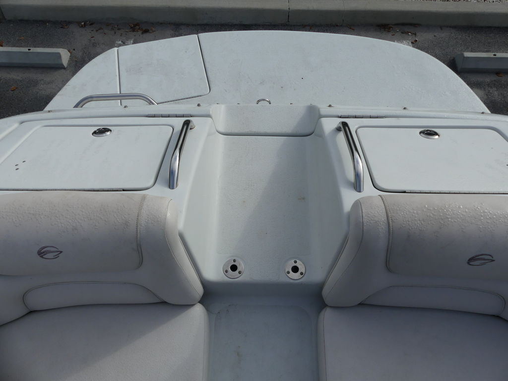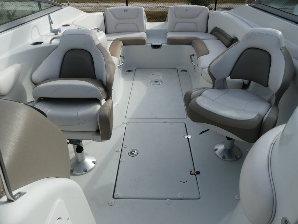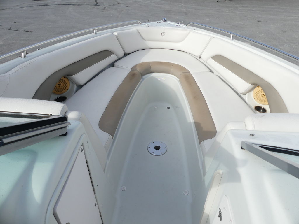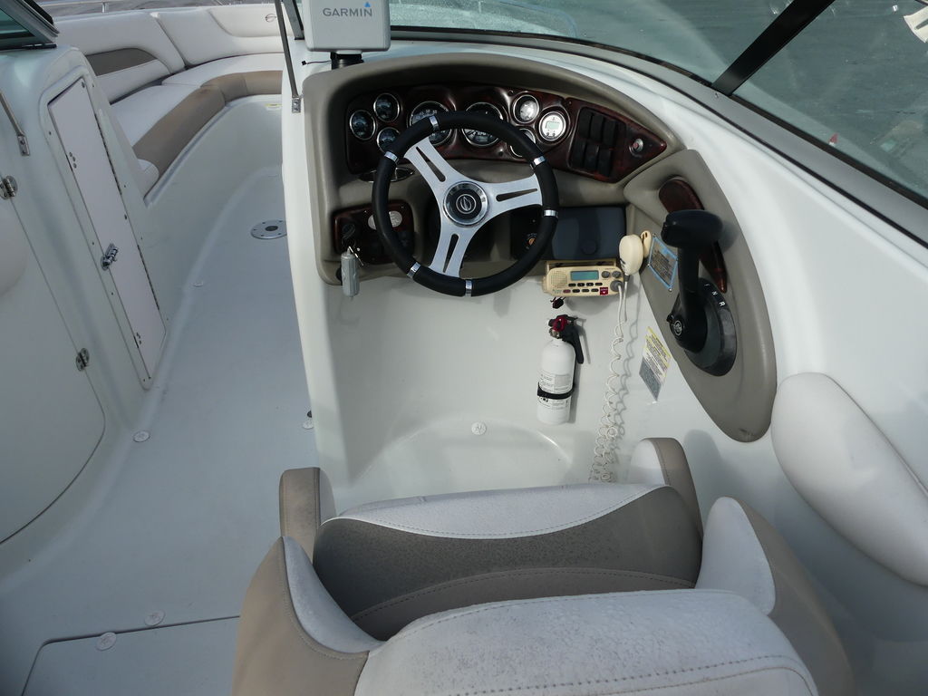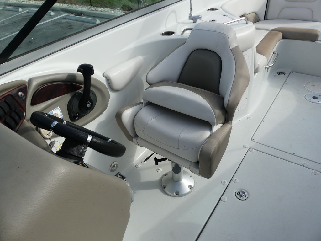 Here's everything boat enthusiasts could ask for from its cockpit wetbar and portable cockpit table to its twin transom storage compartments and everything in between. That includes a Bluetooth ready marine stereo, stainless steel grab handles, cup holders and pull-up cleats.