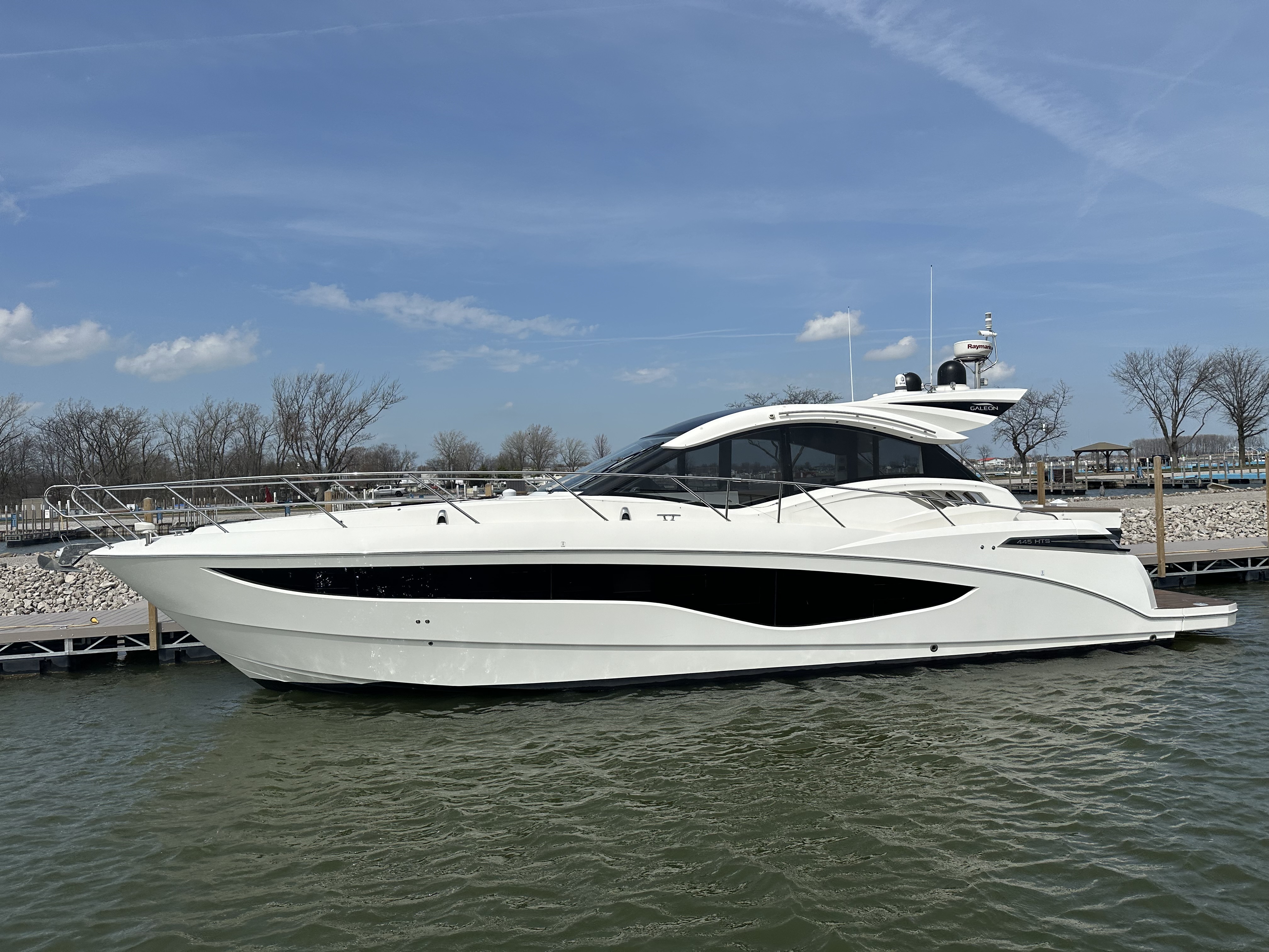 Introducing a 2016 Galeon 445HTS that will not disappoint! This 445 has been freshwater kept and inside heat stored at MarineMax/SkipperBud's since 2016. She is a two-owner vessel and has been very well maintained since new. Galeon is known for it's innovation, performance, and build quality, and the 445 embodies each of those characteristics. The vessel offers an agile and smooth ride thanks to the fully fiber glassed keel, excellent soundproofing, and the Volvo D6 IPS600 power. The twin IPS 600s (681hrs) allow the boat to cruise at 25kts and top out at 30kts. Some features worth mentioning include- .Submersible swim platform (can accommodate a small tender) .Electronic shade for the cockpit .A bulkhead that fully opens, allowing the cockpit seating to tie in with the salon seating .Sunroof .Drop down port/starboard windows .Summer kitchen behind the helm .Fischer Panda 8.0kw generator .Raymarine electronics .Full beam master .Sleeping accommodations for 8 The vessel is currently located in heated storage at SkipperBud's Marina del Isle (Ohio). Trades considered.