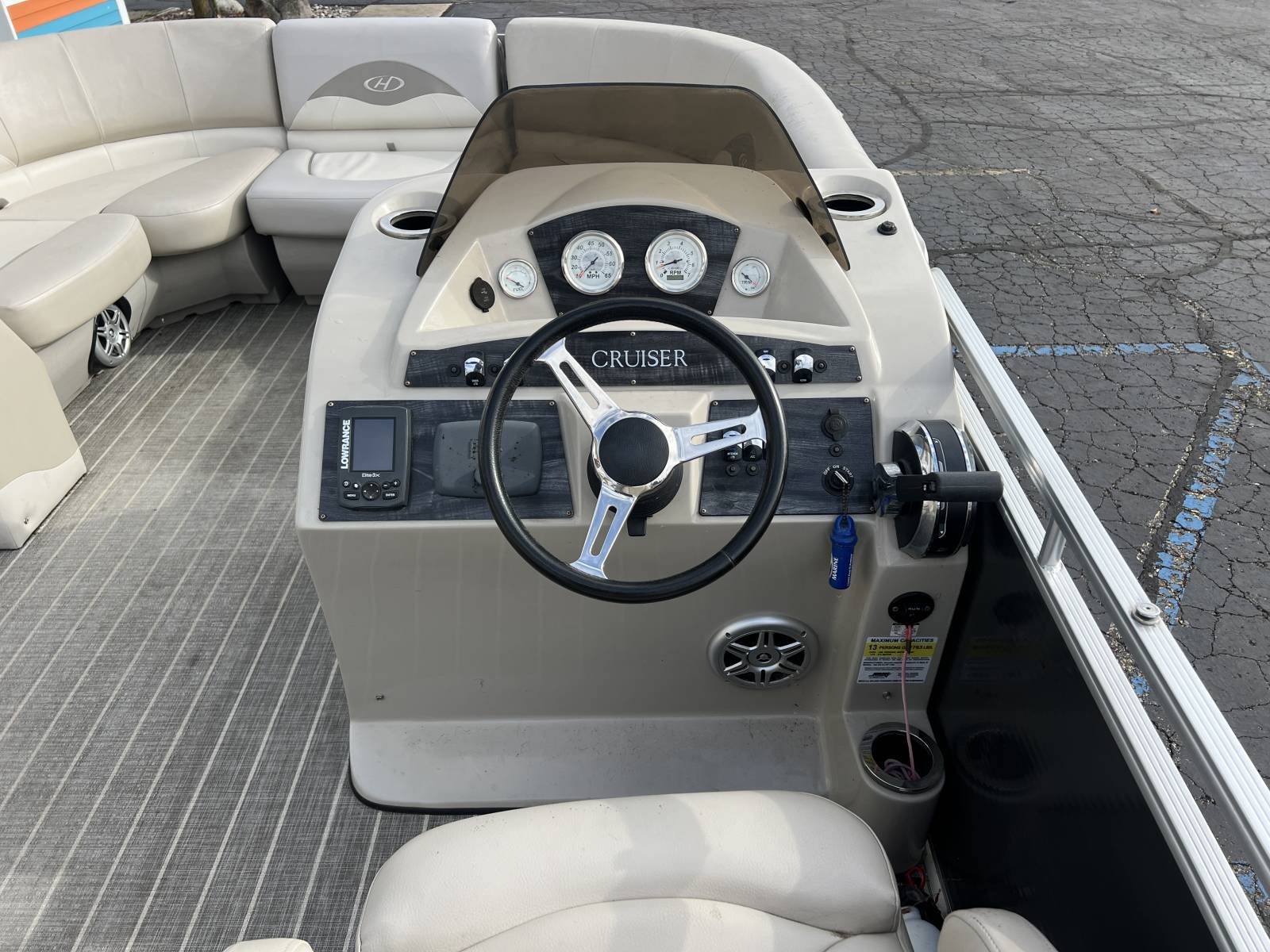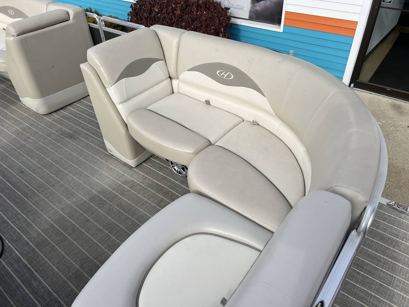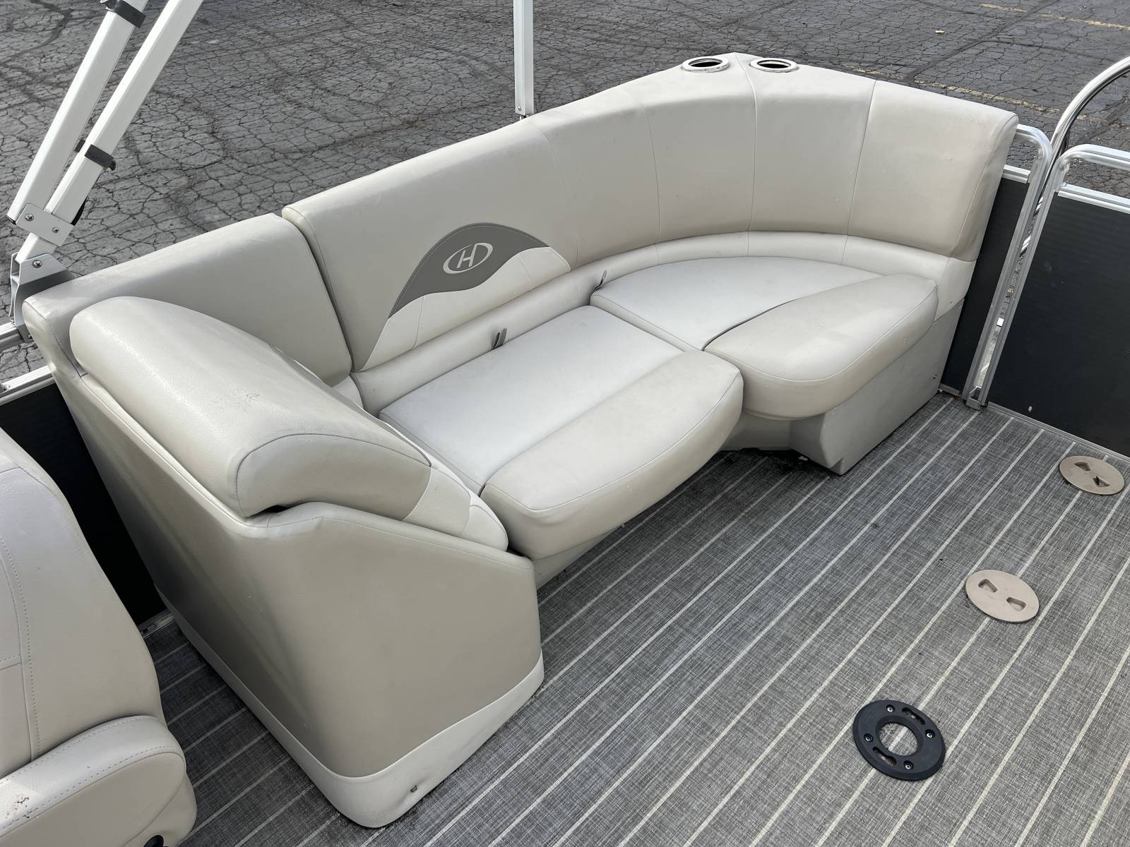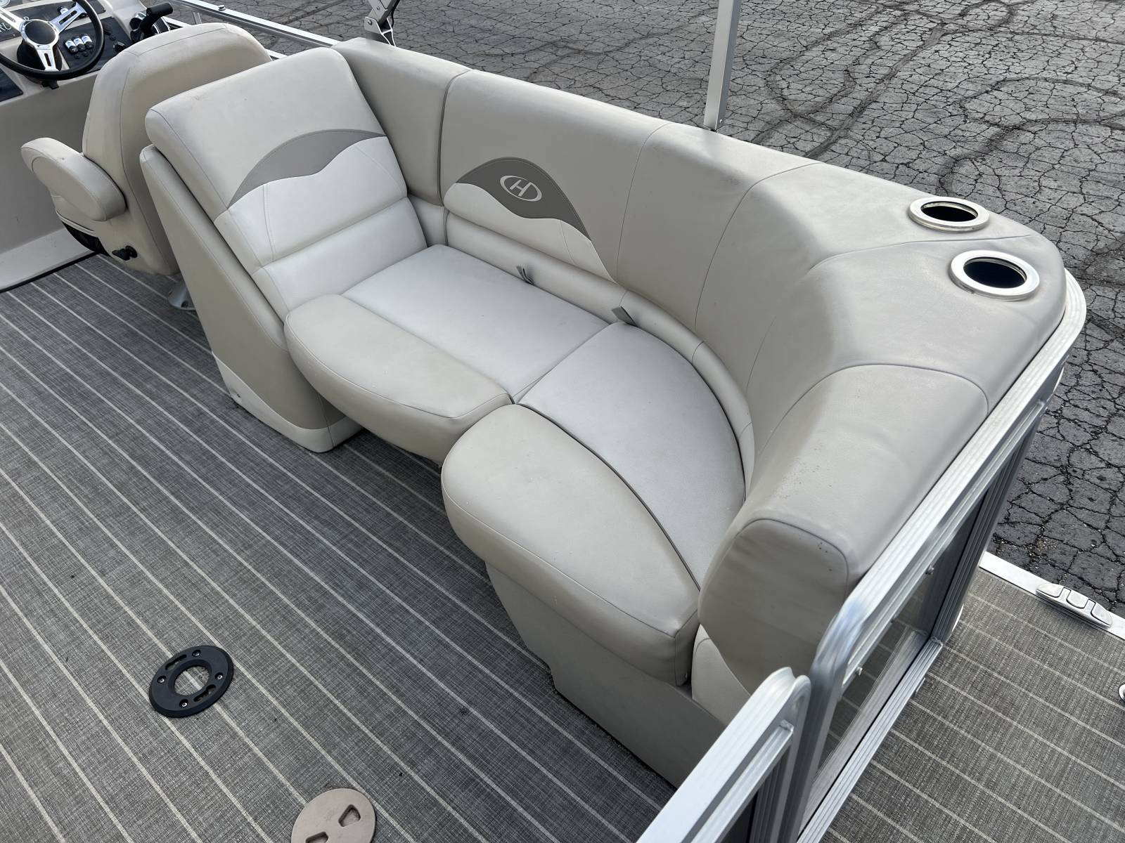 Hard to find pre-owned tritoon up for sale and you don't have to spend 75k!Boat will be acid washed and detailed before delivery in the spring. HIGHLIGHTS:Woven Teak Seagrass FlooringTritoonInterior LED BLUE LightingHydraulic Sea Star SteeringMercury 115hp EFI Four Stroke (357hrs)Center Walkthrough FlooringSS Tow Bar, Pop Up Cleats and Boarding LadderContact the Gull Lake Marine sales team today for more information and all what's included in a boat purchase.