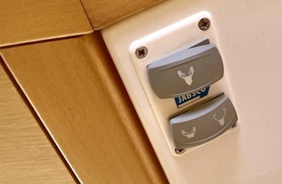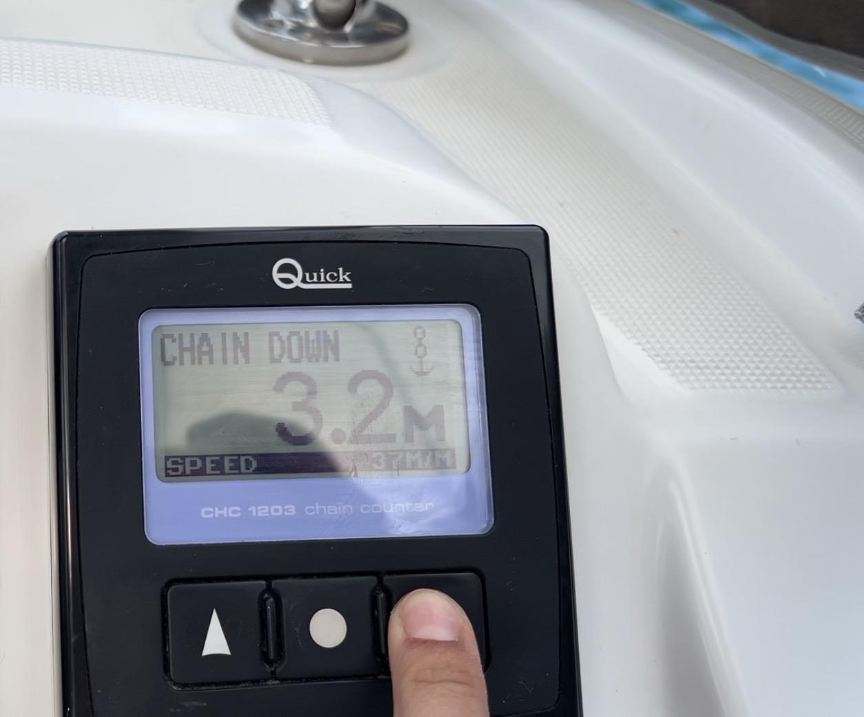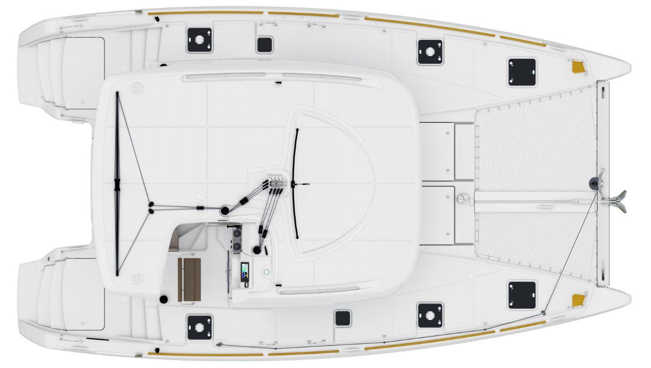 Deck water outlet, anchor control foot buttons, and teak aluminum passerelle
