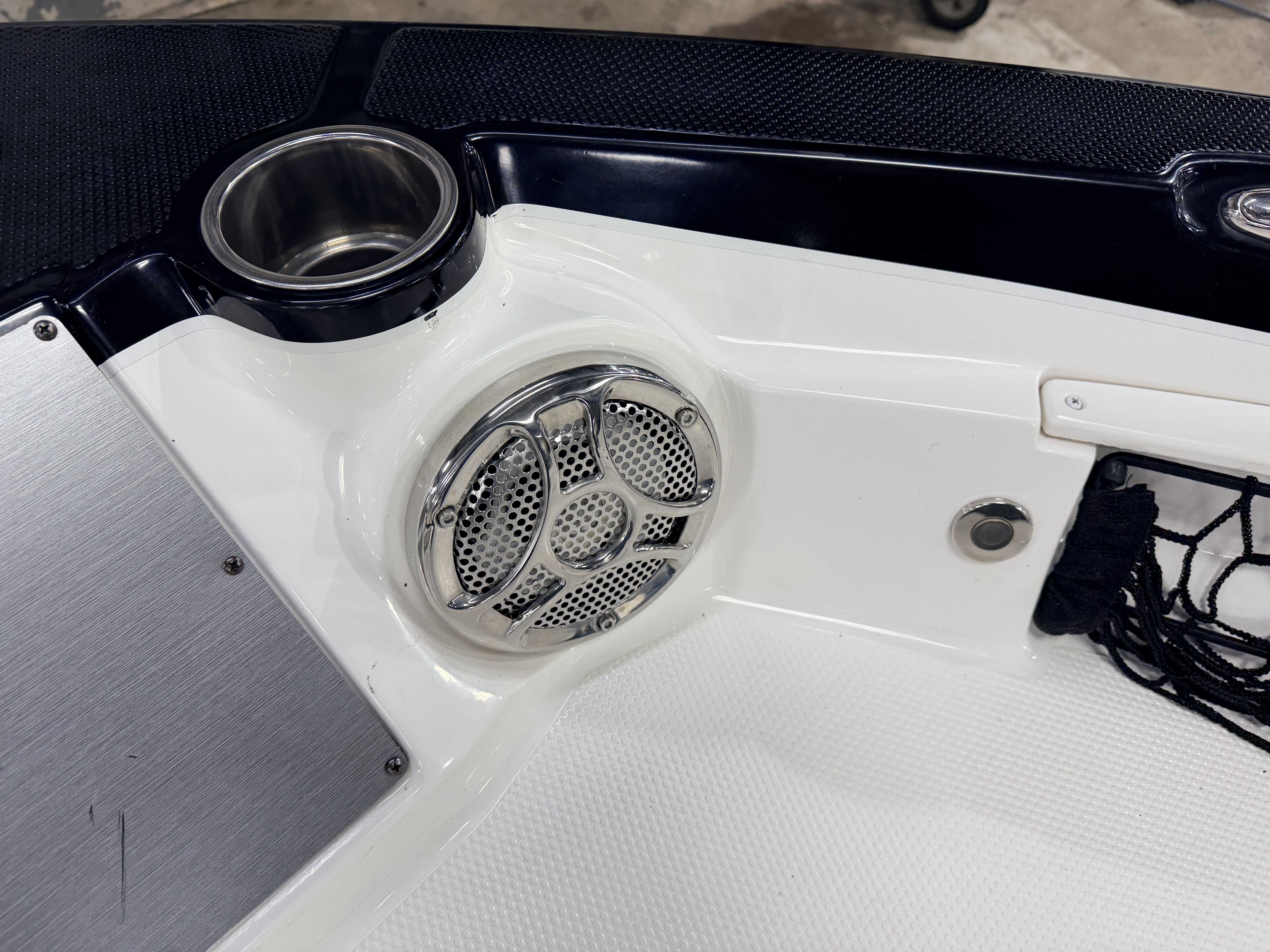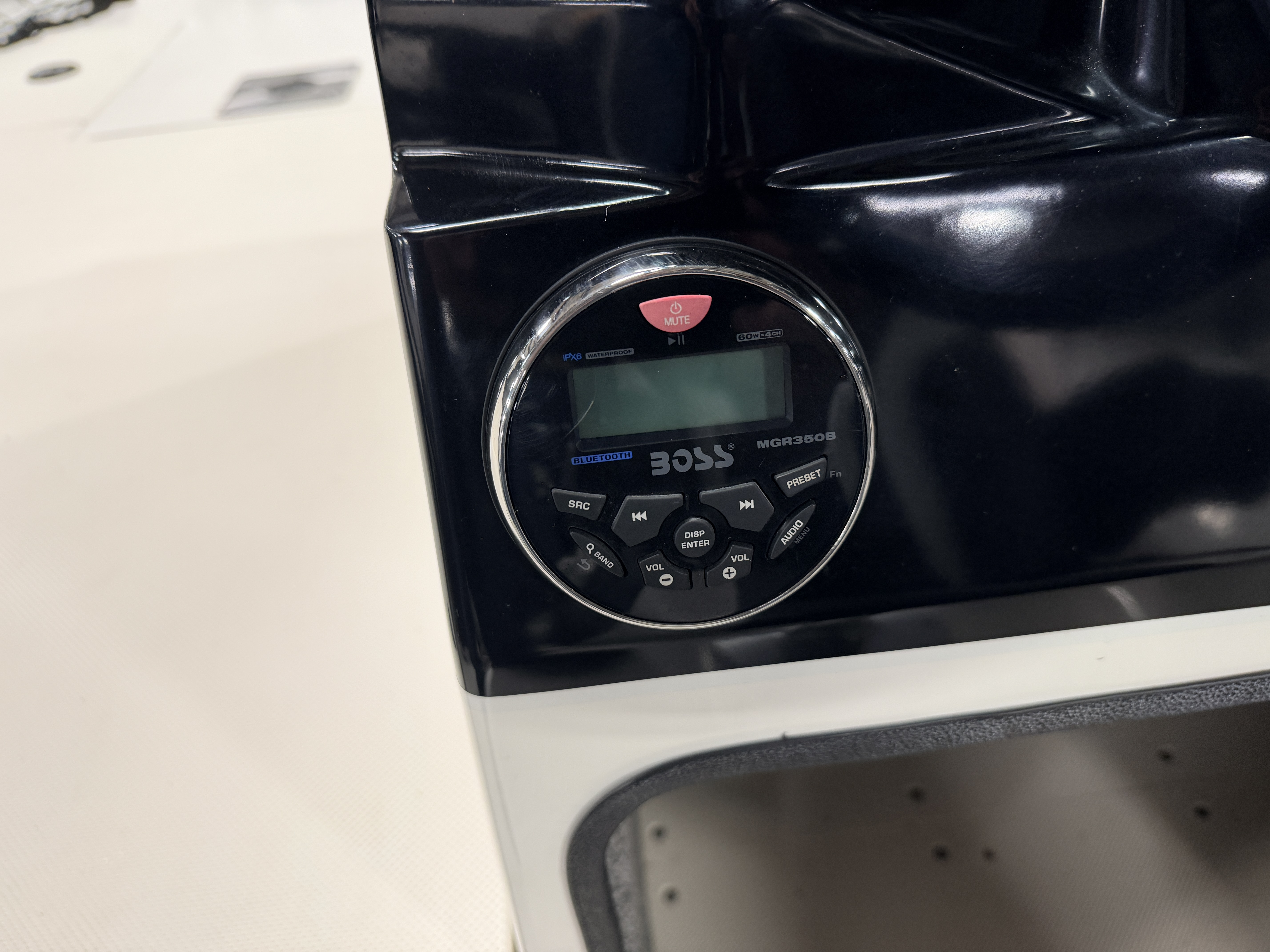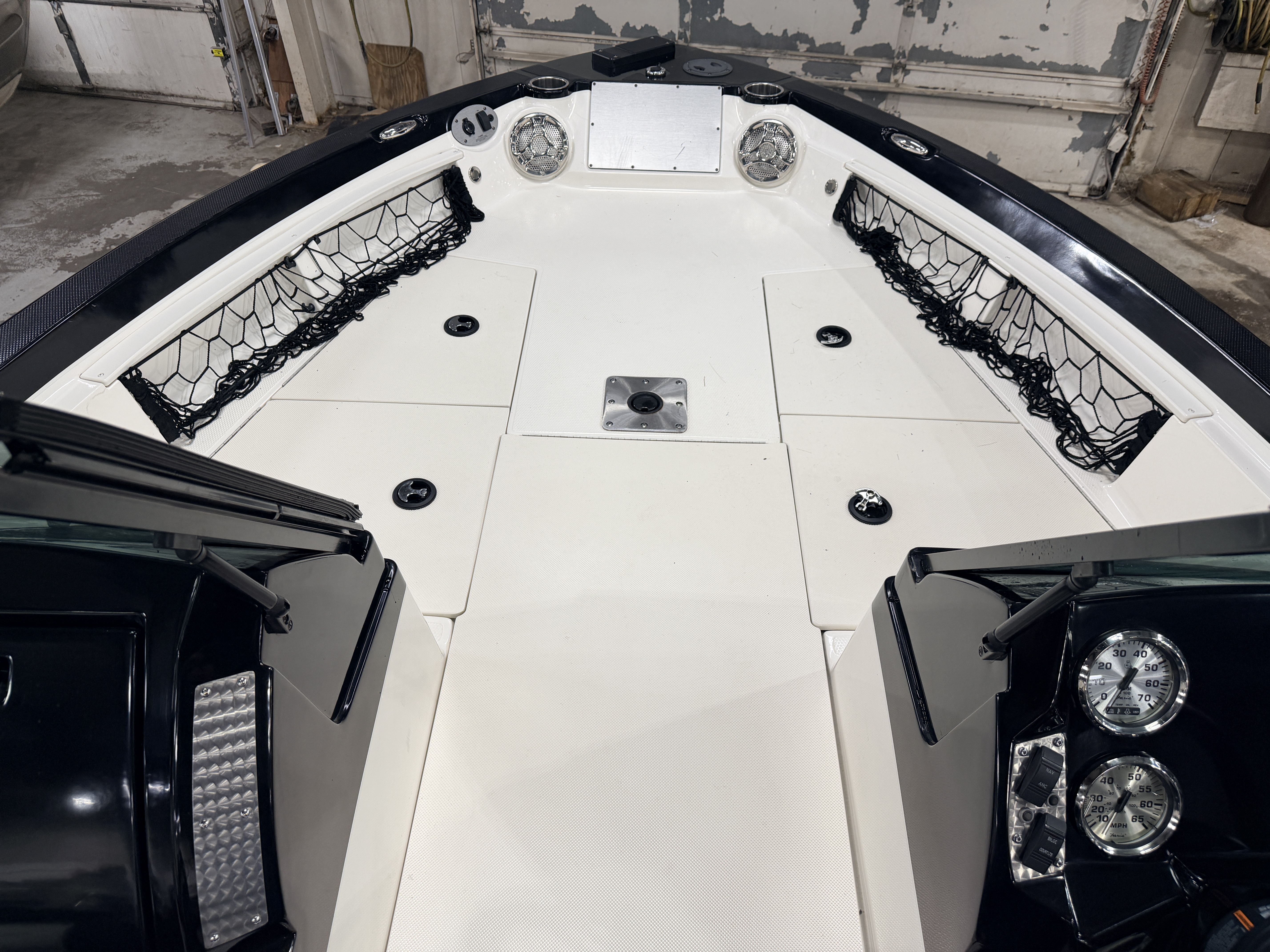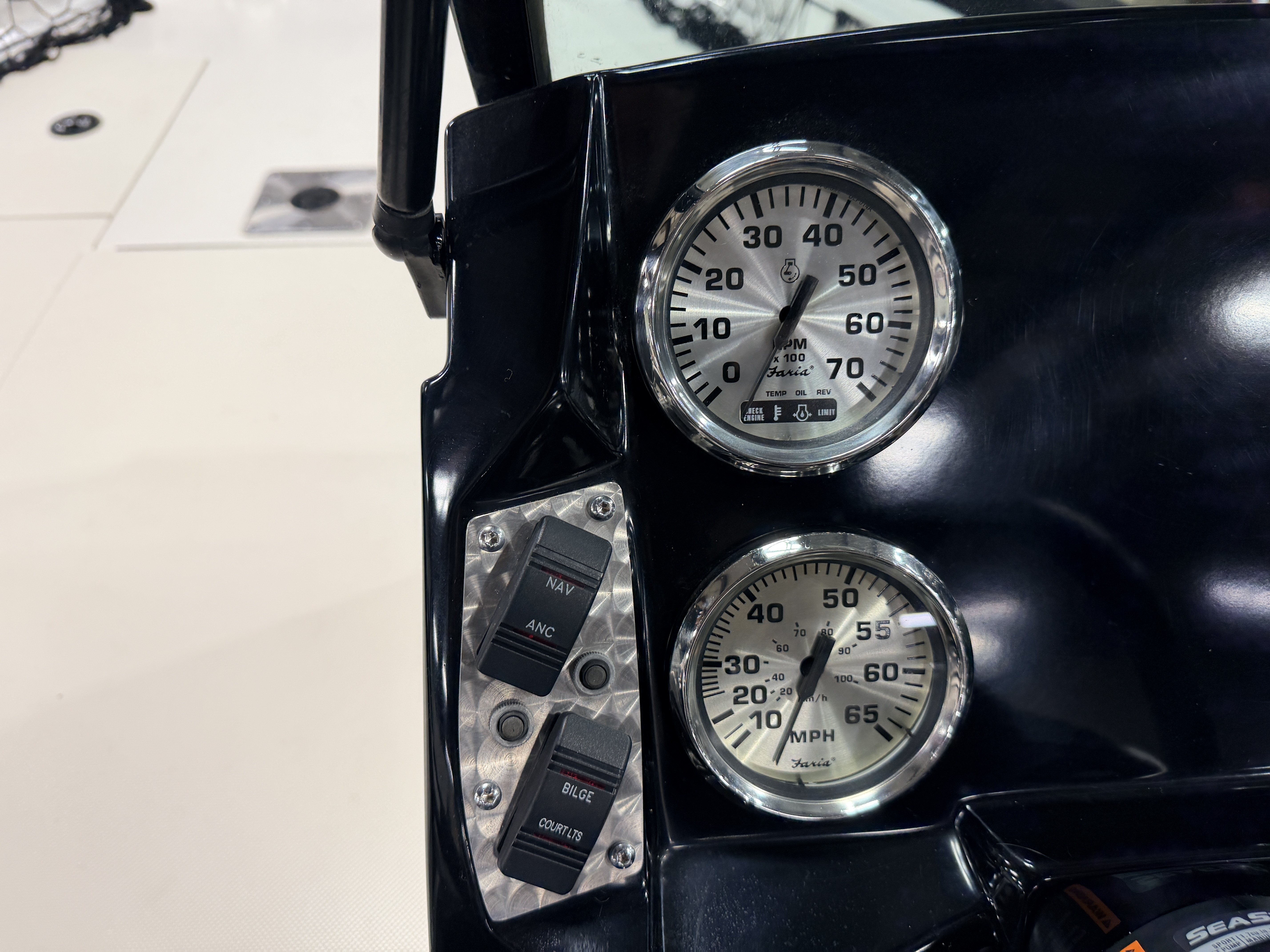 Speedometer, Tachometer, Fuel and Trim gauge. There is a Boss Bluetooth stereo