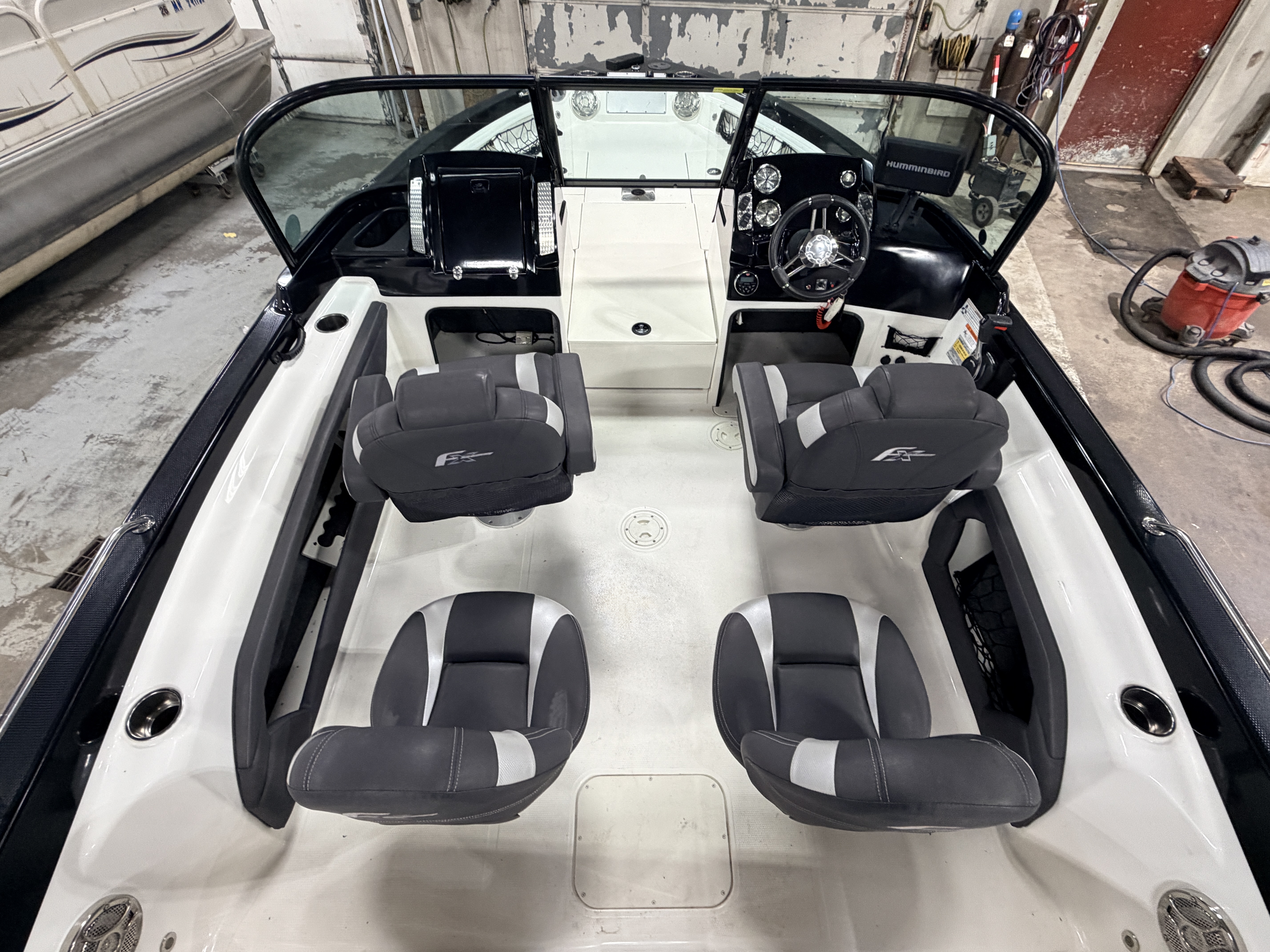 system. A Humminbird Helix 7 is mounted on the helm also. The passenger side