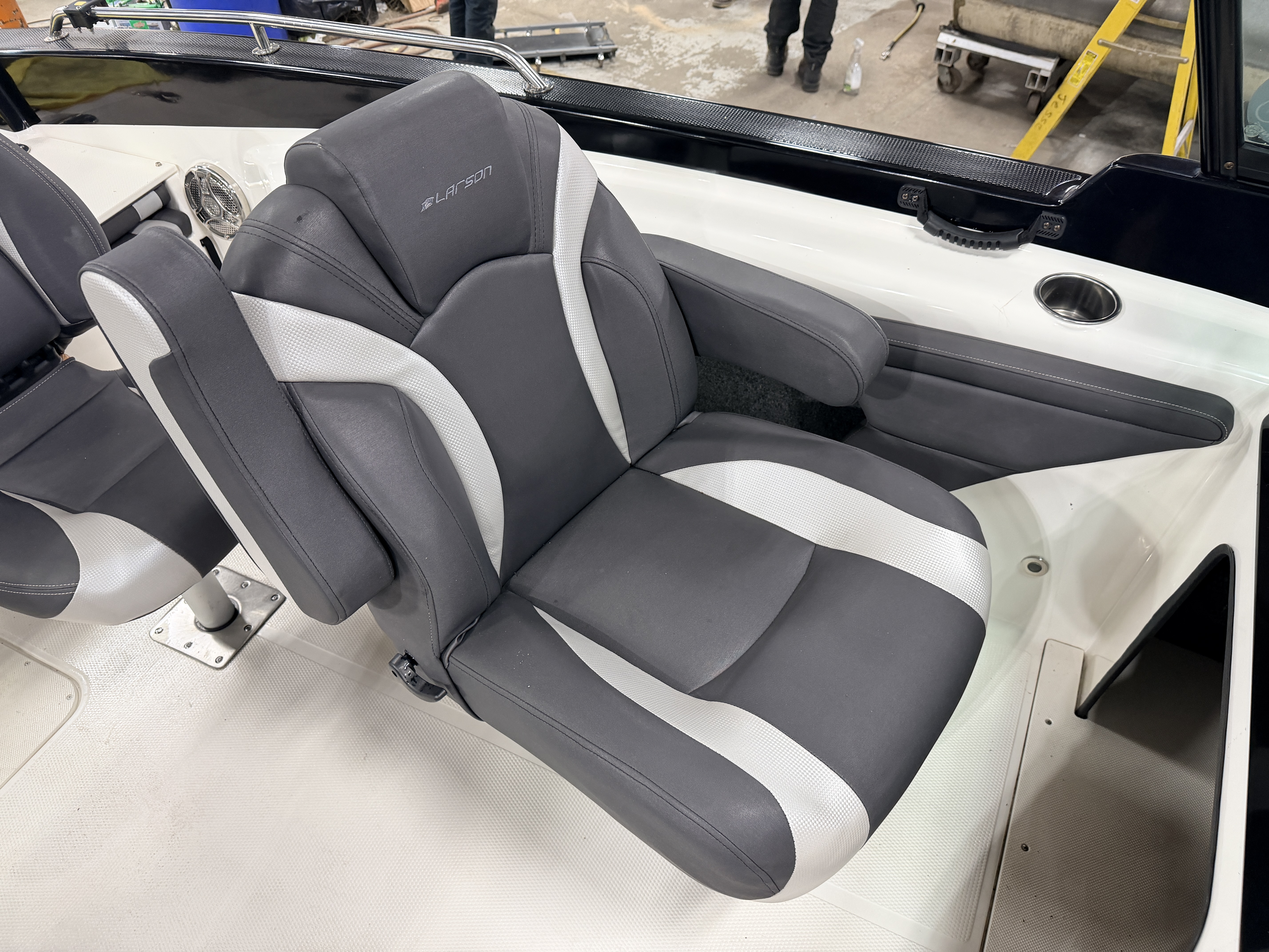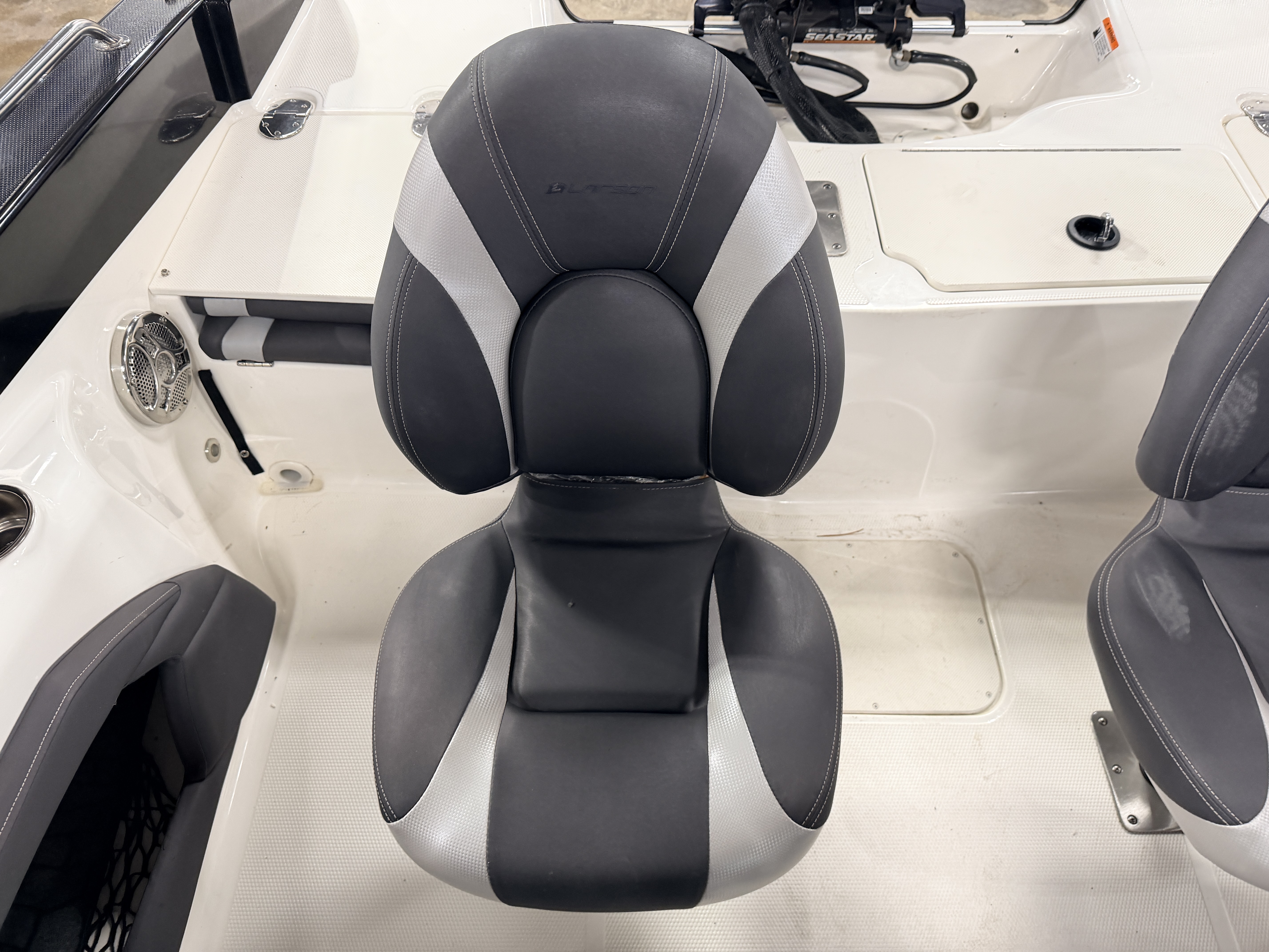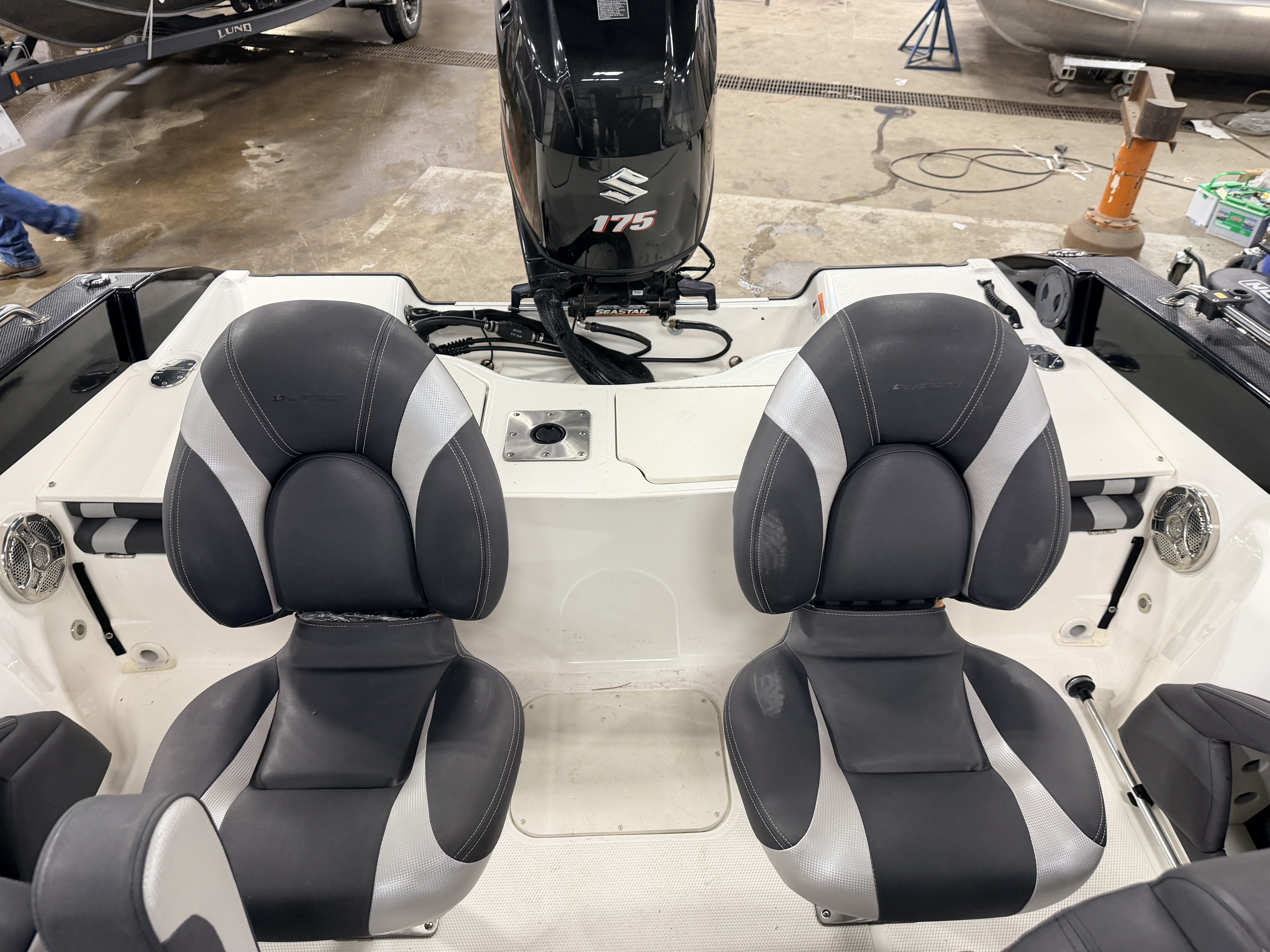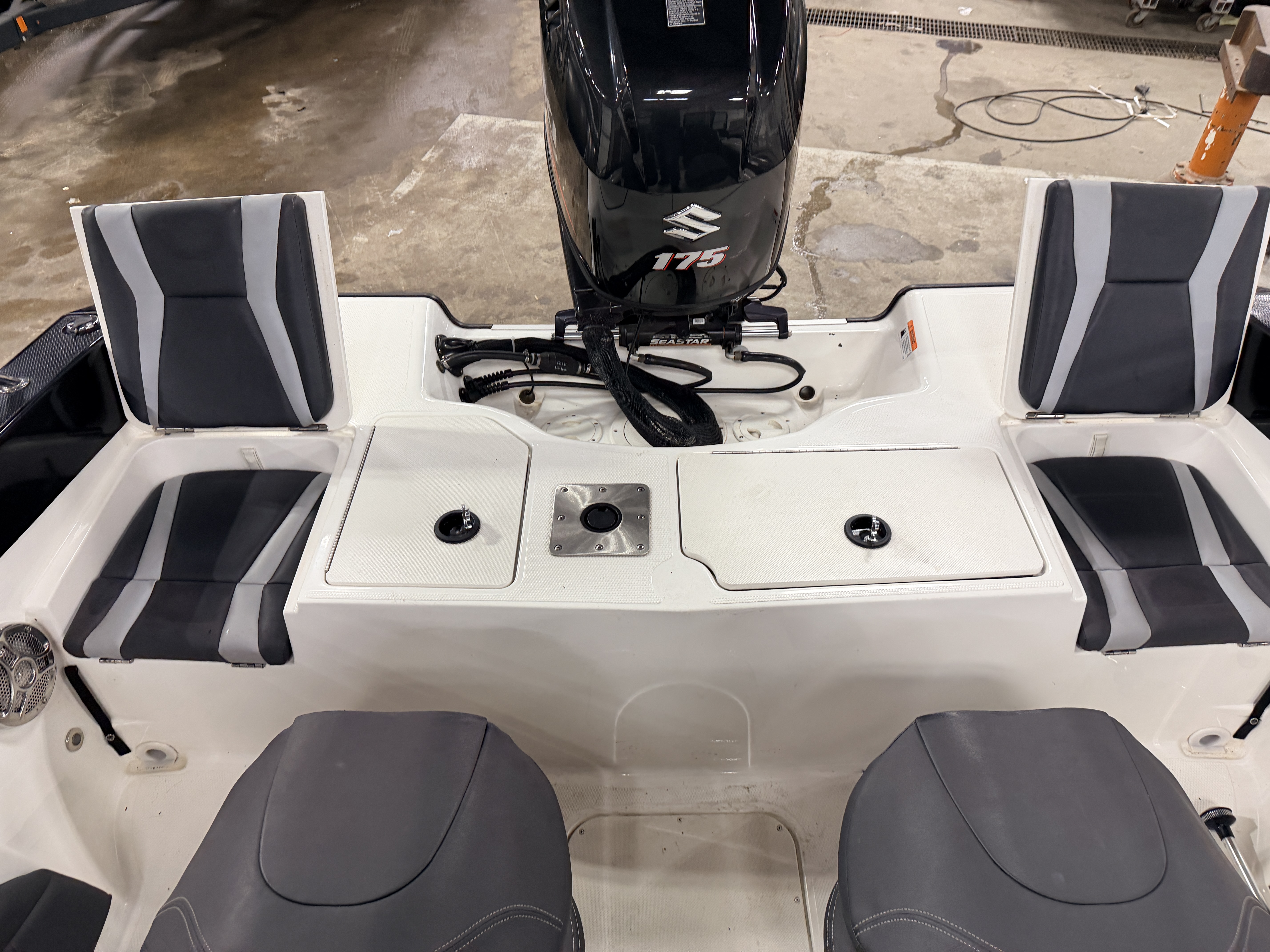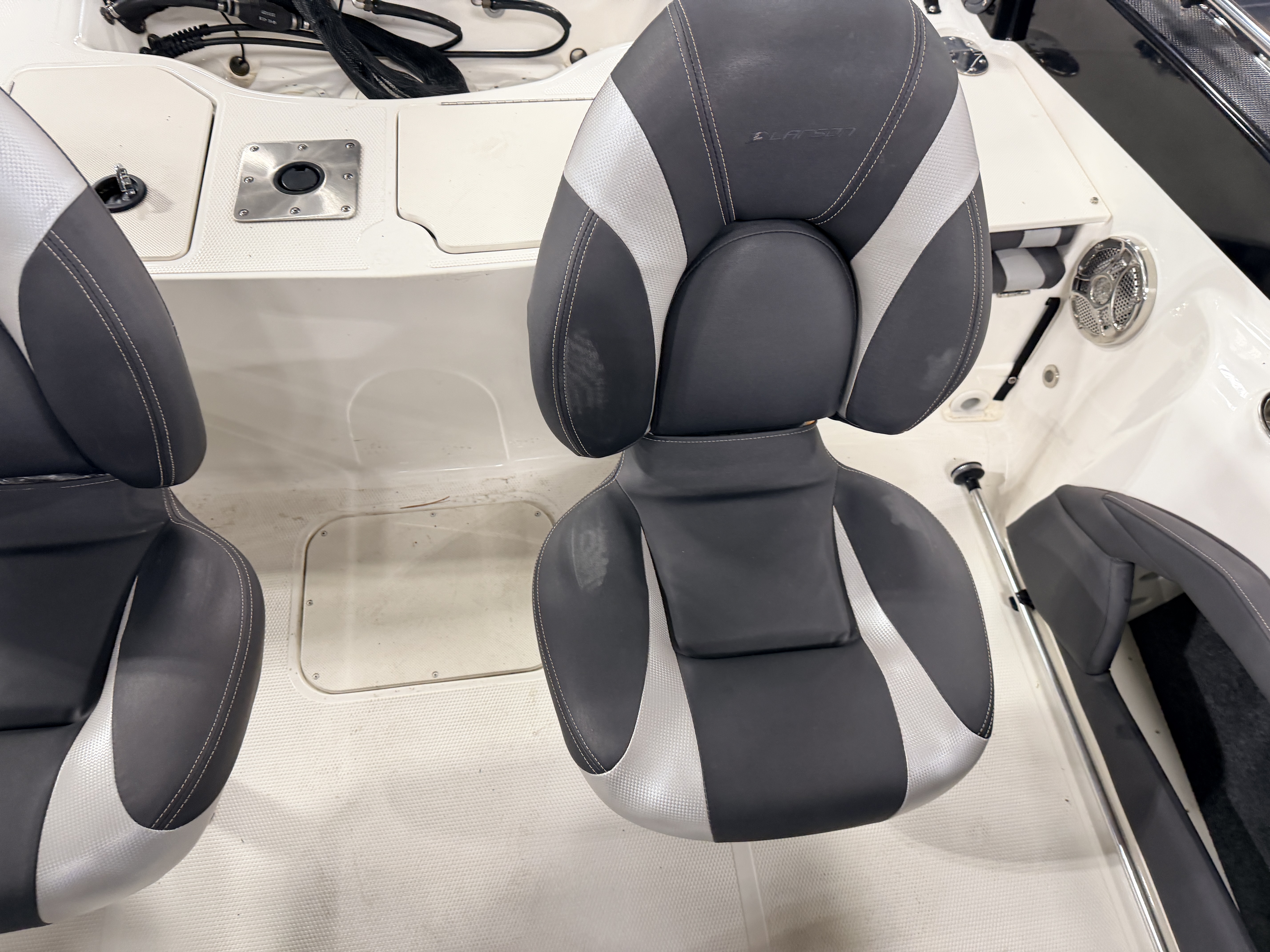 boat (gunnels). The secondary fishing seats are the centric fold down variety