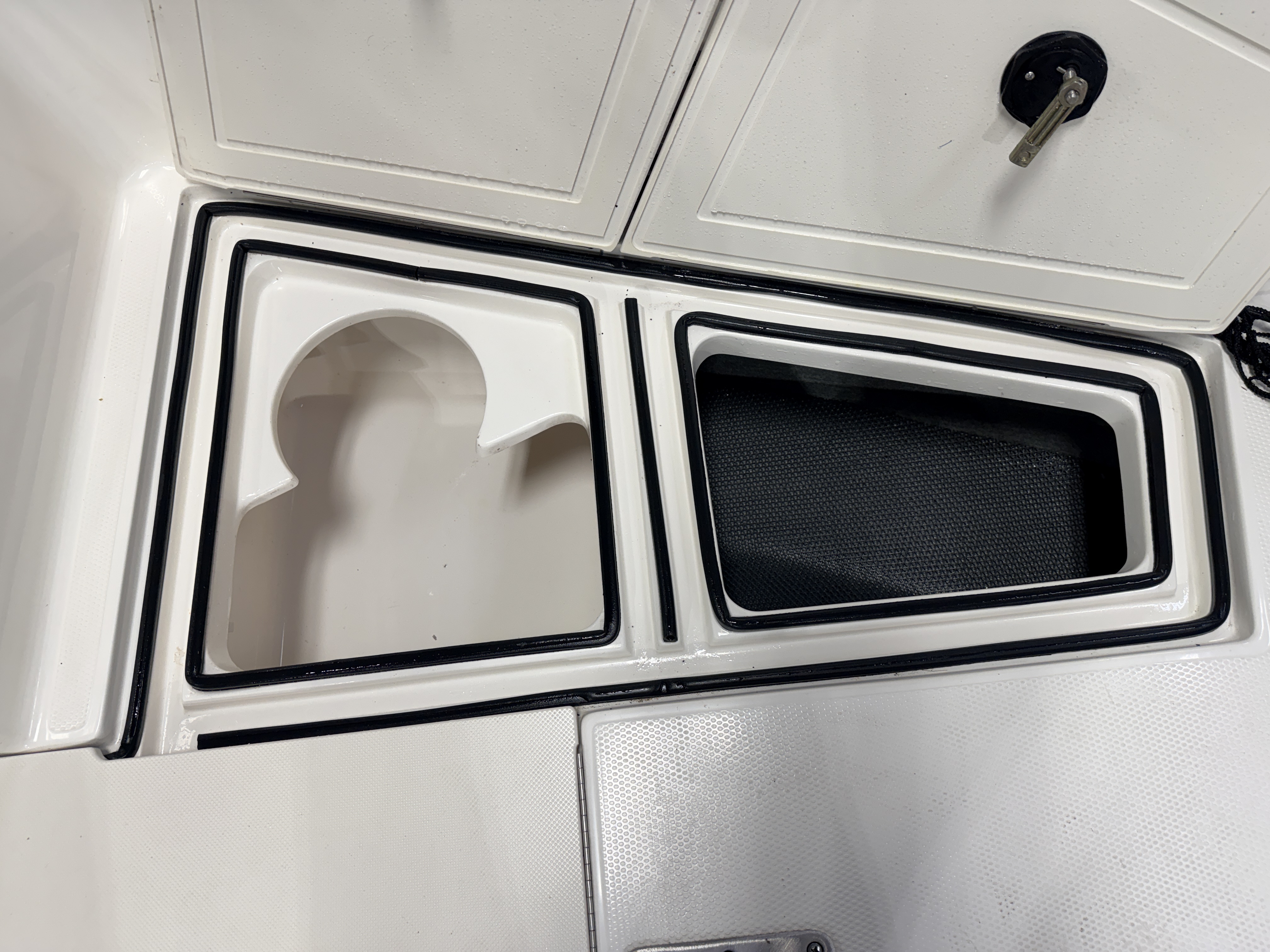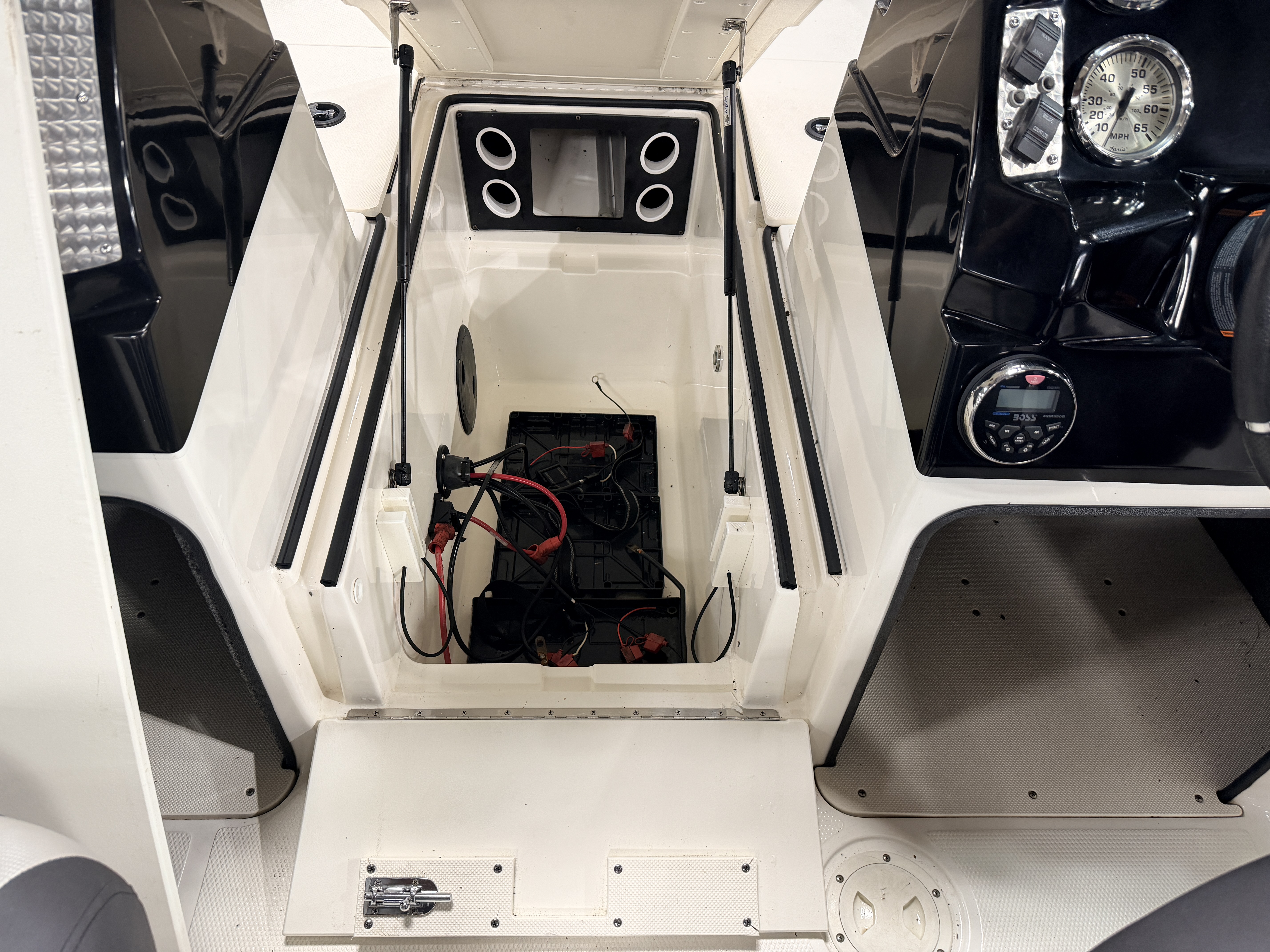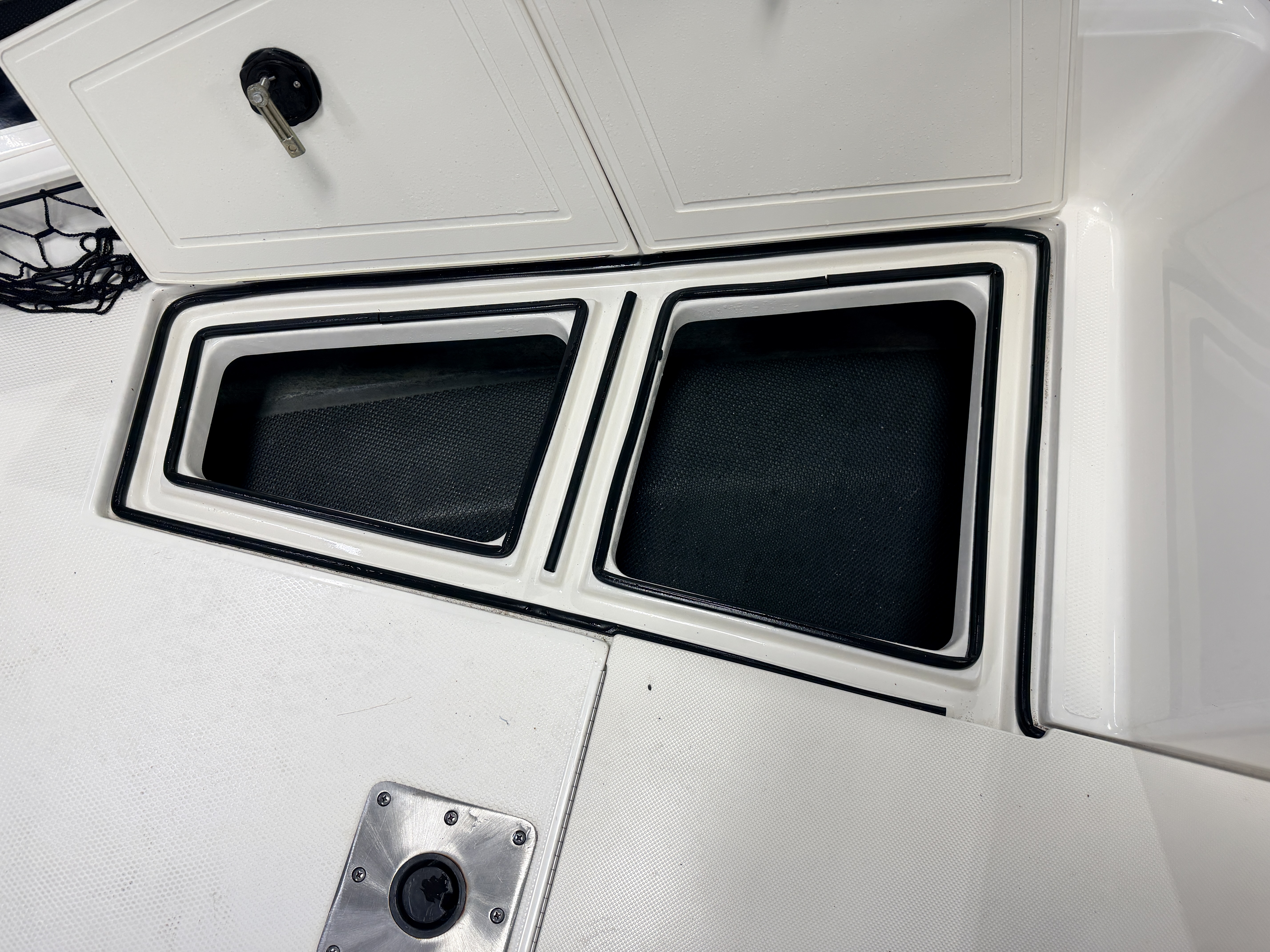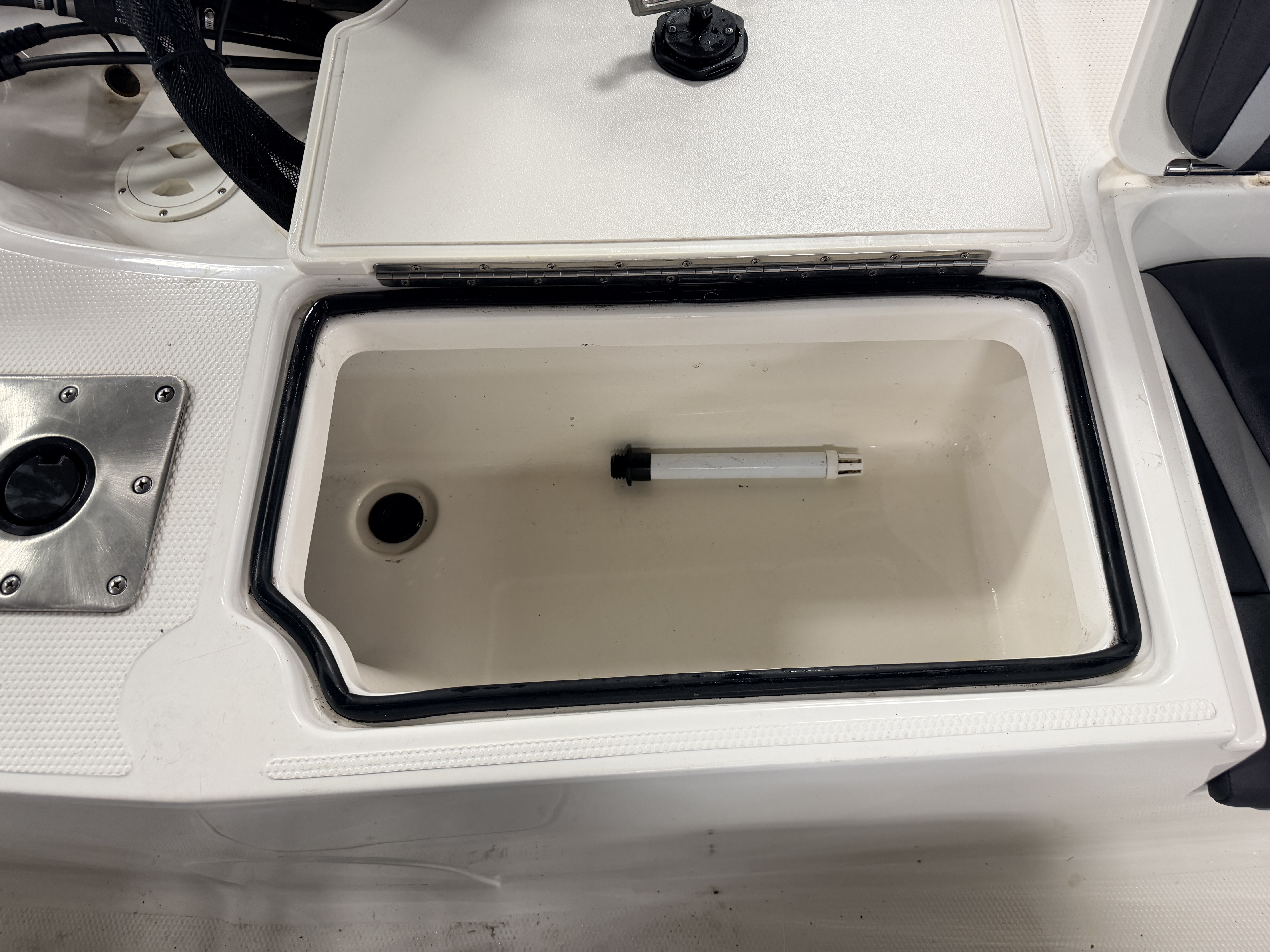 compartments underneath. There is also a large livewell compartment with 2