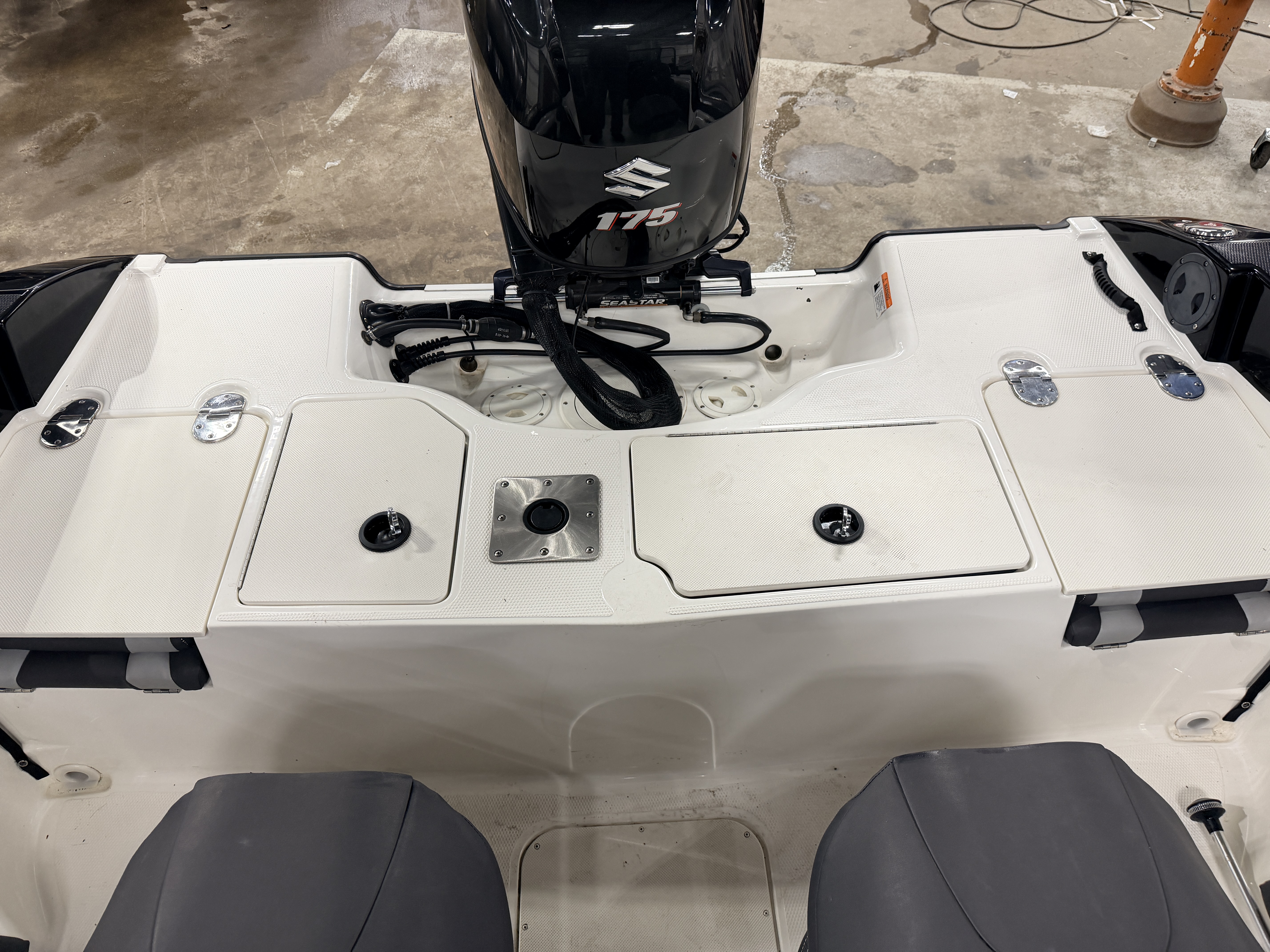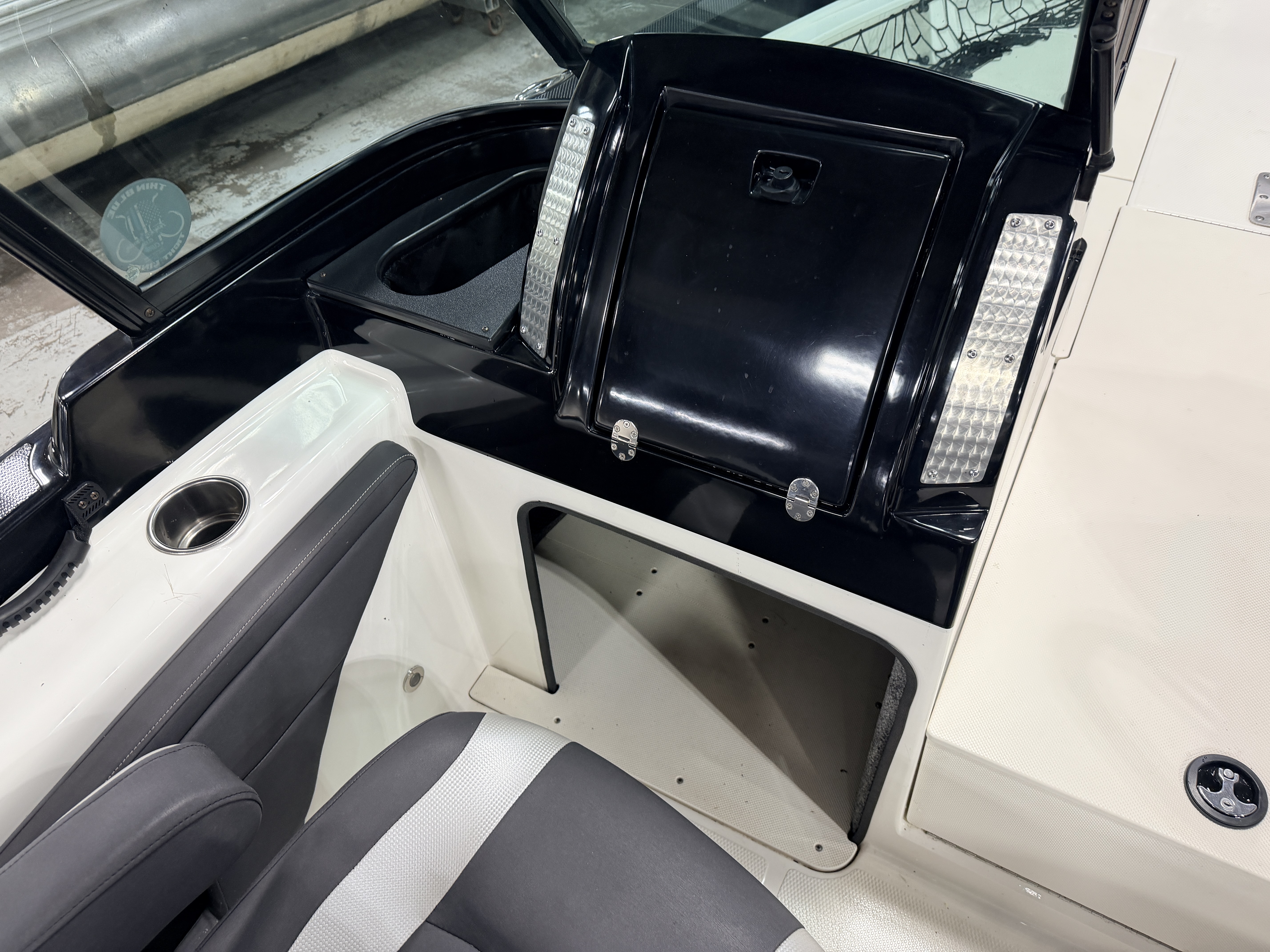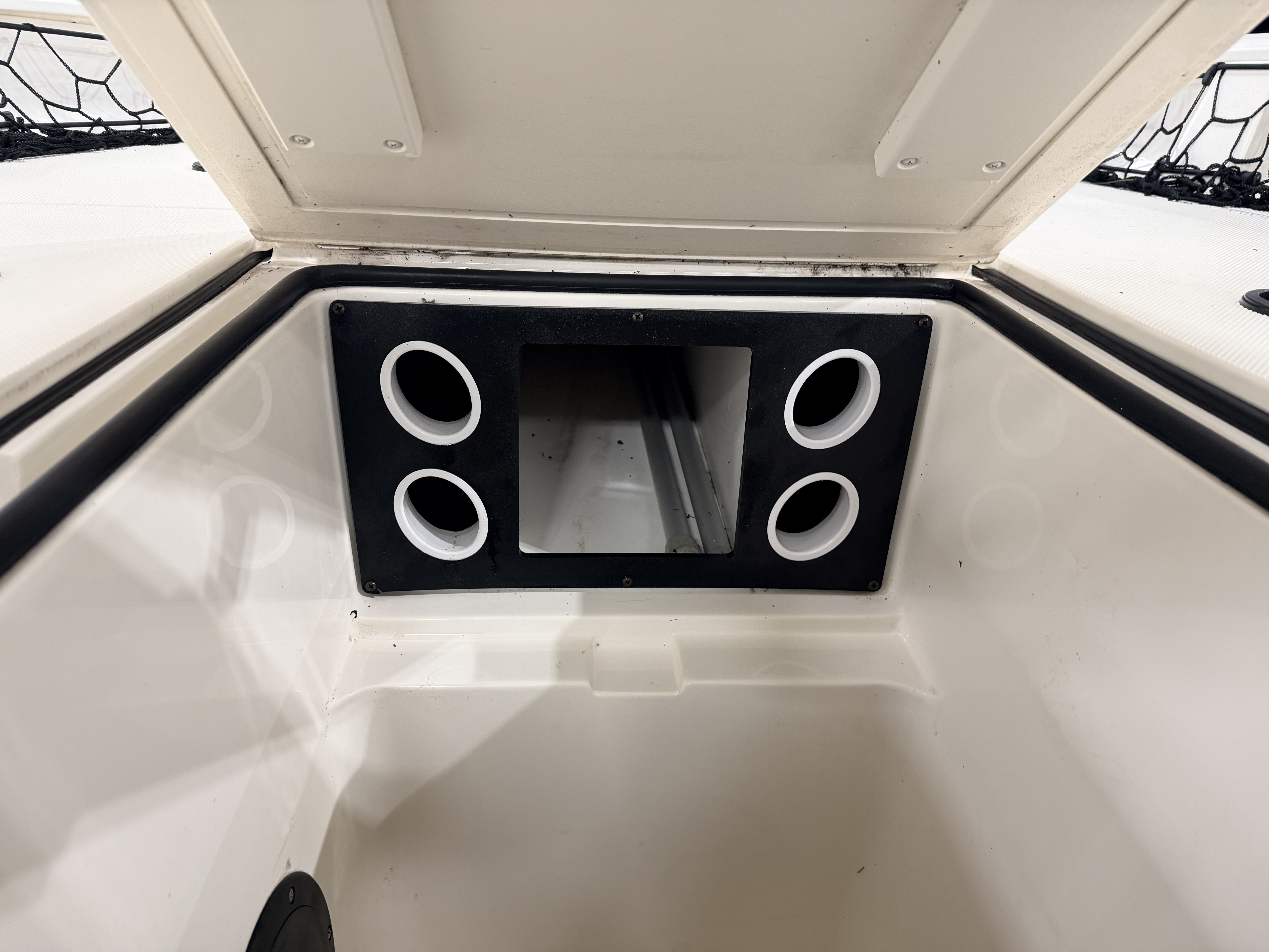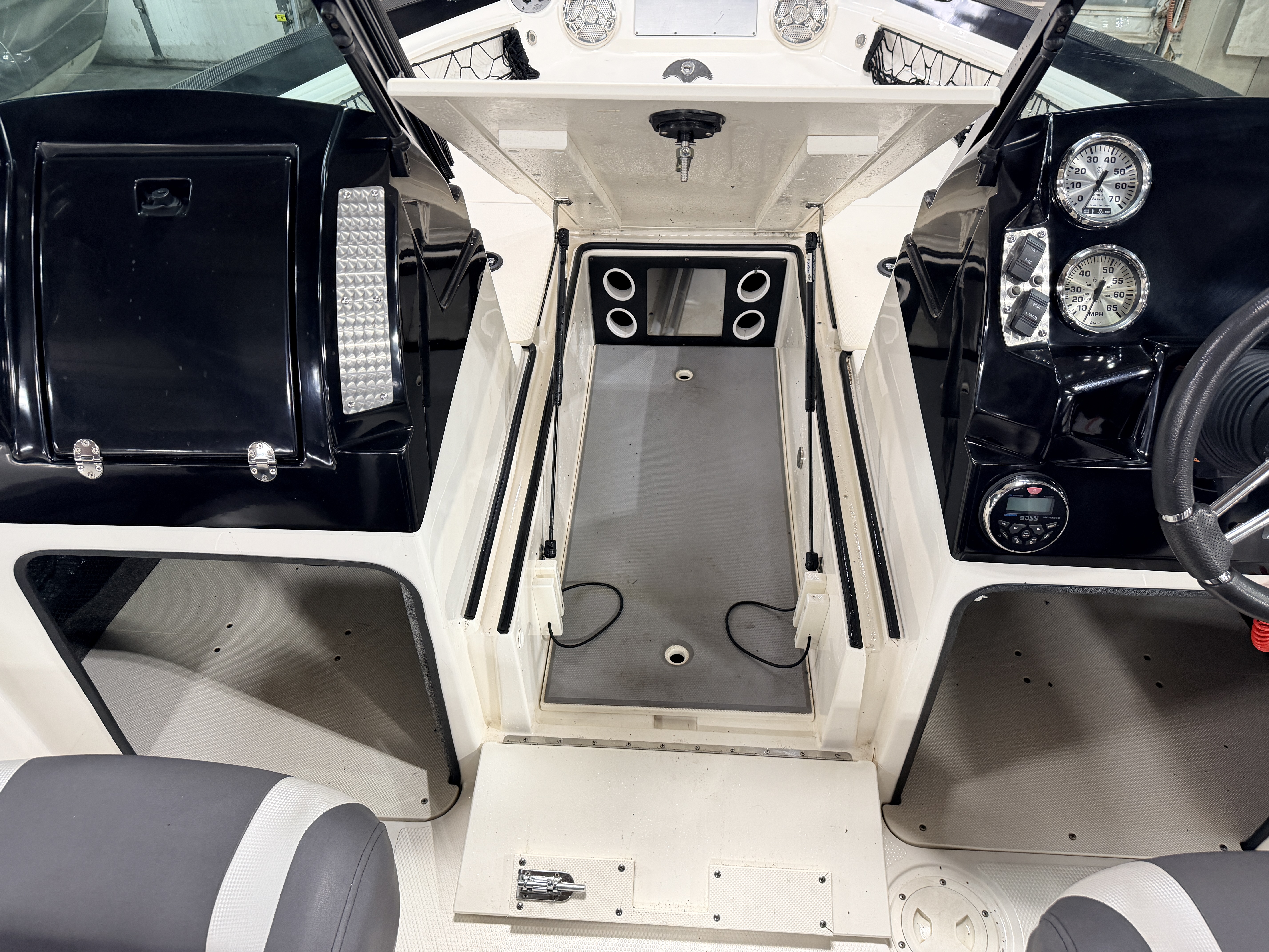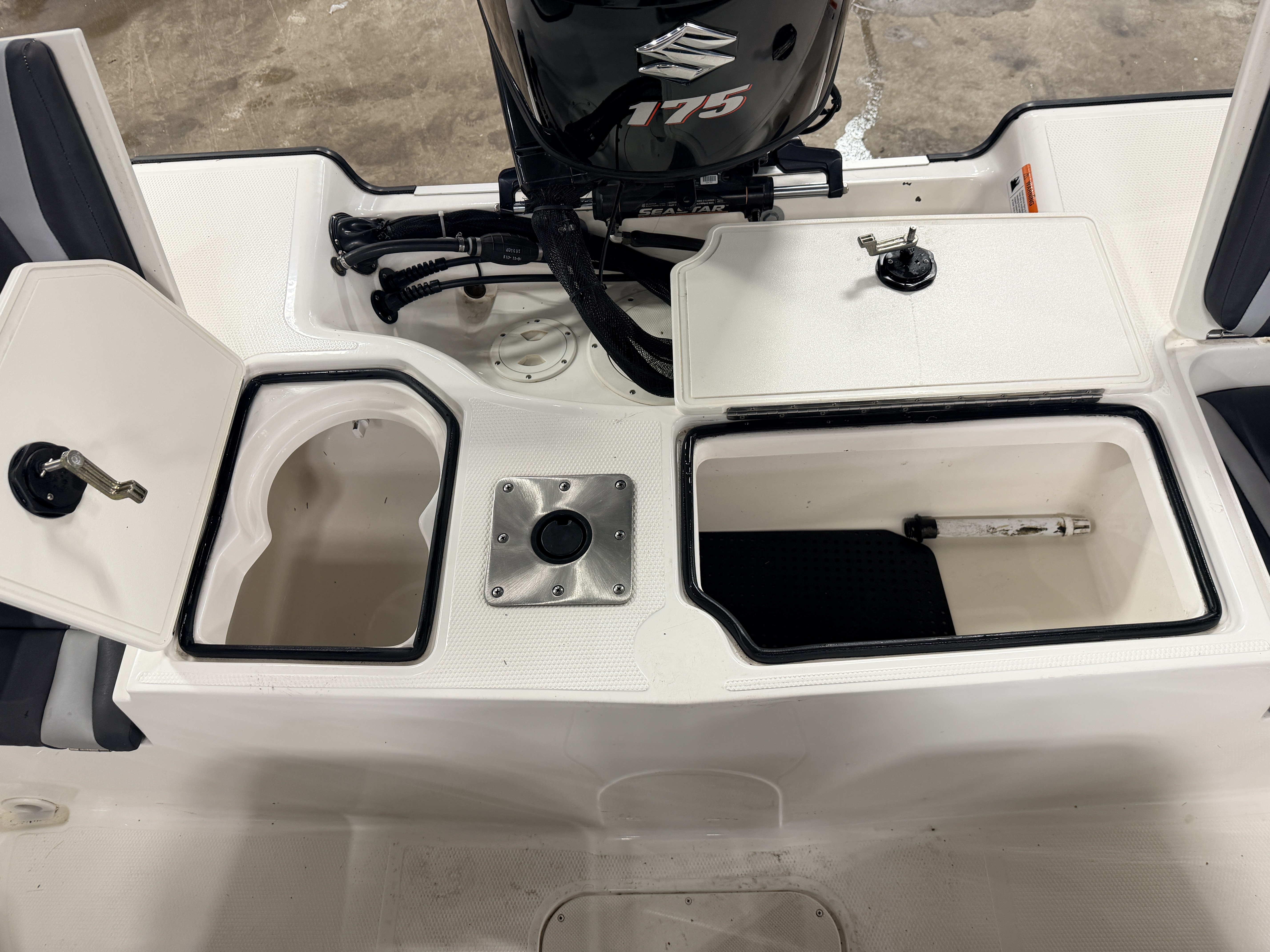compartments underneath. There is also a large livewell compartment with 2