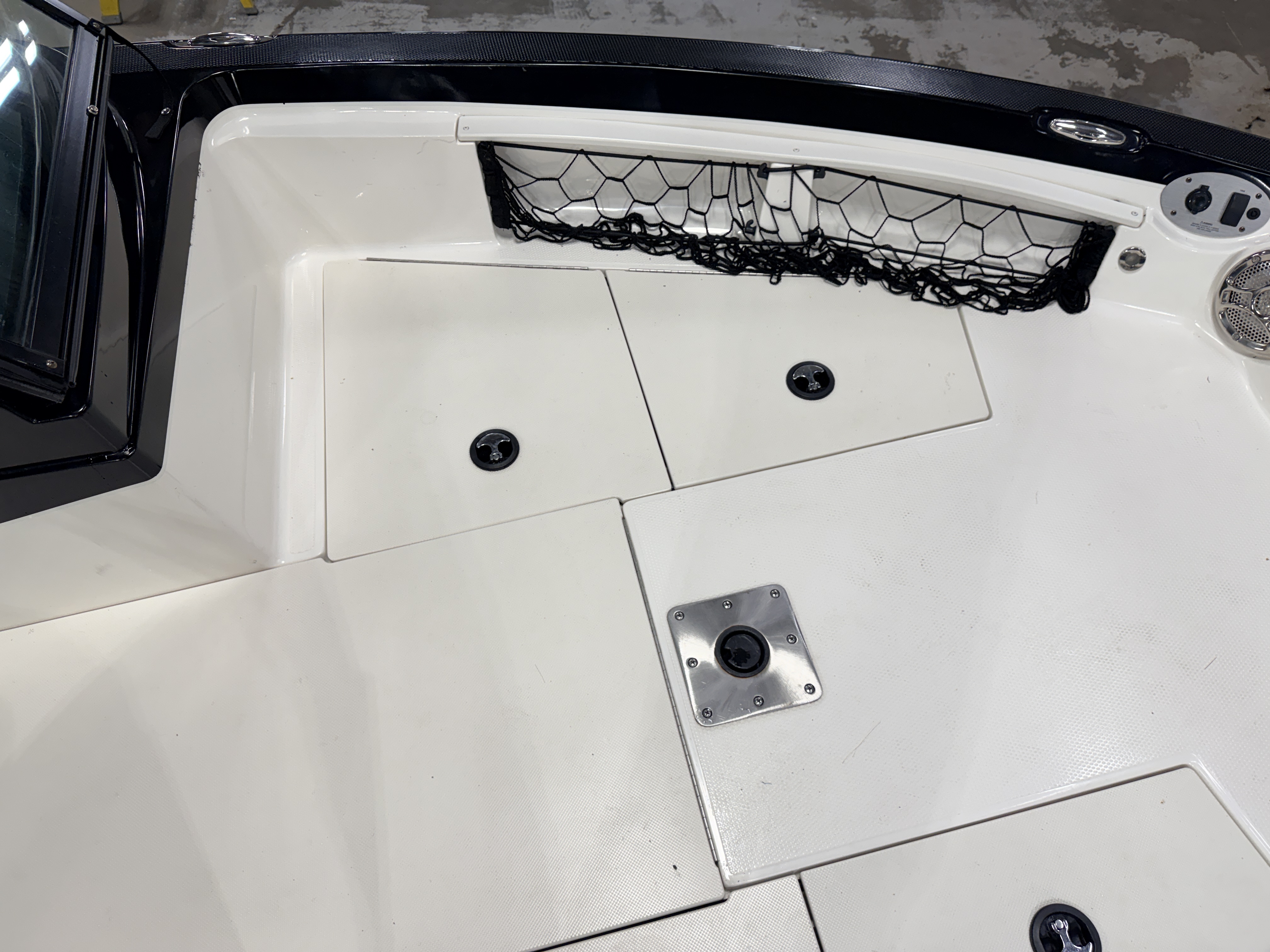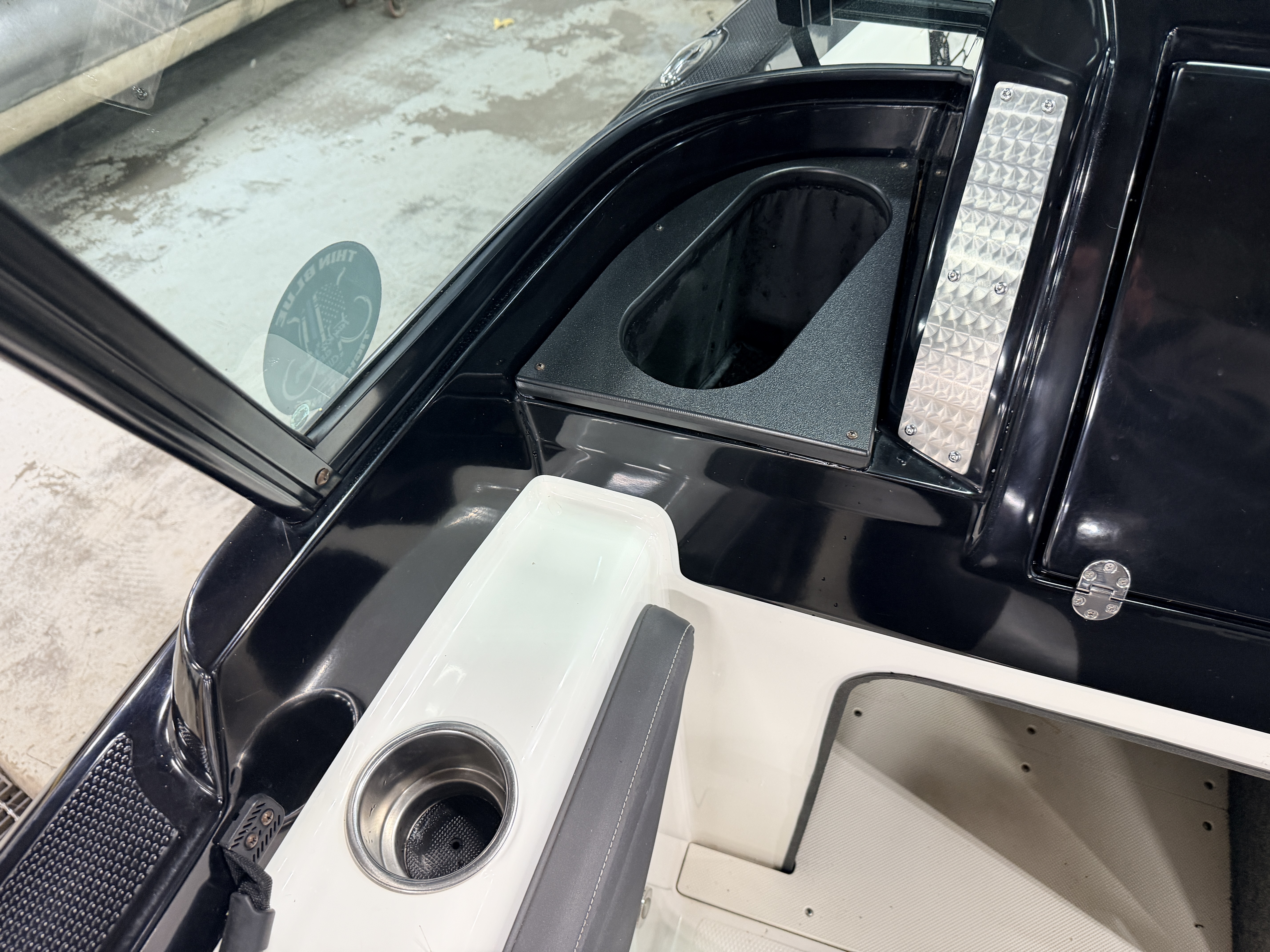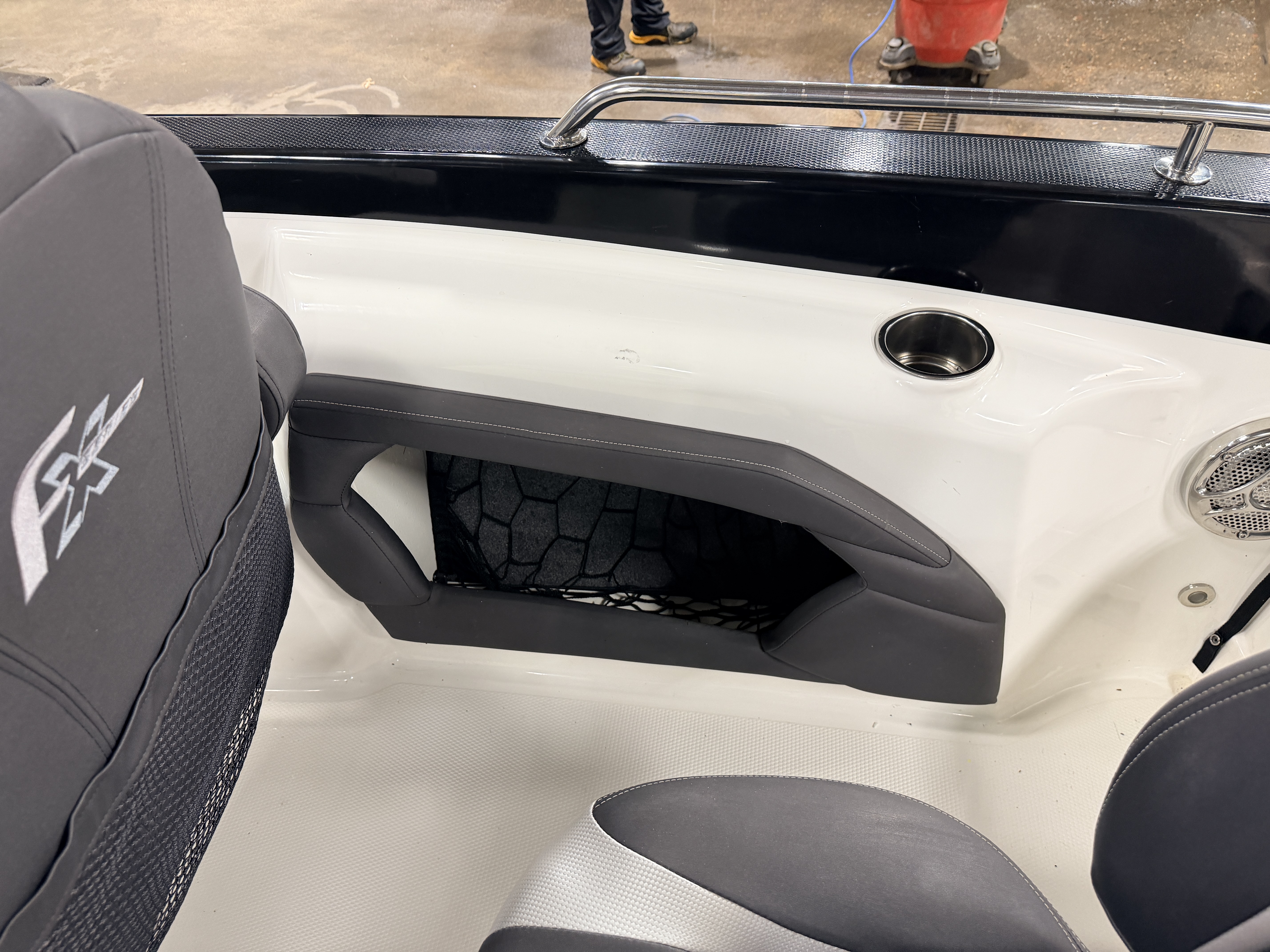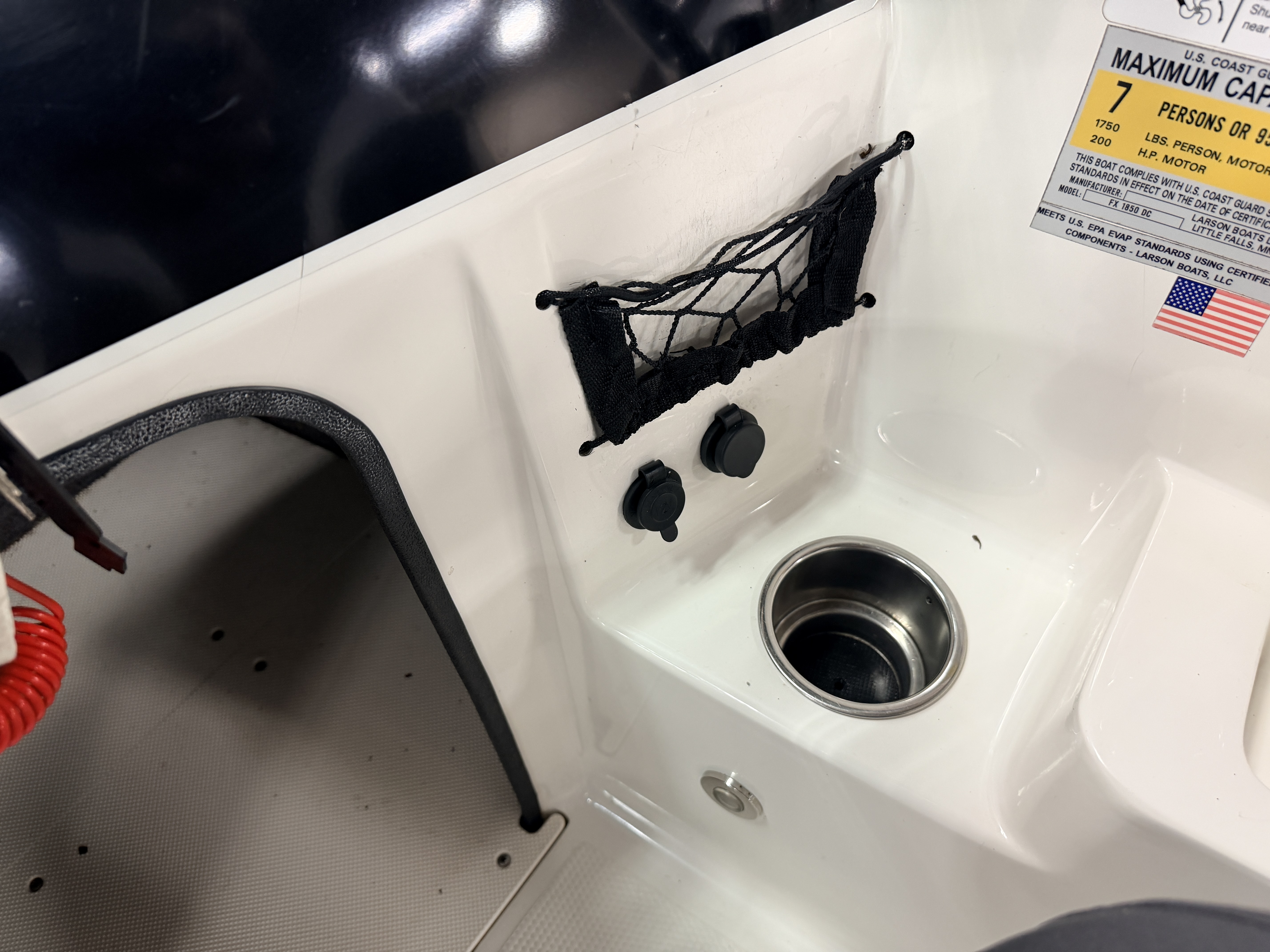 storage compartment. There is a net bag/trash receptacle along the windshield to